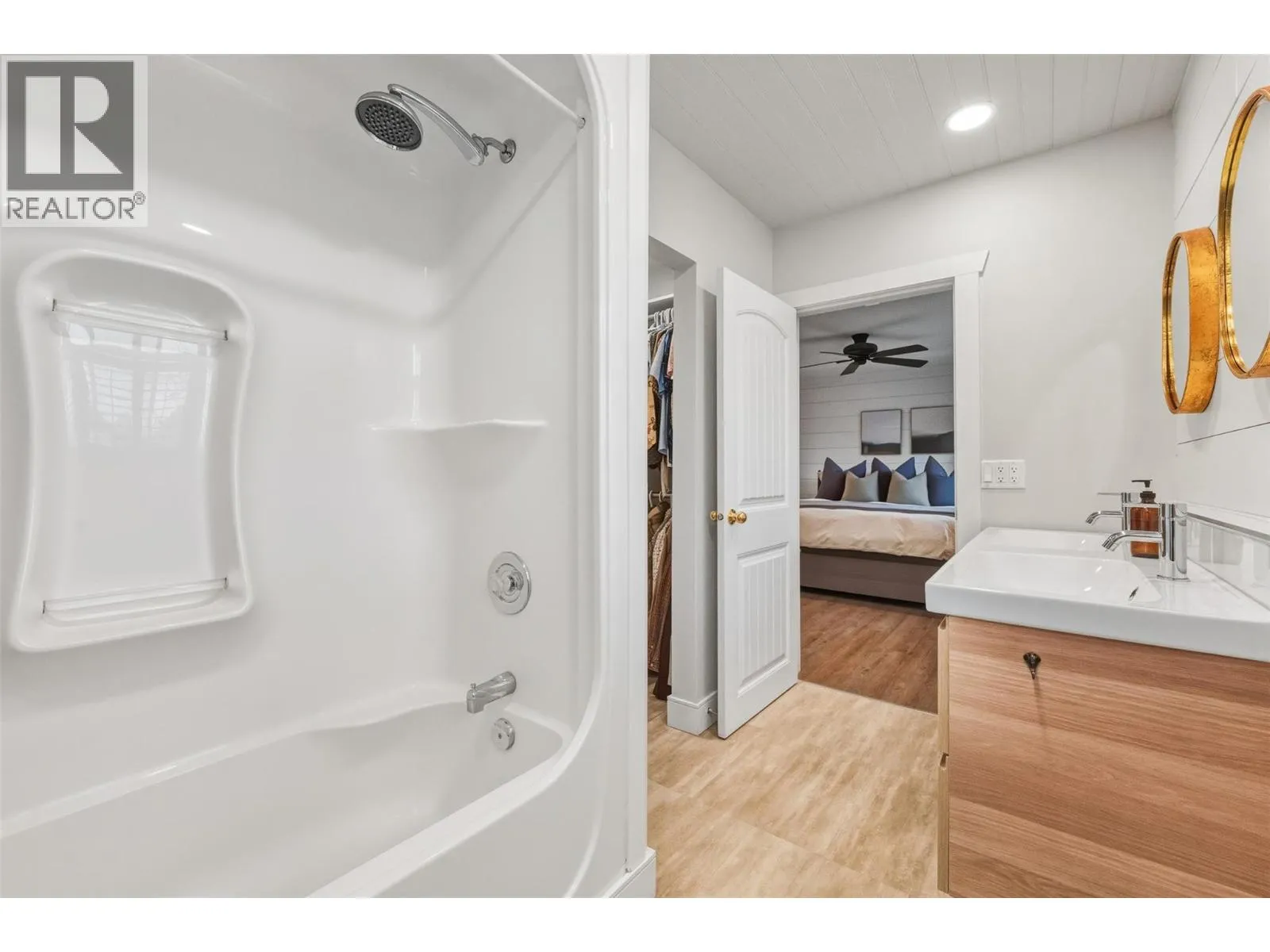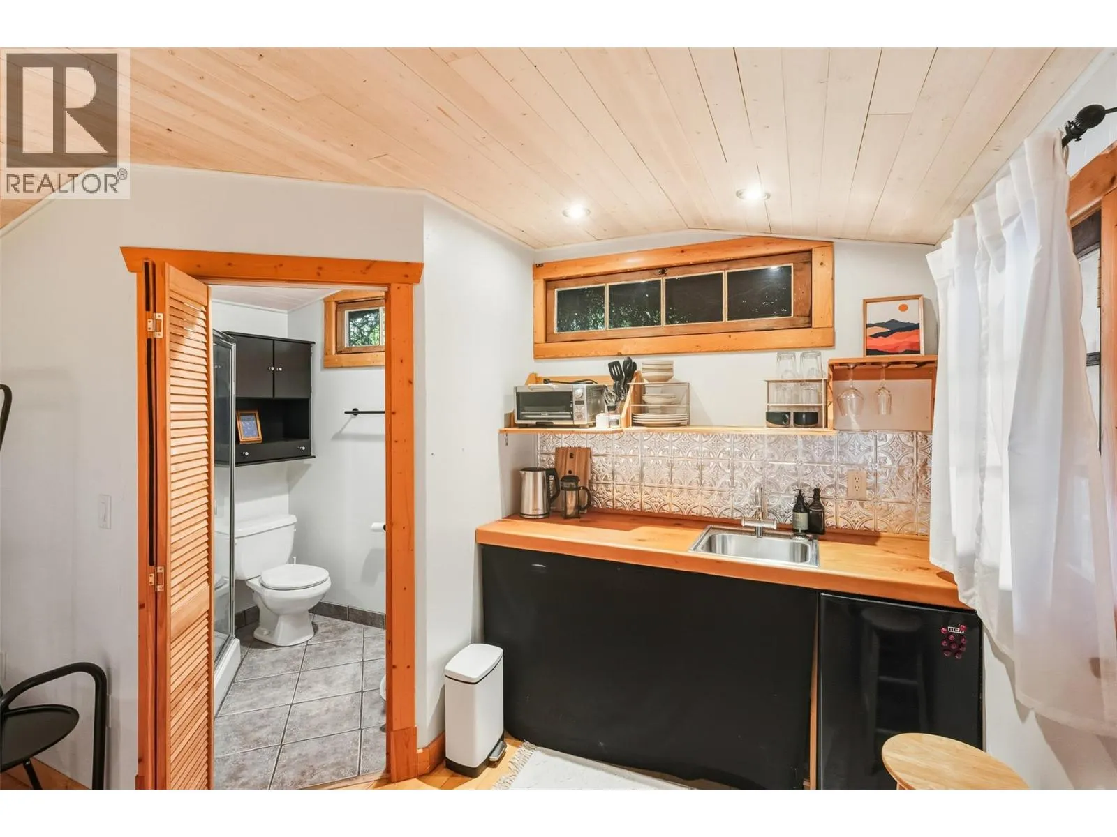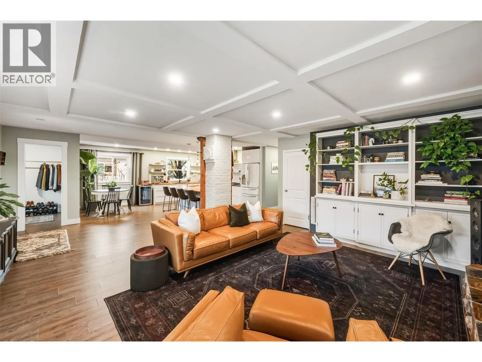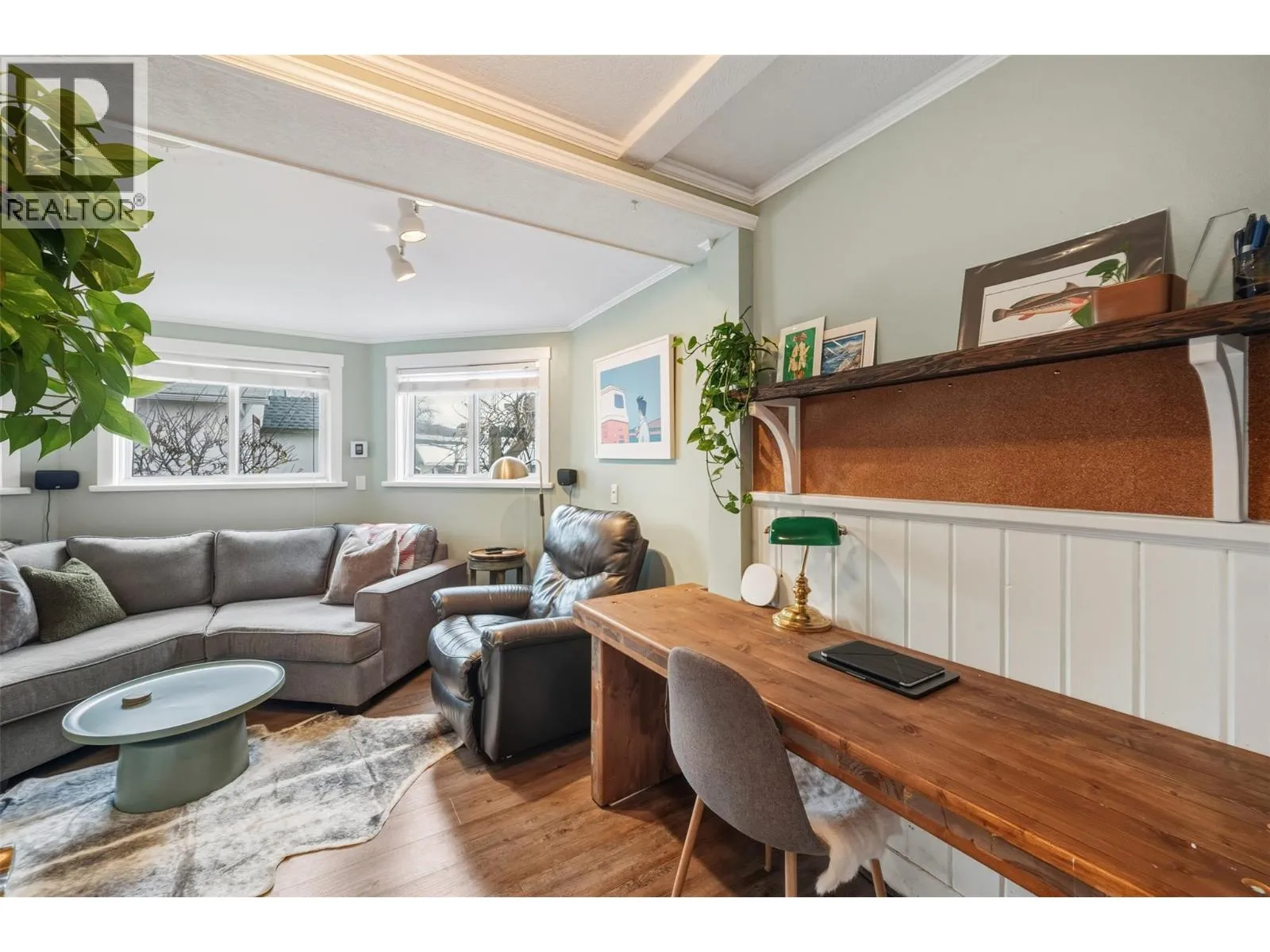 Welcome to this charming cottage chic residence paired with modern comfort, ideally located in the highly sought-after âKâ Streets neighbourhood of Penticton. Enjoy exceptional convenience with close proximity to transit, the hospital, schools, shopping, and a variety of dining options. The open-concept main level is designed for both everyday living and entertaining, showcasing coffered ceilings, living room with a striking stone gas fireplace and custom built-in shelving, and a beautifully appointed kitchen featuring a gas range, quality appliances, generous counter space, and a large centre island, the perfect gathering place for family and friends. The main floor also offers a spacious primary bedroom complete with a walk-in closet and a luxurious 5-piece ensuite, along with a full 4-piece bathroom and a convenient main-floor laundry area. Upstairs, youâll find two generous bedrooms ideal for family, guests, or a dedicated home office. Situated on a desirable corner lot, the property boasts a double detached garage and a delightful guest cabin complete with a kitchenette and a 3-piece bathroom, ideal for visitors, extended family, or potential rental income. This is a rare opportunity to own a distinctive home in one of Pentictonâs most desirable neighbourhoods, offering comfort, functionality, and outstanding lifestyle appeal. (id:27476)