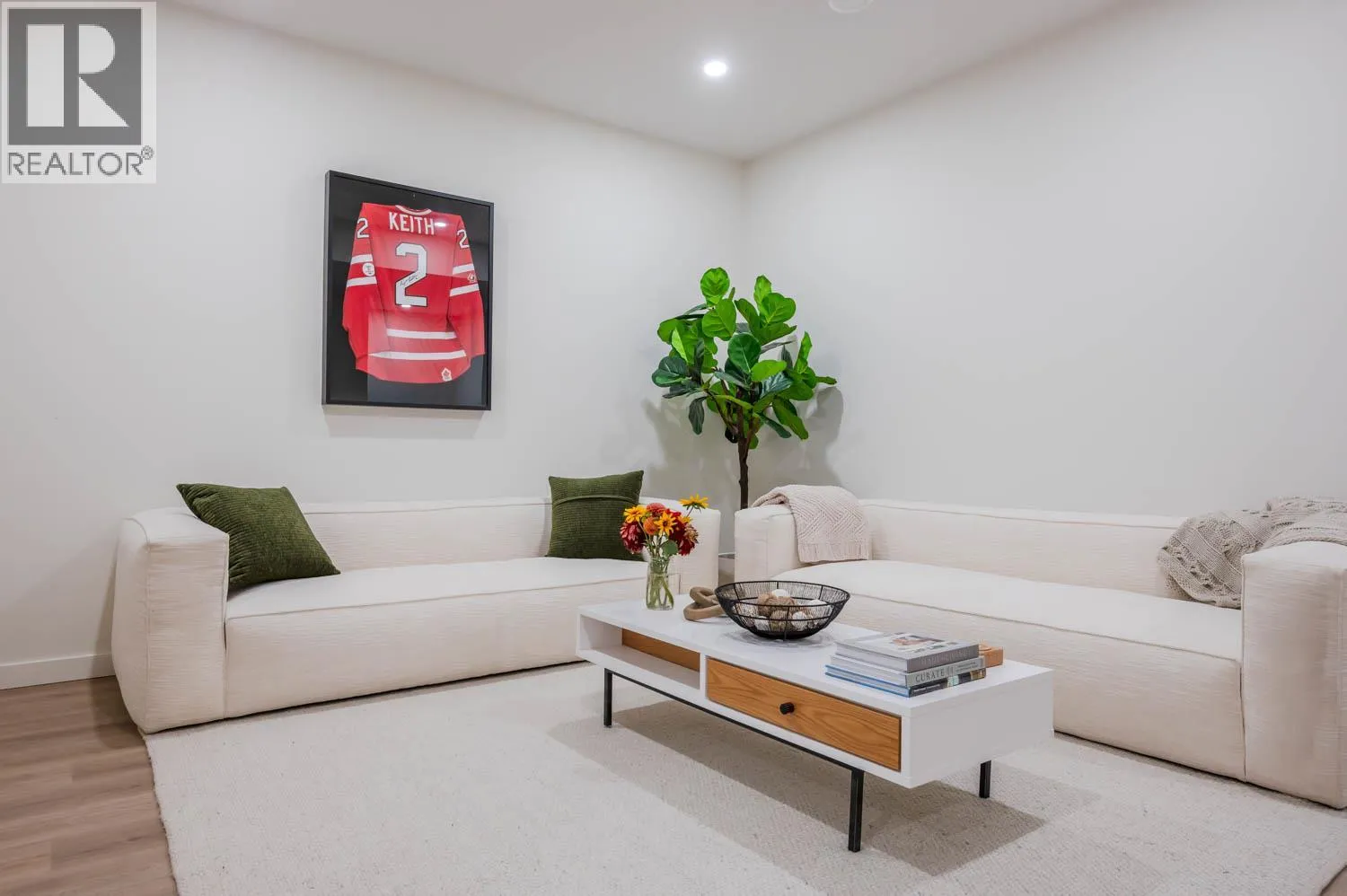 Introducing Edgeview at the Ridge, a boutique townhome development featuring an exclusive collection of 14 thoughtfully designed homes. Each residence offers over 2,200 SF of well-crafted living space, built with high-quality construction by a trusted local build and design company. This unique community is enhanced by unobstructed views, direct access to walking paths, and a private pocket park. Designed for comfort and versatility, these homes feature 4 bedrooms, 4 bathrooms, a flexible family room, a single-car garage, and two additional parking spaces. Insulated concrete walls between units provide superior soundproofing and privacy, delivering the feel of a single-family home with the convenience of a townhome. The main floor showcases a beautifully designed kitchen with quartz countertops, a spacious dining area, and access to one of two private, covered decks. Upstairs, 3 bedrooms include a primary suite with a large walk-in closet and a well-appointed 4-pc ensuite. A conveniently located laundry room completes this level. The daylight basement adds extra versatility with a bedroom, family room, ample storage, and exterior access to the second covered deck. Building 1 is fully sold and occupied; Building 2 is now complete and move-in ready, with 2 homes sold and 2 remaining. Prices do not include GST. Photos are from the previous show home and reflect the standard of construction and finishes. (id:27476)