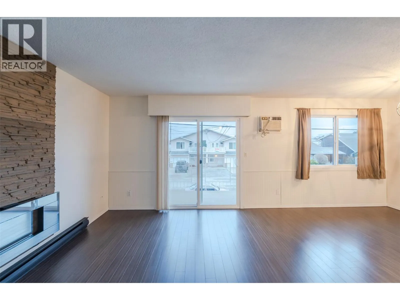 TOP CORNER UNIT! This unit is perfectly located in central Penticton close to shopping, parks and the regional hospital! Inside, is a large living and dining room with lots of natural light making the space feel bright and airy! Gorgeous mountain views and a large balcony for al fresco dining! Updated fireplace feature wall, new floors and freshly painted throughout this condo is ready for its new owner! All ages welcome, rentals allowed but no pets. This is the perfect space for the first-time home buyers, investors to retirees! Call the listing representative for more details! (id:27476)
