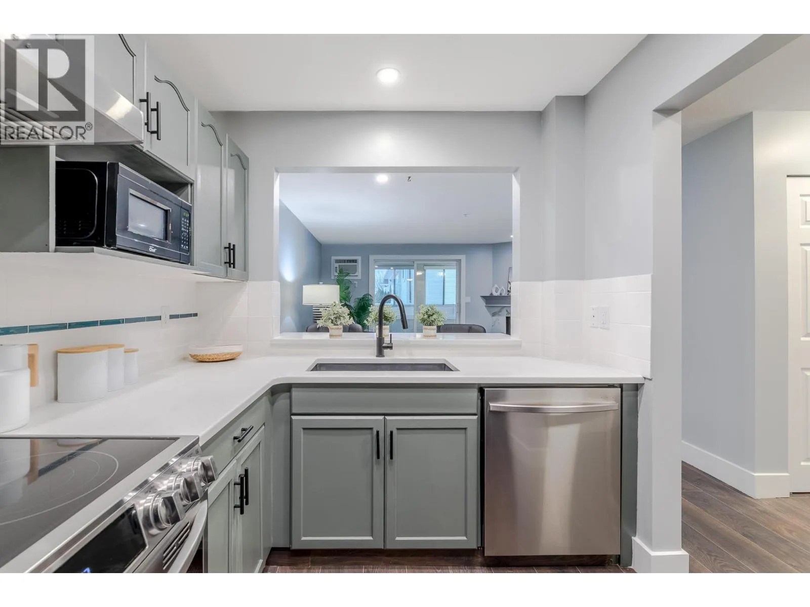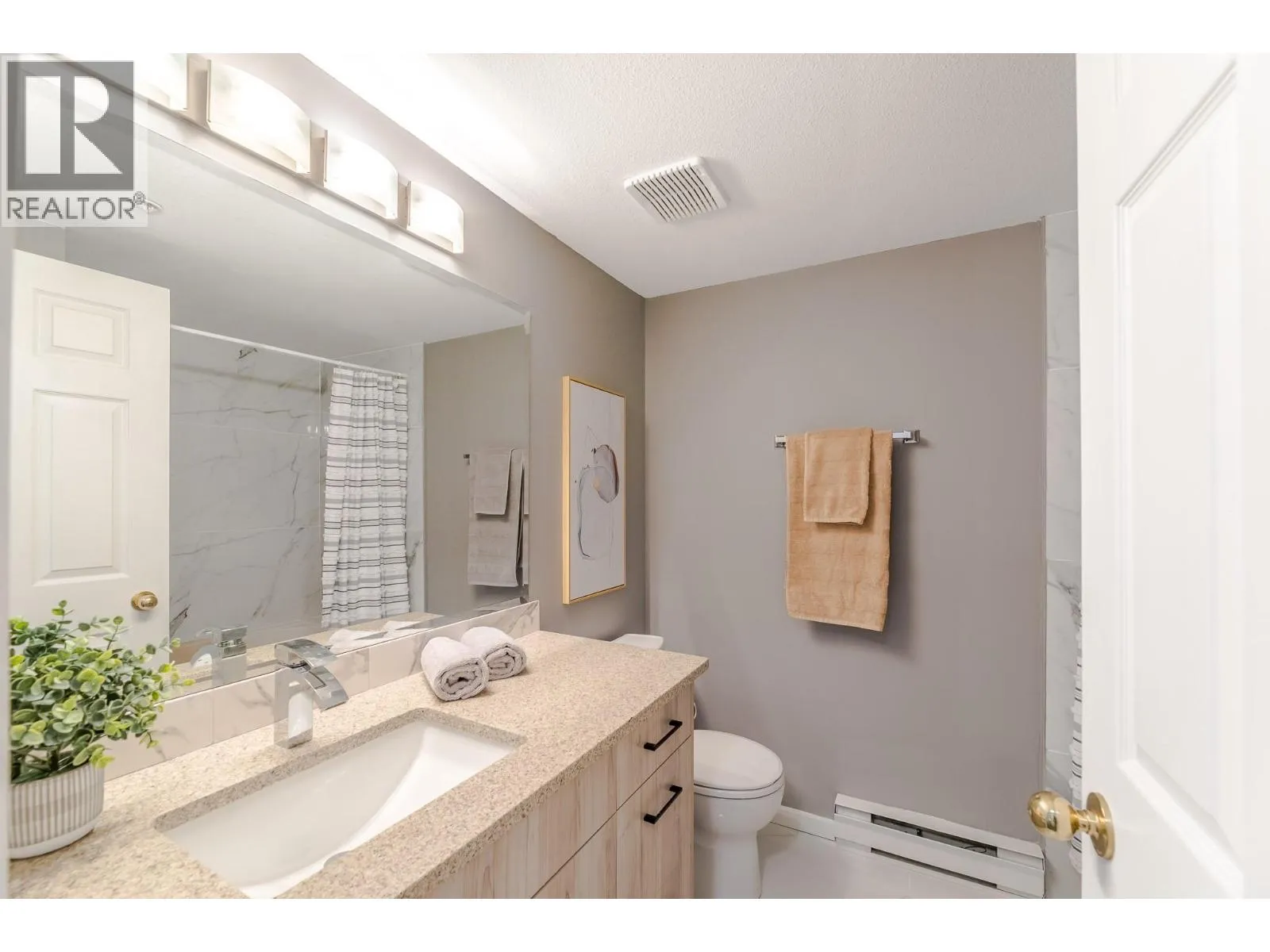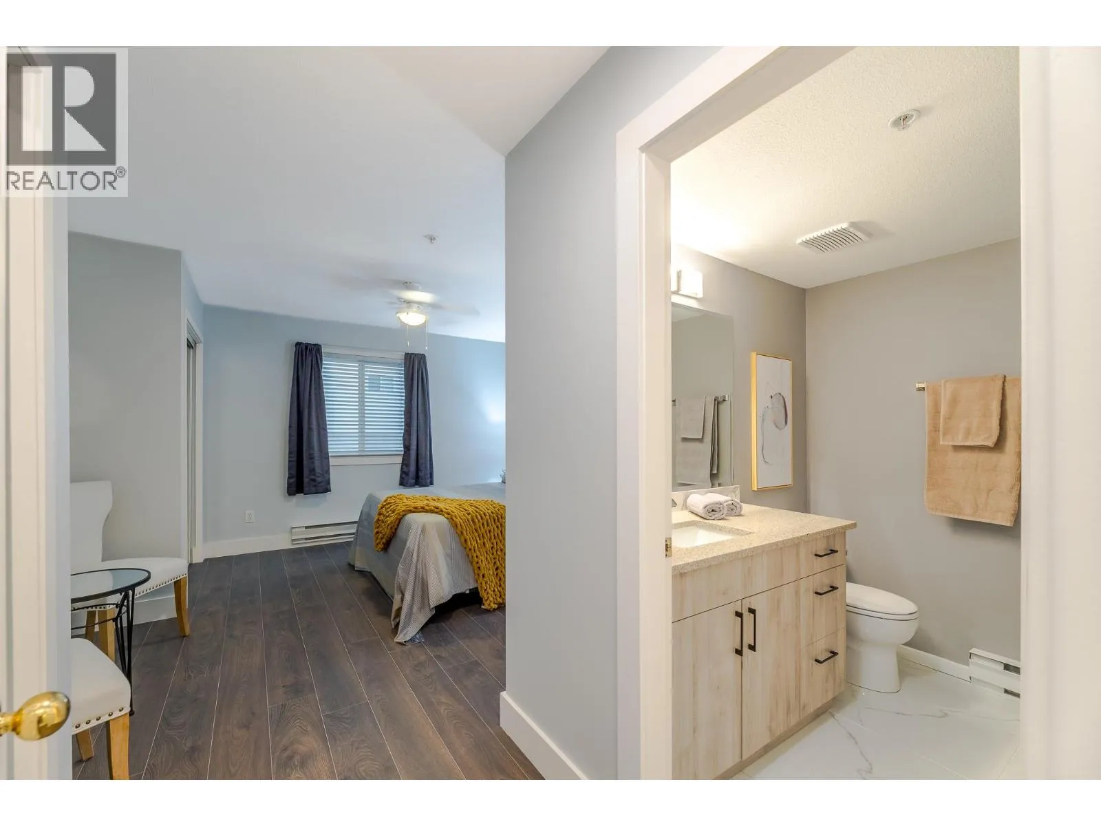 Welcome to your beautifully updated home in Peach City Manor. This lovingly cared-for one-bedroom, two-bathroom condo has been thoughtfully refreshed from top to bottom. Enjoy new laminate flooring and modern lighting throughout, creating a bright, cohesive feel the moment you step inside. The kitchen shines with new quartz countertops, newer appliances, and a crisp grey-and-white modern colour palette. In the guest bathroom, a stylish floating vanity with a temperature-reading faucet adds a touch of luxury. The en-suite has also been fully enhanced with a new jetted soaker tubâyour perfect retreat at the end of the day. Additional updates include new 5.5-inch pine baseboards for a clean, finished look. Outside, the covered deck has been upgraded with 2' x 4' porcelain-look deck tiles, extending the modern aesthetic to your outdoor space. Peach City Manor is a welcoming 55+ community, and two cats are permitted, so feel free to bring your furry companions. Underground parking and a storage locker complete this wonderful package. Call your favourite agent to view today! (id:27476)