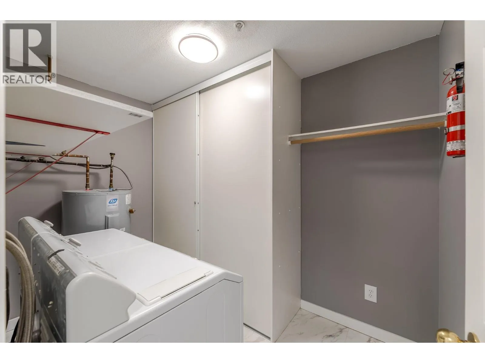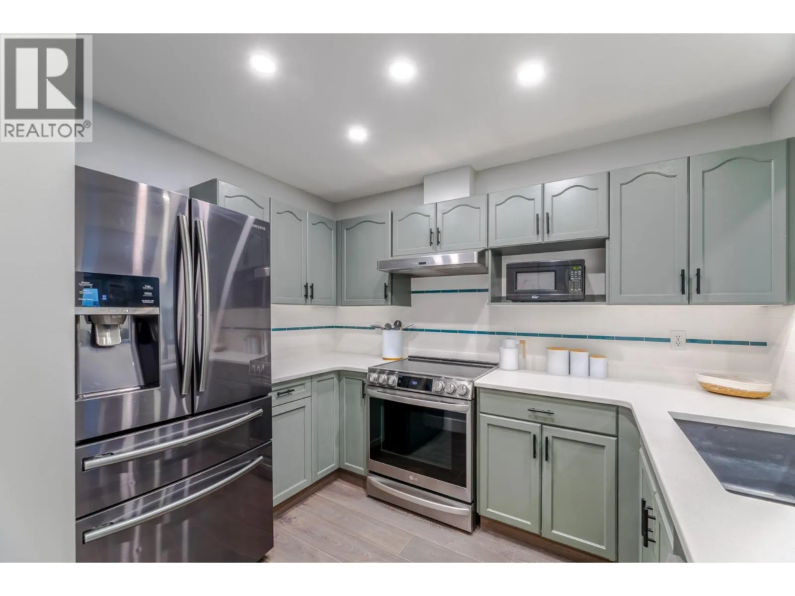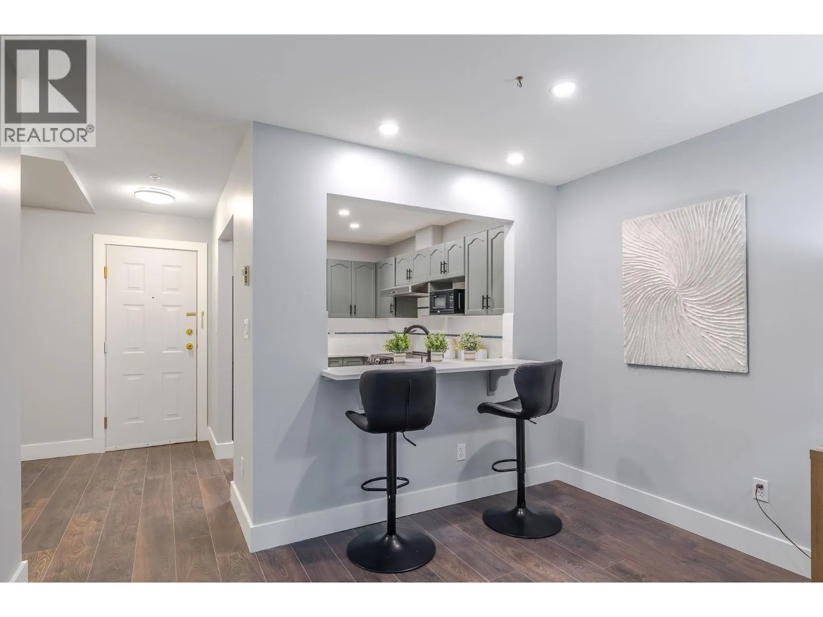 Welcome to your beautifully updated home in Peach City Manor. This lovingly cared-for one-bedroom, two-bathroom condo has been thoughtfully refreshed from top to bottom. Enjoy new laminate flooring and modern lighting throughout, creating a bright, cohesive feel the moment you step inside. The kitchen shines with new quartz countertops, newer appliances, and a crisp grey-and-white modern colour palette. In the guest bathroom, a stylish floating vanity with a temperature-reading faucet adds a touch of luxury. The en-suite has also been fully enhanced with a new jetted soaker tubâyour perfect retreat at the end of the day. Additional updates include new 5.5-inch pine baseboards for a clean, finished look. Outside, the covered deck has been upgraded with 2' x 4' porcelain-look deck tiles, extending the modern aesthetic to your outdoor space. Peach City Manor is a welcoming 55+ community, and two cats are permitted, so feel free to bring your furry companions. Underground parking and a storage locker complete this wonderful package. Call your favourite agent to view today! (id:27476)