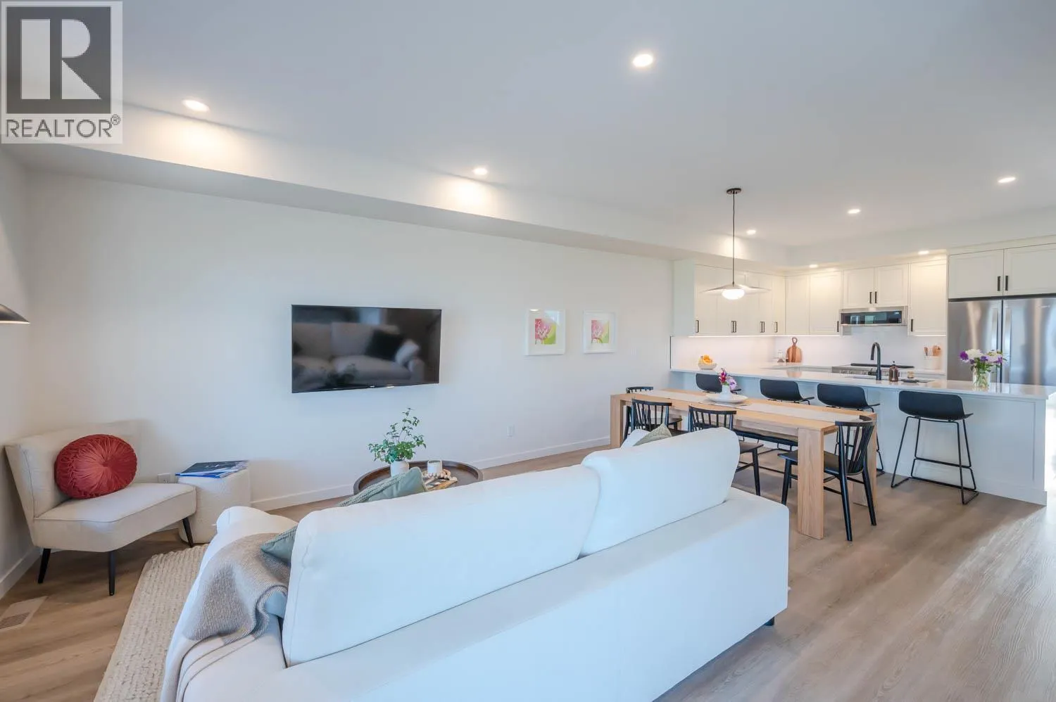 GST included on the first sale in Phase 2. Introducing Edgeview at the Ridge, a boutique townhome development featuring an exclusive collection 14 homes. Phase 1 is sold out and now occupied by very happy owners. Each residence features over 2300sqft of well-crafted living space, built with high-quality construction by a trusted local builder and designer. Modern Okanagan-inspired finishes, both inside and out, create a seamless blend of style and function. This unique community is enhanced by unobstructed views, easy access to walking paths, and a private pocket park. With 4 bedrooms, 4 bathrooms, a versatile family room, a single car garage, and 2 additional parking spaces, these homes provide ample space for families, guests, or entertaining. Insulated concrete walls between units ensure superior soundproofing and privacy, delivering a single-family living experience with the convenience and affordability of multi-family living. The main floor features a beautiful kitchen with quartz countertops, a spacious dining area, and access to one of two private, covered decks. Upstairs, three bedrooms include a primary suite with a large walk-in closet and a well-appointed 4-piece ensuite featuring double sinks and a tiled shower with frameless glass. A conveniently located laundry room completes this level. The daylight basement adds versatility with a bedroom, family room, ample storage, and exterior access to the second covered deck. Completion is estimated for early fall 2026. (id:27476)