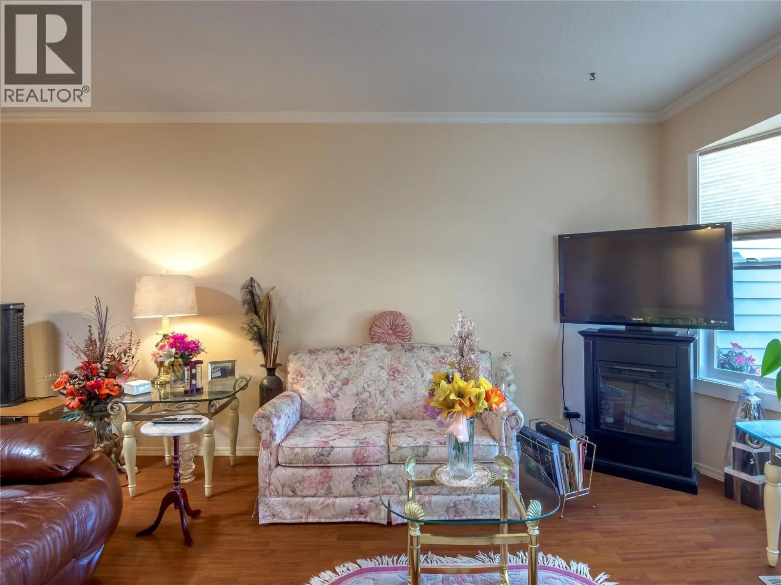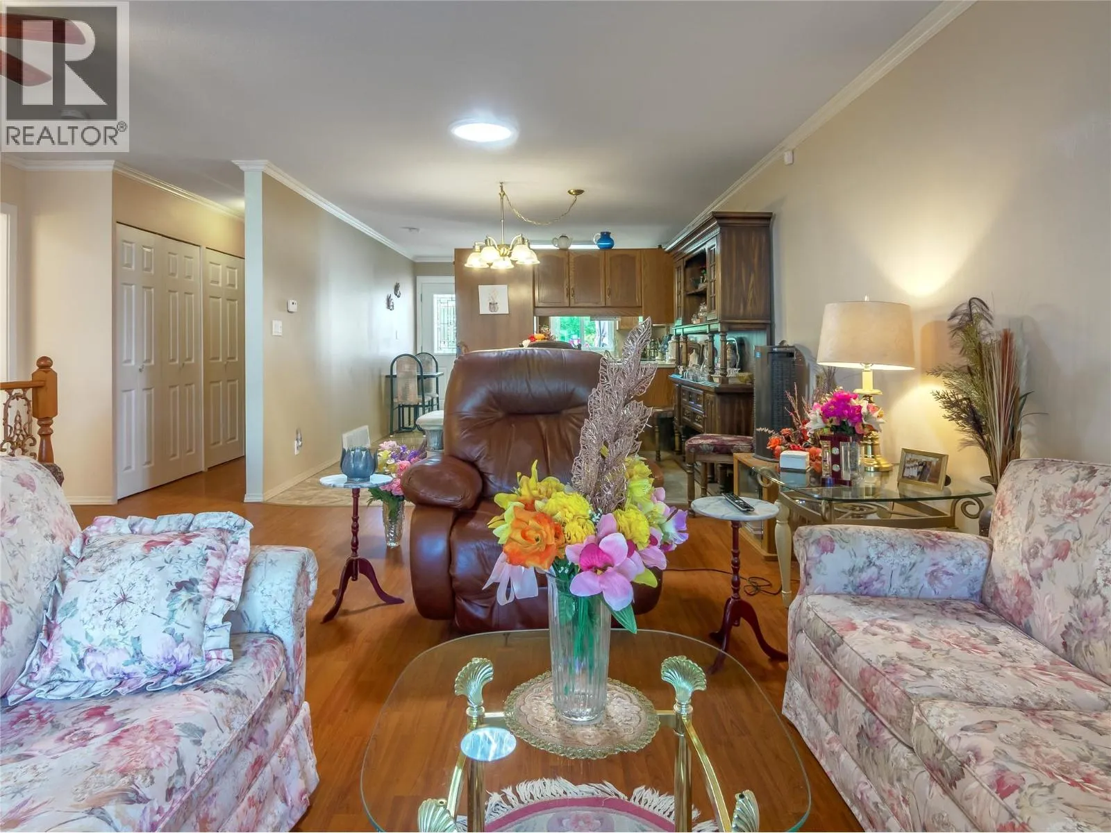 Attention Retires! Welcome to Lantern Court, a well run 55+ complex designed with seniors in mind. Walking distance to shops and amenities like Cherry Lane Malls, London Drugs, restaurants and more. This South facing unit has convenient one level living with the added bonus of the basement for storage and added living. The main floor is 1057sqft, as you enter the front door there is a spacious and bright living room and dining room, with laminate floors, large windows, and plenty of room for entertaining. The well laid out kitchen features plenty of cabinet space, a great layout, and faces the back yard of the home complete with a large composite deck, and a covered patio space. There is a good sixed second bedroom and guest bathroom, plus the spacious primary bedroom with walk in closet and full ensuite bathroom. Downstairs youâll find another 982sqft finished with a large rec room, tons of storage, plenty if space for visiting family or hobbies and a three piece bathroom. Enjoy the low maintenance convenience this home offers while not compromising on space! (id:27476)
