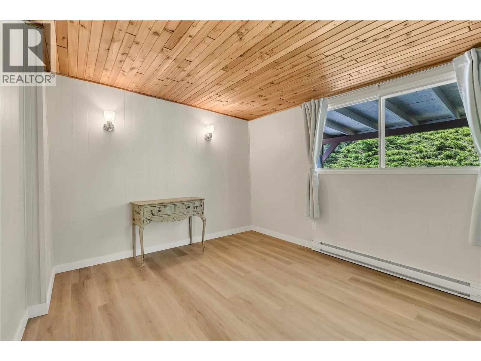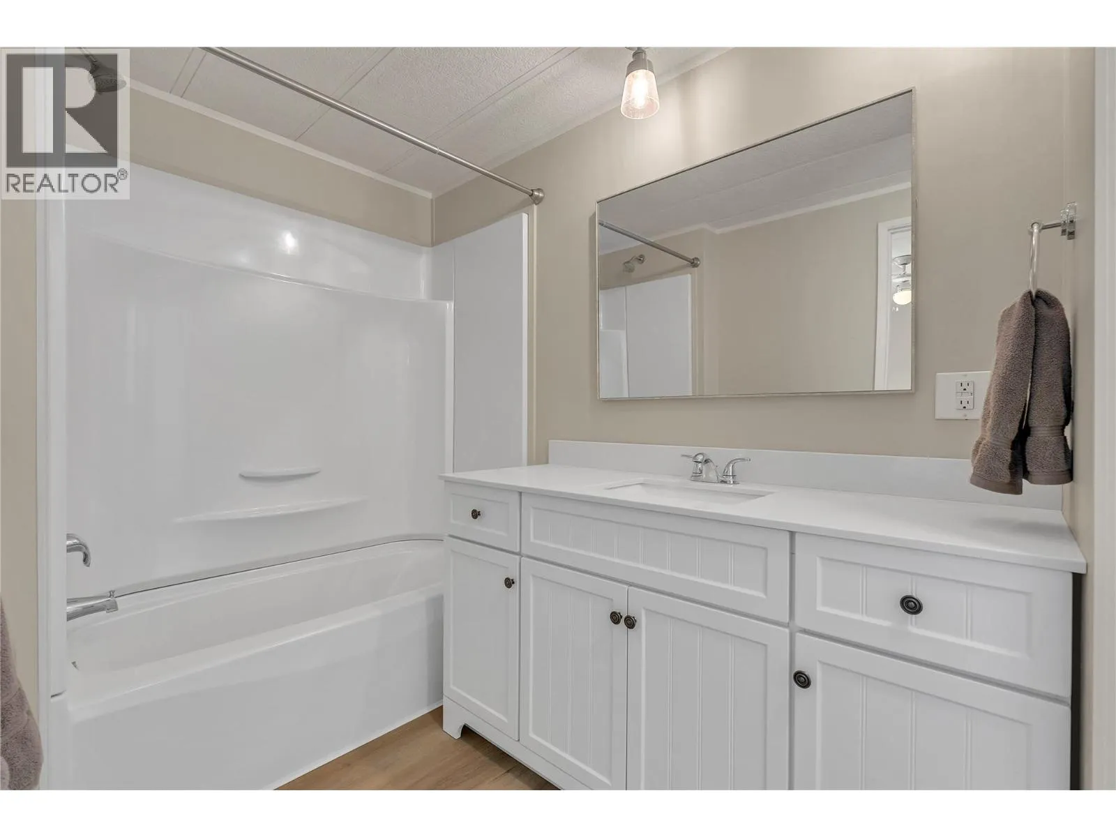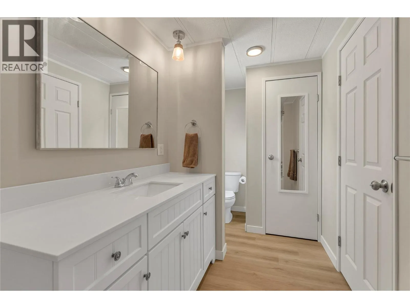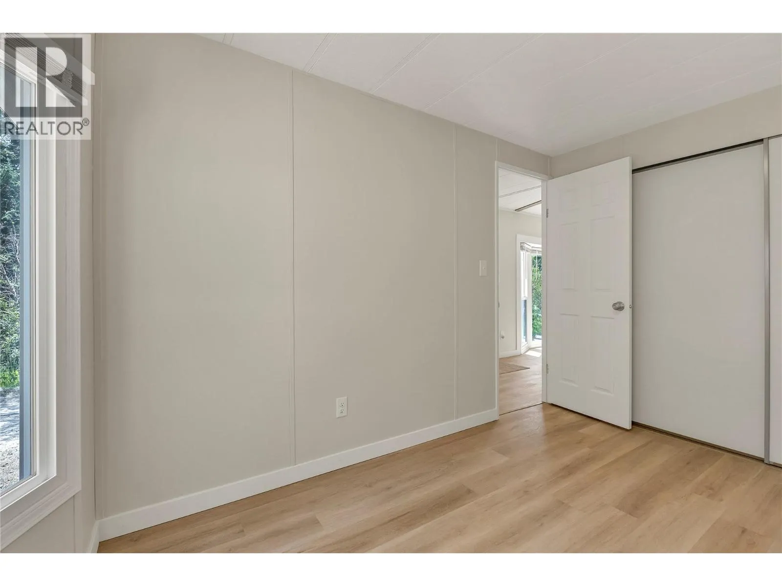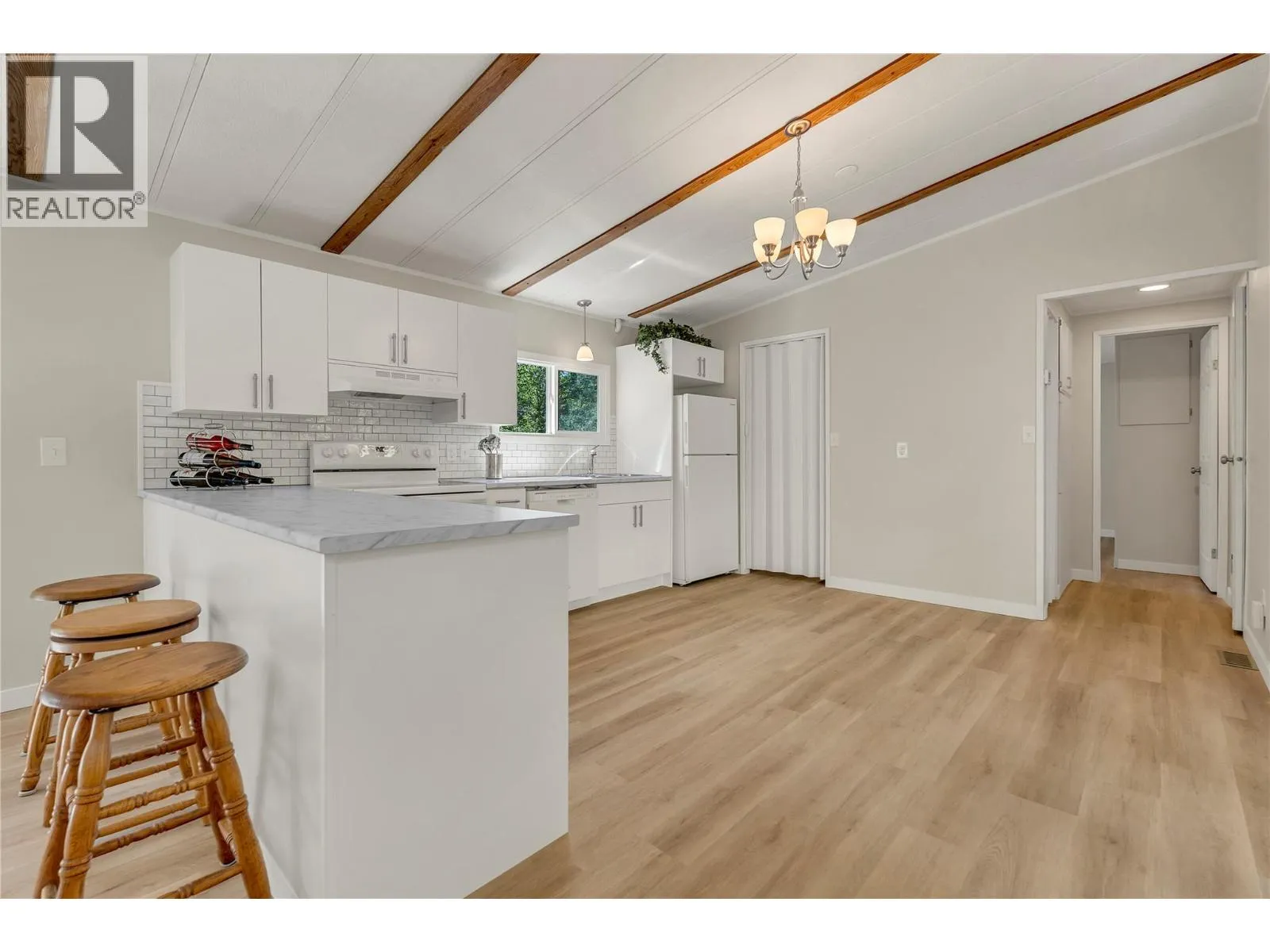 Welcome to Pleasant Valley, one of the most unique mobile home parks in the Okanaganâjust a short, level drive to the heart of Penticton. Surrounded by nature and bordered by the ever-flowing, beautiful Penticton Creek, this park offers a peaceful setting unlike any other. This substantially renovated 3-bedroom, 2-bathroom home is tucked away in a private, low-traffic area across the creek, where the soothing sound of water and the natural surroundings create a serene atmosphere. The home feels far from a typical mobile, with its high shed-style ceilings, abundant natural light, and absence of narrow hallways. Inside, the impressive renovations include a new kitchen and bathrooms, updated flooring throughout, fresh interior and exterior paint, modern light fixtures, and plumbing. Outside, the spacious yard is ideal for outdoor living and hobbies, featuring a large covered deck, a flat and private backyard, and even a small patio area overlooking the creek. There is ample parking, and the park also offers RV parking (subject to availability and a monthly fee). Pleasant Valley is a well-managed 55+ community that allows two pets (size restrictions apply). (id:27476)
