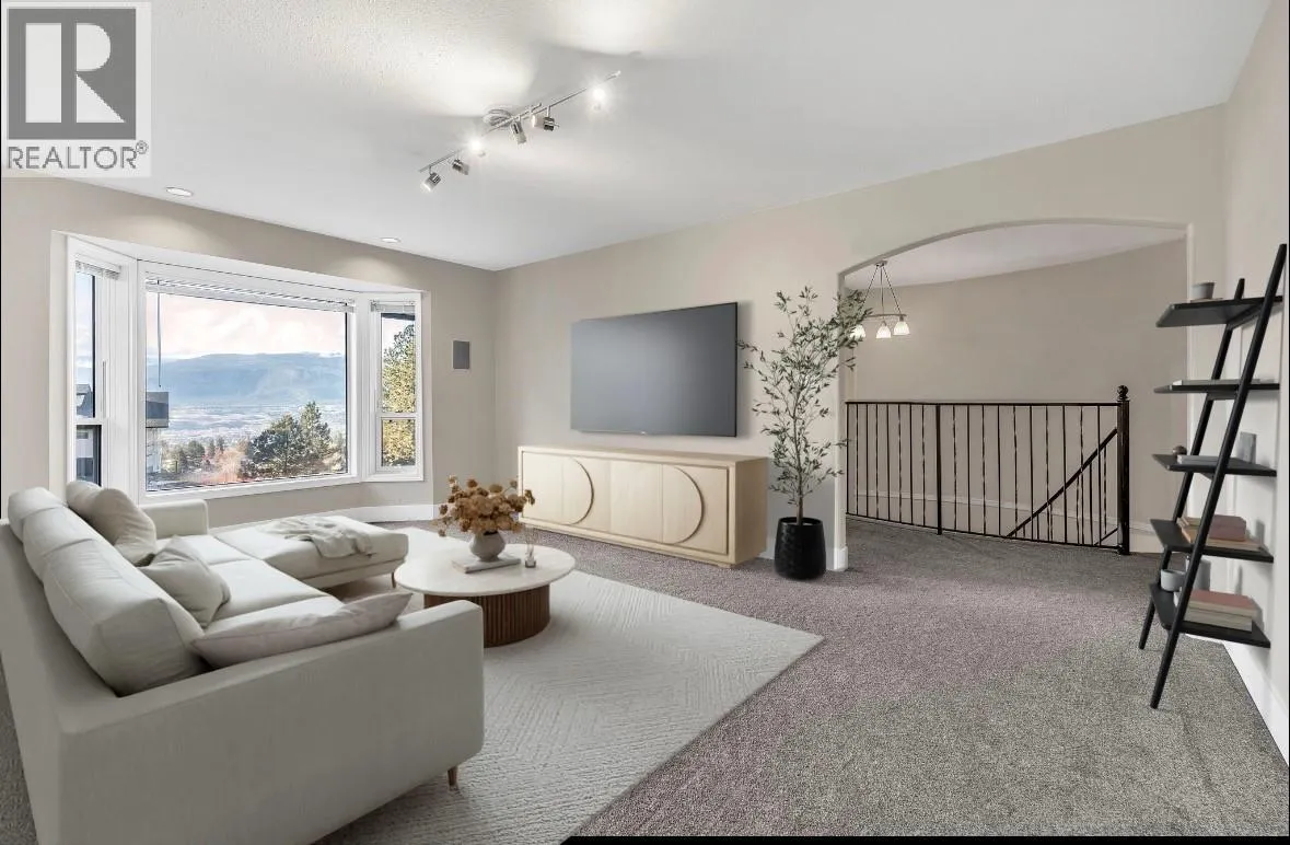 Located on a quiet cul-de-sac in desirable Upper Columbia. With 3,200 sq. ft. of living space, itâs an excellent fit for growing families. A large foyer with a curved stairwell leads you to the main level, where youâll find a spacious kitchen with a fireplace and sitting area, a formal dining room, a generous rec room, and a convenient 2-piece bathroom. From the front deck, you can take in beautiful Okanagan Lake views The top floor offers three generously sized bedrooms, a 4-piece bathroom, and a roomy primary suite complete with a 3-piece ensuite and walk-in closet. Recent updates include new carpet, paint, baseboards and trim, furnace, A/C, hot water tank, gutters, and metal roof. The lower level is ideal for extended family or guests, featuring an in-law suite with a separate entrance, 1 bedroom plus den, and a 4-piece bathroom. Close to Columbia Elementary School and nearby recreation, this home combines space, comfort, and convenience in a sought-after neighborhood. Quick Possession Available !! (id:27476)