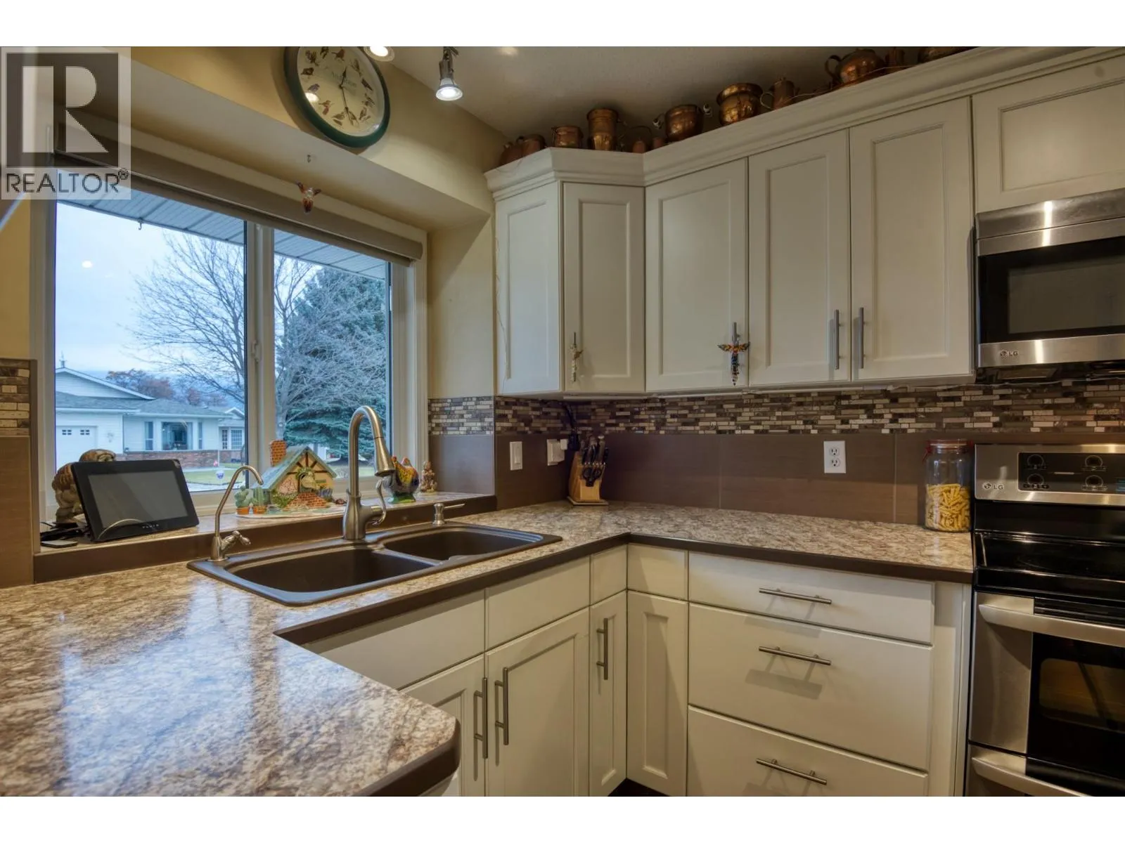 1300 sf, 2 bed + flex room, 2 full baths - shows very well. Newer hardwood & tile flooring throughout. Updated kitchen with bright white + glass cabinets, stainless appliances, tile flooring. Handy breakfast bar too. Vaulted dining area off kitchen, opens to a bright 4 season conservatory with heating/cooling. Principal bed with remodeled 3 piece ensuite + remodeled 4 piece bath. Laundry/storage with newer washer/dryer. Newer furnace, a/c. New windows, updated plumbing with poly B removed, newer window coverings. Outdoor living with a private western backyard, all fenced: new patio + a new patio cover, 10x15 garden shed & a second secure storage shed. Plenty of work space in the garage, open parking too. U/g irrigation with lovely gardens front & back. Secure RV parking on site. 200 meter walk to a private beach & social club house. First Nations leasehold property - lease has been prepaid to 2036, Red Wing has Right of First Refusal, a paperwork formality. Two thumbs up, show this! (id:27476)