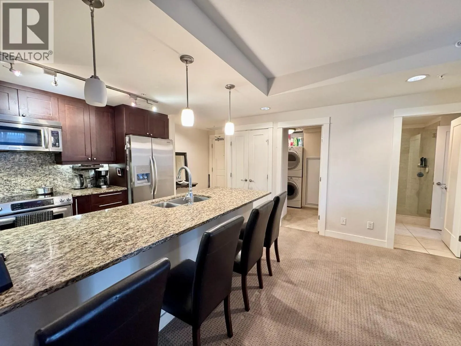 #508 â 75 Martin Street, Penticton Lakeshore Towers Exceptional value in the ever-popular Lakeshore Towers, a premier condo development in the heart of Pentictonâs vibrant downtown core. This beautifully designed 2-bedroom, 2-bathroom residence offers a perfect blend of comfort, style, and unbeatable location. The home features a bright open-concept floor plan, kitchen complete with granite countertops and stainless steel appliancesâideal for both everyday living and entertaining. Enjoy breathtaking lake views from the living room, private deck, and the primary bedroom, creating a serene Okanagan lifestyle atmosphere. Thoughtfully designed and filled with natural light, this condo offers both functionality and elegance. Residents of Lakeshore Towers enjoy resort-style amenities including: Outdoor pool Hot tub Saunas Fully equipped fitness room Putting green And more The unit includes secure underground parking stall and a private storage locker for added convenience. (id:27476)