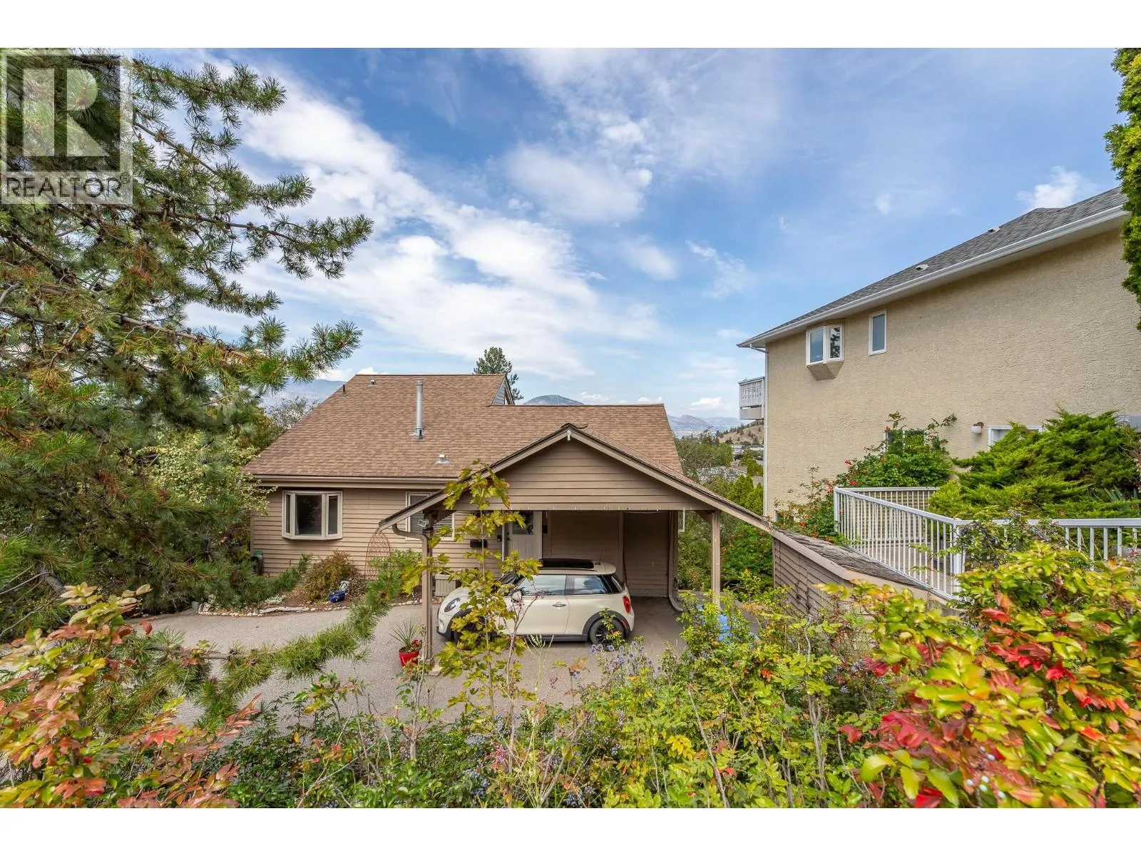 Welcome to this beautiful split-level home in a desirable, quiet neighborhood of well appointed homes just a 7 minute drive from downtown Penticton with its shops, market, beaches, recreation center and dining. At the heart of this home, the vaulted-ceiling living room with large windows feels bright and open, flowing into a spacious dining area and an Ellis Creek kitchen featuring S/S appliances, perfect for everyday living or entertaining. Upstairs, the primary bedroom with its own 4 pc ensuite is a true retreat, set on its own level with a private balcony offering peaceful lake views -- the perfect spot to end your day. Two additional bedrooms, two more bathrooms and a very large rec room ensures space for family or guests. The recreation room area with bath access the ground level via a sliding door, lending this space to a potential future conversion into an in-law o revenue suite. The enclosed sunroom provides year-round enjoyment, ideal for morning coffees, or simply relaxing. Outside, a fully fenced yard offers privacy and security for pets or play, while mature landscaping adds beauty and charm. Come view today! (id:27476)