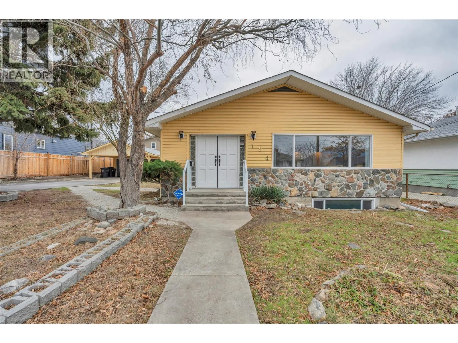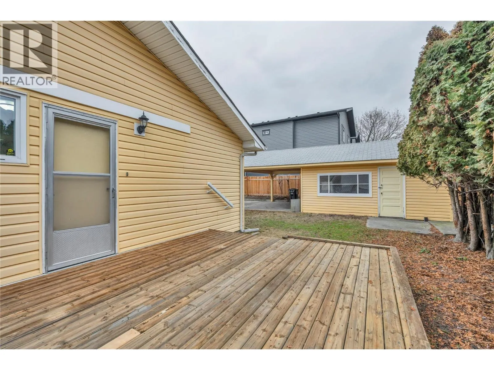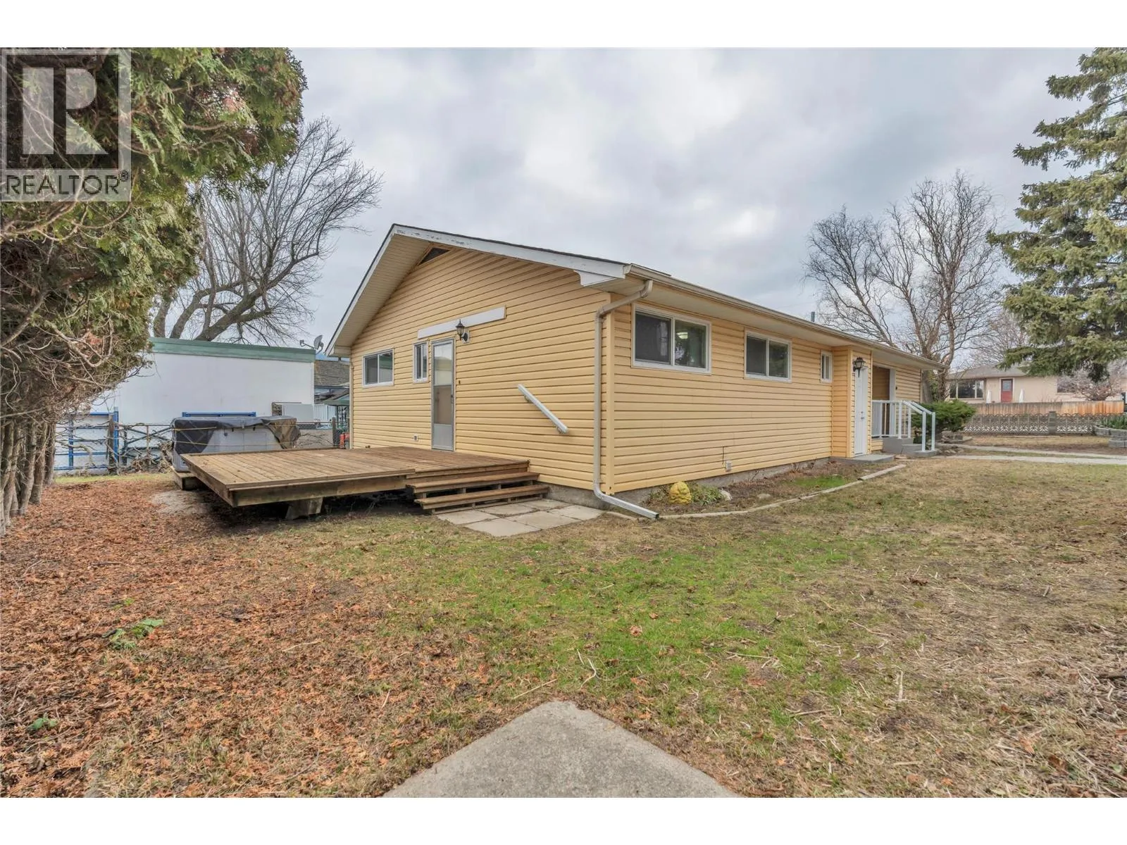 Centrally located on a large lot in the heart of Penticton, this spacious home offers the perfect blend of convenience, comfort, and potential. Just a short walk to shopping, restaurants, parks, schools, the gym, and all amenities, itâs an ideal location for families, retirees, or anyone wanting easy everyday living. All primary living space is on the main level, featuring an oversized living room with a cozy gas fireplace, large windows for natural light, and patio doors leading to a generous covered deck, perfect for relaxing or entertaining. The kitchen is impressively sized with a large nook and plenty of room to create your dream space. Two spacious bedrooms are located on this floor (with potential to create a third), including a primary bedroom with a 2-piece ensuite. Enjoy direct access to the private backyard and deck from this floor. The basement provides a large laundry room, spacious rec room, lots of storage space and direct exterior access for added flexibility. While the home is ready for updating, it has been very well cared for and is exceptionally clean, with some new upgrades including new living room flooring. A detached garage, ample parking, and an unbeatable central location complete this fantastic opportunity, move in now and update over time! (id:27476)