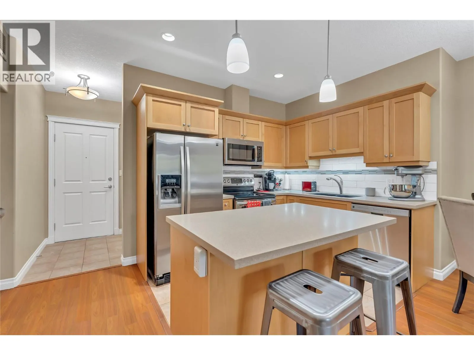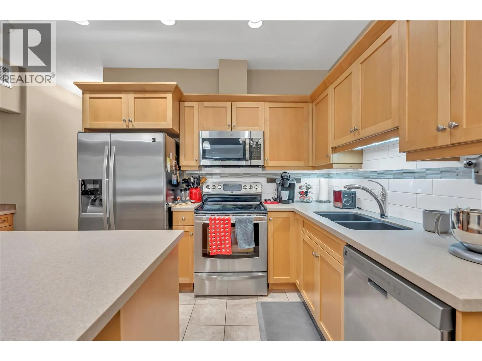 Welcome to this beautiful 2 bd 2 bath condo in THE VERANA, which is close to Skaha Lake, Skaha parks, schools and shopping. This open concept condo features a well appointed kitchen with island and plenty of cupboards and counter space for your entertaining. From the living area you can access the private and shady patio to enjoy your morning coffee or evening meal. The 2 bedrooms are on each side of the condo and both have an attached bathroom and lots of closet space. The Verana offers plenty of amenities for its owners, including a big Clubhouse with high ceilings, fireplace, kitchen/eating are and attached patio area for dining. Also included are a gym/workout room, change room and showers. The building also features secured underground parking and several open/visitor parking spots. There are no age restrictions and pets and long term rentals are allowed with some restrictions. (id:27476)