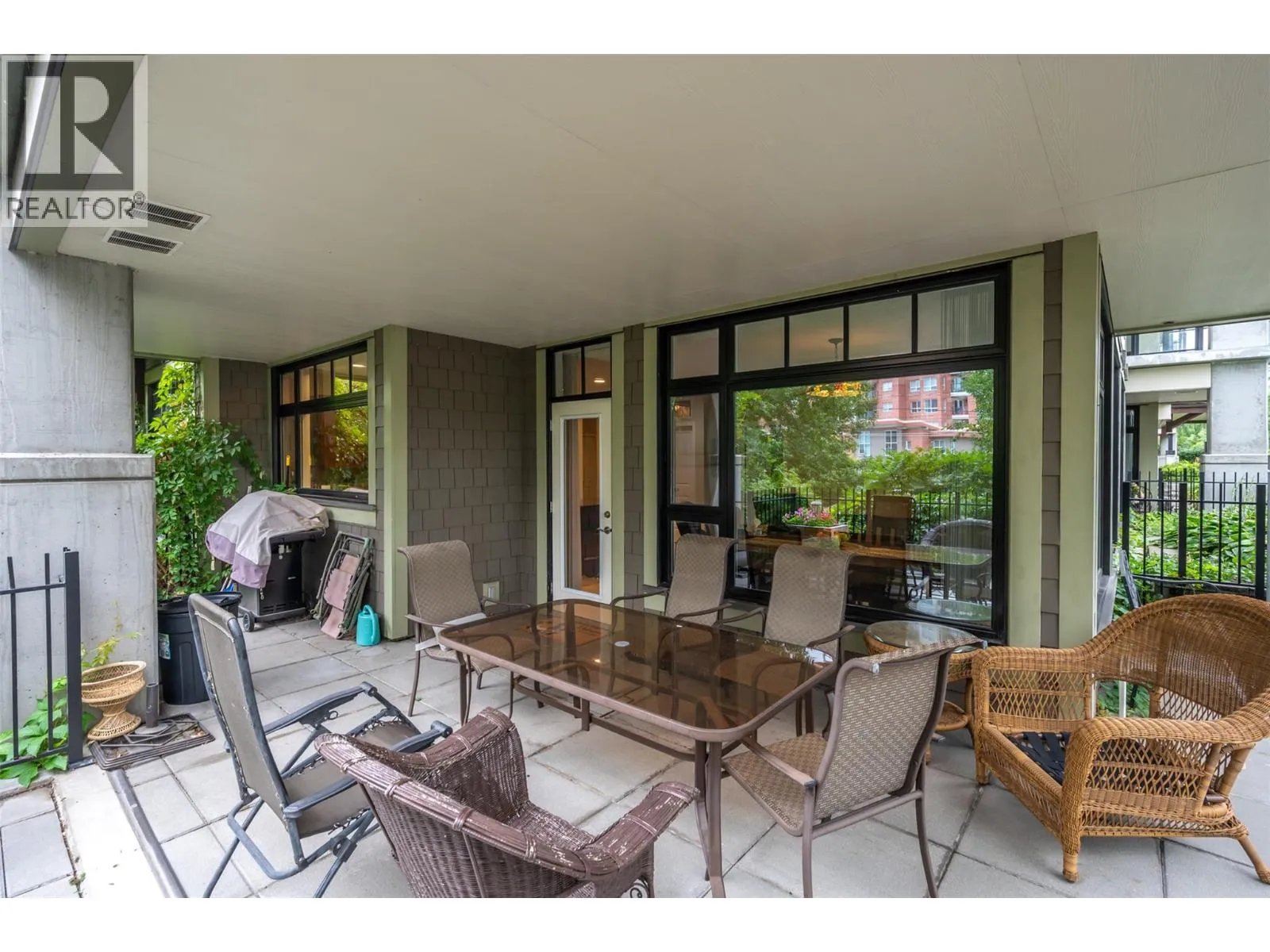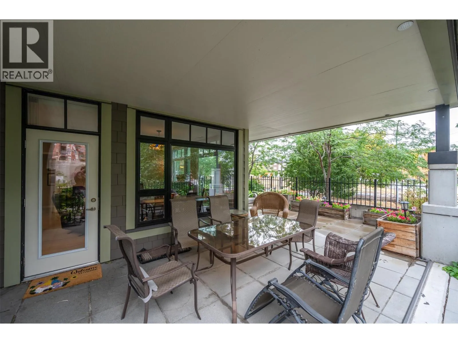 Welcome to Alysen Place located at the south end of Penticton. The suite is 1,133 sq ft and features 2 bedrooms and 2 bathrooms on the north east ground floor corner of the building. Large windows, granite countertops, new electric fireplace, master bedroom features walk through closet, standup shower, separate soaker tub, 2 sinks and a large mirrored medicine cabinet. The deck is over 500 sq ft surrounded by trees and vines. Strata fees include use of the amenity room, geothermal heating, cooling, hot water, natural gas hookup for BBQ, building insurance, maintenance of common area and landscaping. Walking distance to Skaha Park and beach where you will find tennis and volley ball courts, restaurant, boat and sea doo rentals, plus water park for the kids and an amazing park for family picnics and gatherings. 1 parking stall, all ages welcome, 1 cat or 1 dog with restrictions, quick possession and furniture is available. Easy to show. Contact the listing agent for more information. (id:27476)