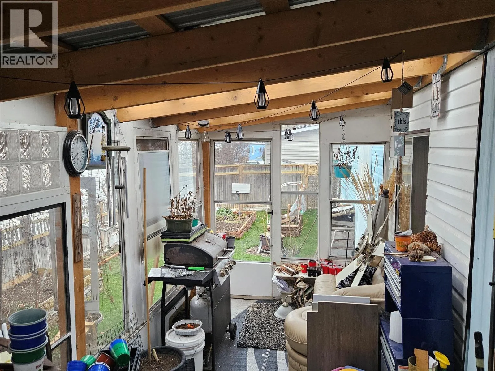Welcome to Sun Leisure Mobile Home Park, located across the street from Skaha Lake and beside the famous Channel. This maintained 924 sq ft residence features an open-concept floor plan and a vaulted ceiling in the living room, giving the space a larger, airy feel. It includes 2 bedrooms and 1 updated bathroom. Outside, the property offers a grassed, deer-fenced yard with raised garden beds and numerous perennial shrubs. Parking is available for at least two vehicles, with room for one in the carport. The park is welcoming: there are no age restrictions, pets are welcome, and rentals are allowed upon park approval. Contact the Listing Agent today to schedule your showing! (id:27476)