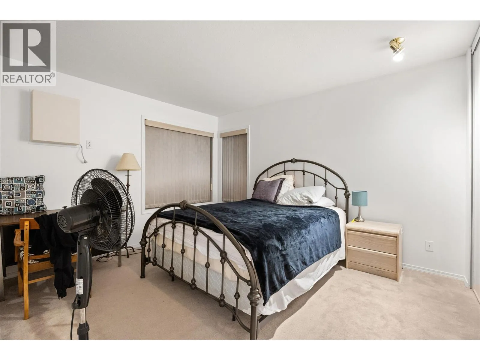 Welcome to this bright northeast-facing top-floor corner unit in the heart of central Penticton. Ideally located next to the bike lane and just a short walk to everyday amenities including Save-On-Foods, Safeway, the mall, Winners, Lions Park, and Parkway. This spacious 2-bedroom, 2-bathroom condo offers just under 1,000 sq ft of comfortable living space with a large kitchen open to the dining and living areas, perfect for everyday living or entertaining. Cozy up by the gas fireplace, enjoy the convenience of a generous in-unit laundry and storage room plus an additional storage locker, and relax on the large covered deck. A fantastic opportunity for those seeking a well-located, quiet, low-maintenance home close to it all. (id:27476)