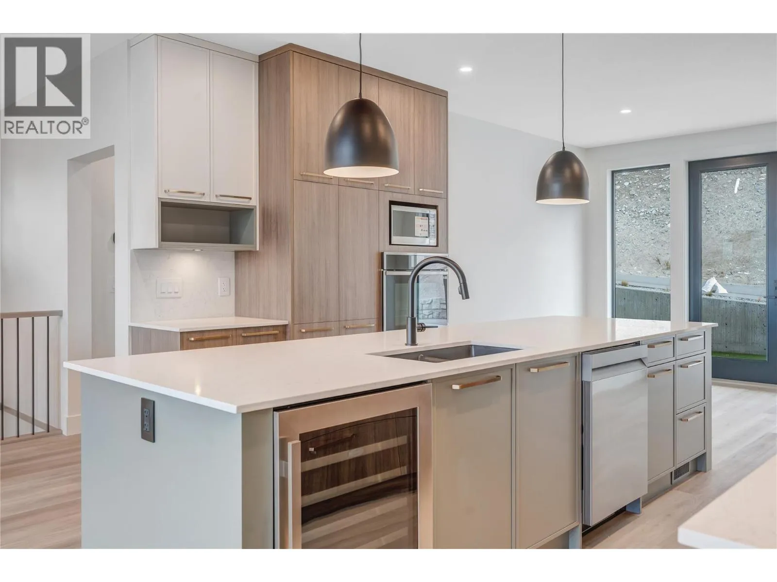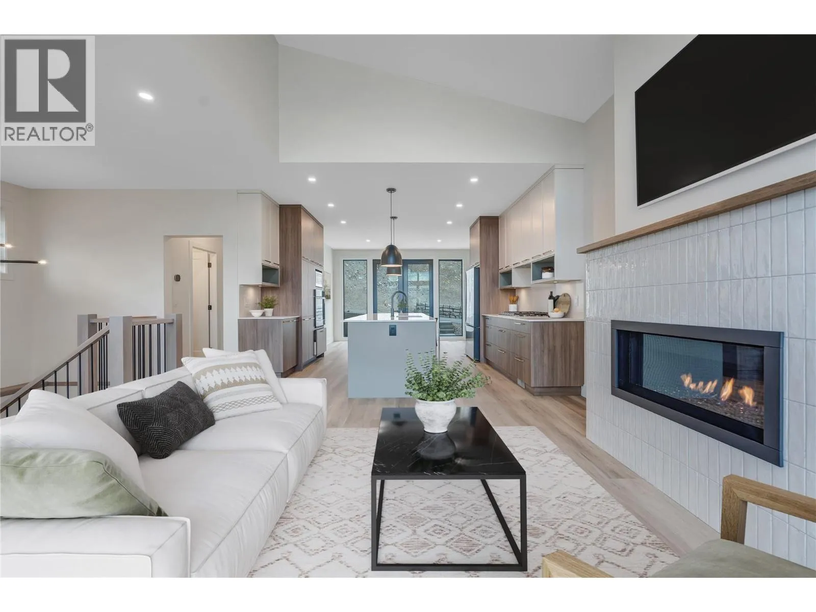 Thoughtfully designed modern duplex with breathtaking views of Skaha Lake and the Okanagan Valley located in The Ridge Penticton. This home boasts 3 storeys of luxurious living space spanning over 2100 square feet and has been designed with convenience in mind, featuring an elevator to take you to each level with ease. Enjoy the amazing views from the top floor while having your morning coffee or entertaining guests for dinner. This floor also has a conveniently located bedroom/den or office space. Bring in groceries with ease from the level laneway access. On the second floor you'll find a spacious laundry room, primary bedroom with 5 piece ensuite with in floor heating and walk in closet. Another spacious bedroom with it's own 4 piece ensuite is also located on this floor. The theatre room on the lower level is perfect for watching sporting events or family movie nights. Featuring quartz countertops, luxury vinyl plank floors, stainless steel appliances, modern lighting packages and 2 car tandem parking in the garage. Enjoy the Okanagan lifestyle with this easy, turnkey living home. (id:27476)