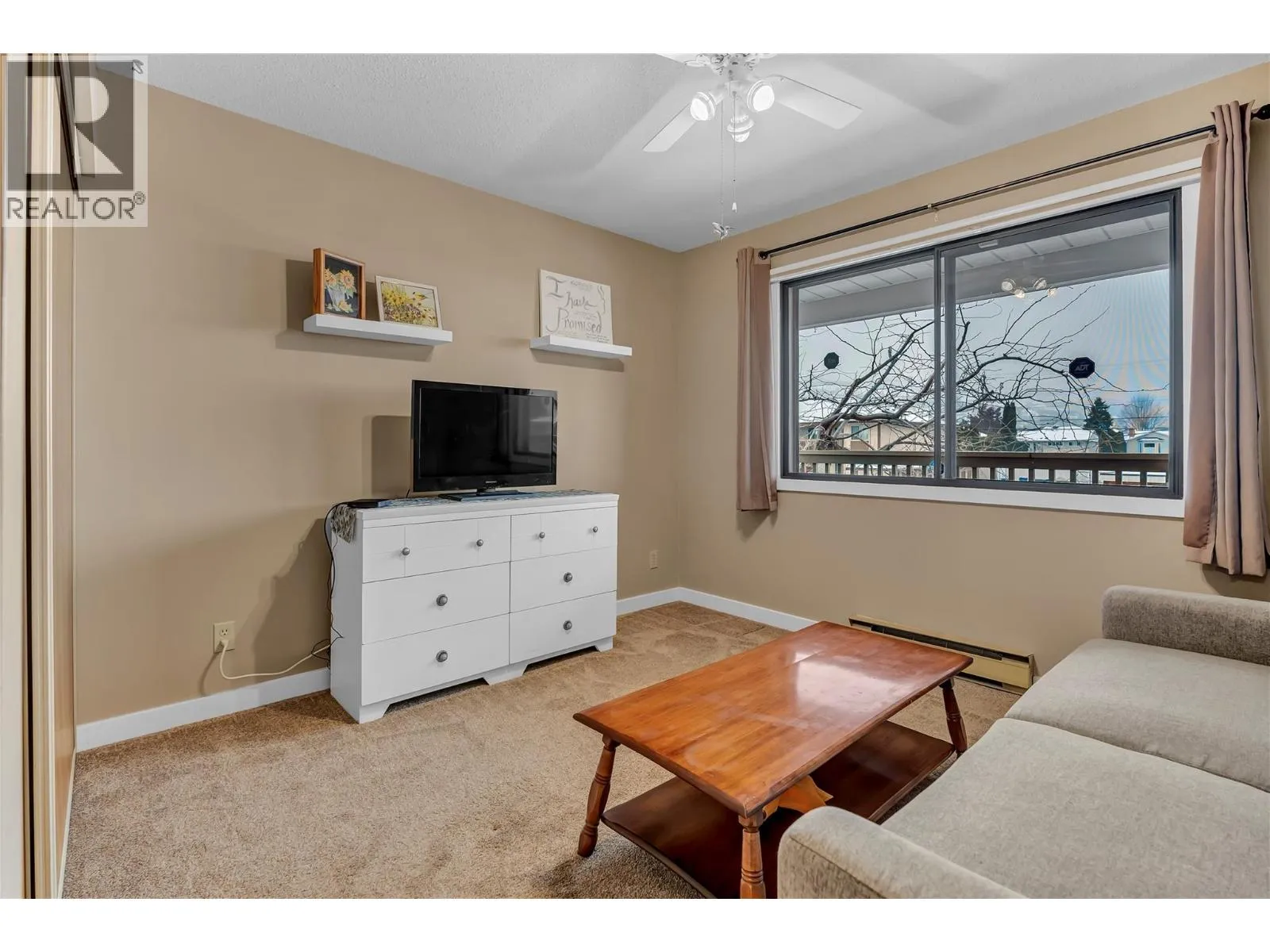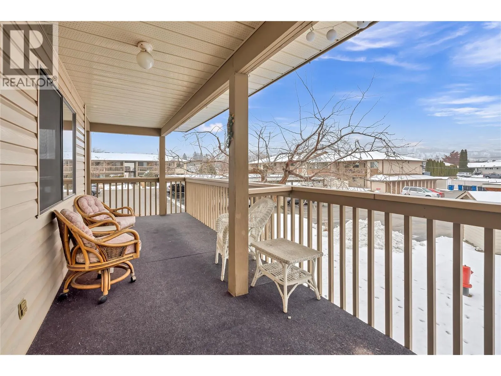 Ready for a truly carefree chapter? Step into easy living with this exceptionally spacious, beautifully updated corner-unit apartmentâa rare find in Pentictonâs sought-after 55+ community. With 1,438 sq. ft. of thoughtfully designed living space, this home delivers the comfort and scale of a rancher without the maintenance. The versatile den offers flexibility for a home office, hobby space, or visiting family. Completely turnkey, the home features two fully remodelled bathrooms, fresh designer paint, and updated appliancesâso you can move in with confidence and zero projects. Natural light fills the expansive living and dining areas, flowing effortlessly onto an impressive private wrap-around deckâan ideal outdoor extension for entertaining, relaxing, or enjoying Okanagan sunshine in peace. Function meets convenience with secure covered parking and a rare oversized private storage room (5'9"" x 9'), conveniently located near the unit. The location couldnât be better: a short, level walk to Cherry Lane Mall, restaurants, and everyday amenities. This well-managed, pet-free, 55+ strata offers a quiet, respectful, community-focused environmentâperfect for those who value comfort, simplicity, and quality of life. This is low-maintenance living done right. Move in, settle down, and enjoy the lifestyle youâve worked for. (id:27476)