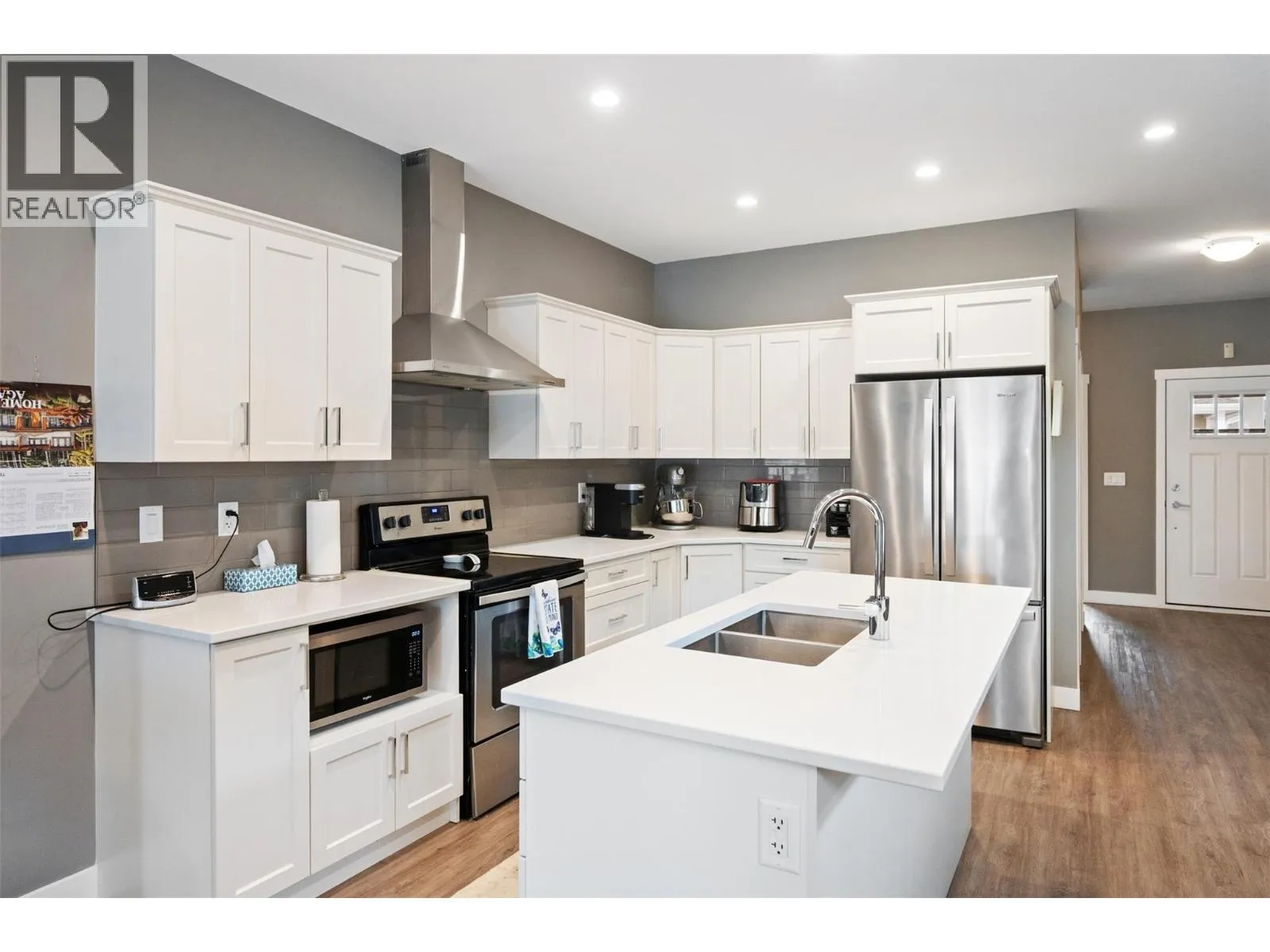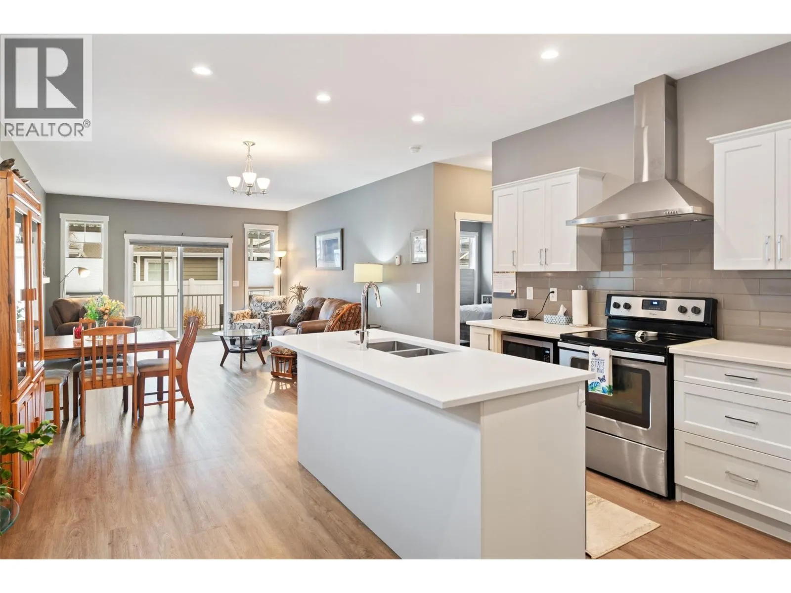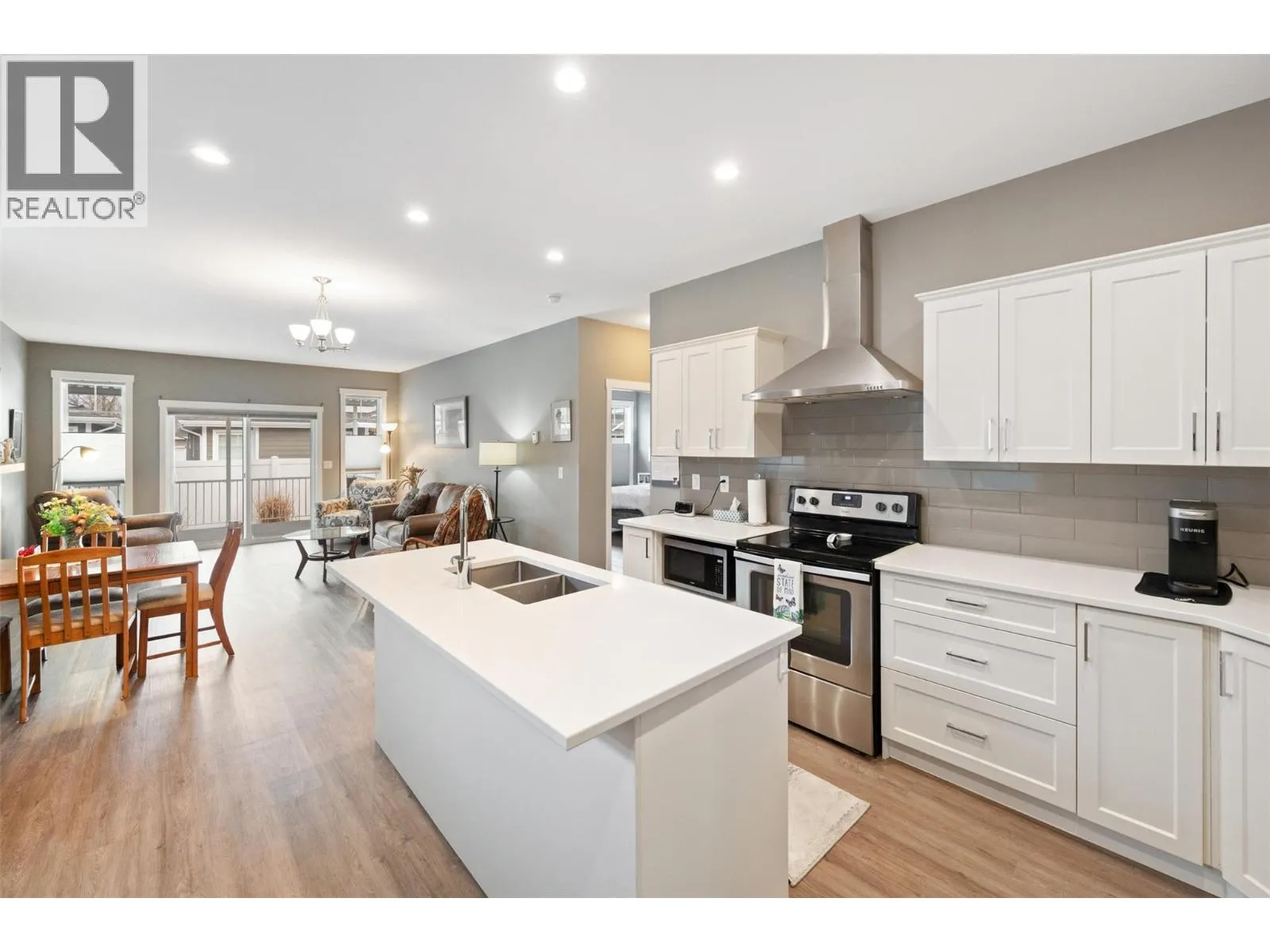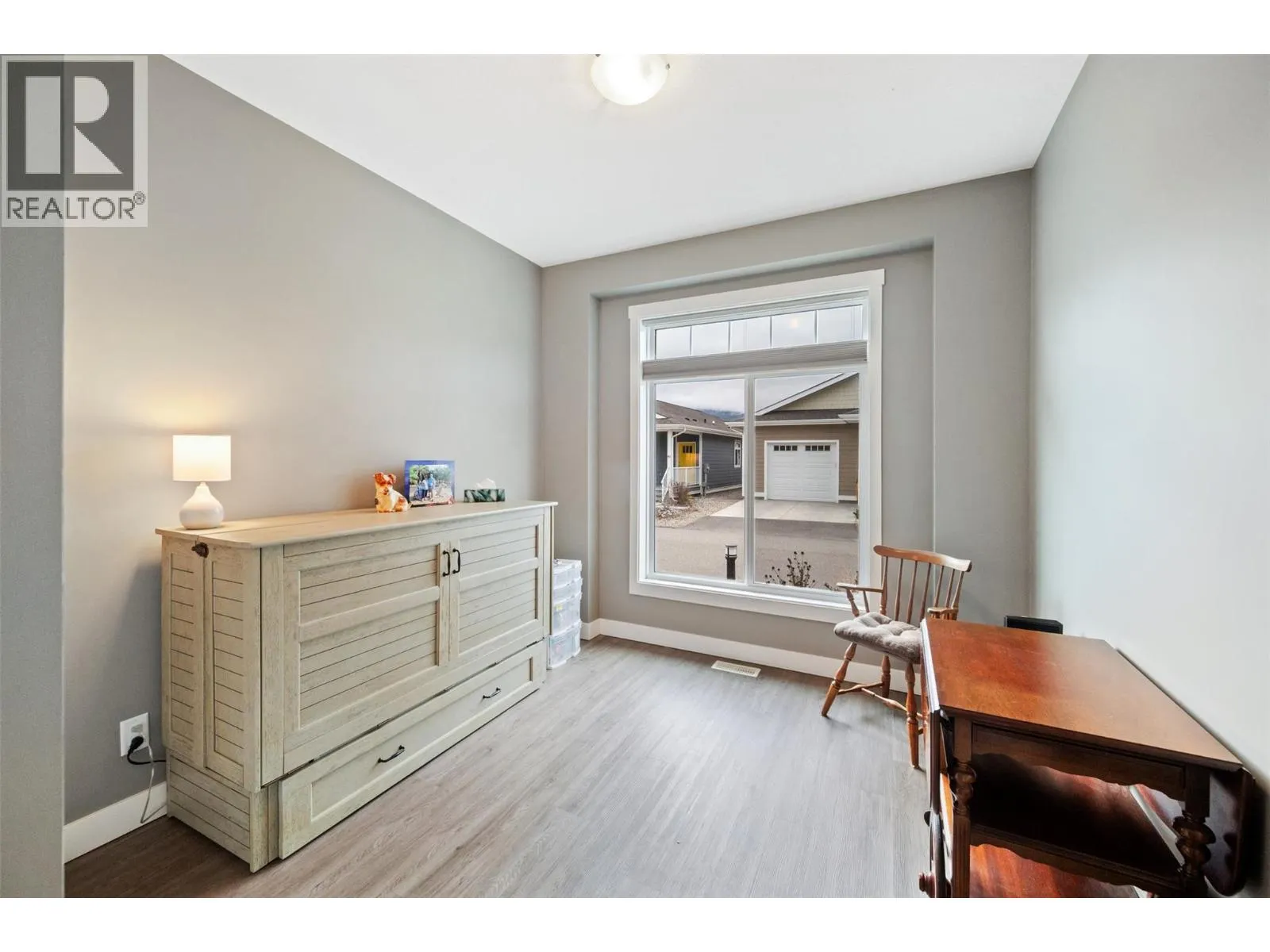 Bright and spacious well appointed two bedroom, two full bathroom unit located in one of Penticton's most desirable developments, The Bow. This one level rancher offers an airy open concept living space with tons of windows and features custom blinds that can go all the way up, all the way down or partial up or down for privacy and letting the light in. The kitchen includes a large island with room for seating, great counter space, and tons of storage. The large living room offers the coziness of the electric fireplace and has access to the beautiful outdoor space. Outside you can enjoy the covered deck as well as the low maintenance, easy care yard that looks great, even while you are away travelling. The attached single garage means no more parking in the elements! The huge primary bedroom has a walk in closet, and a private ensuite with two sinks and a step in shower. The second bedroom is at the opposite end of this home, next to the main bathroom. Living at The Bow offers access to the clubhouse that can be booked for private engagements, an active social committee, a great walking path, centrally located to shopping and onsite property management. This development welcomes all agents and allows pets with approval. Check out the virtual tour online and book your private tour today! (id:27476)