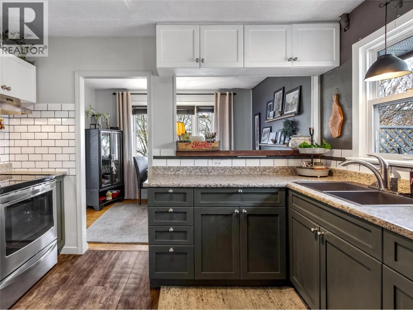 Welcome to 413 Conklin, a renovated character home situated on a huge flat quarter acre lot in a fantastic neighborhood! This 1675 sqft home has 3 bedrooms & 2 bathrooms, several rec rooms & lots of storage. As you enter the main floor youâll find the cute foyer space & step into the large/bright living room full of original charm; like the gorgeous inlaid solid hardwood floors, & the updated brick fireplace. The hardwood floors continue into the classic dining room that been opened up into the kitchen giving it a more current flow while maintaining the classic layout. The well appointed kitchen has stylish dark green lower cabinets with white uppers, opens into the dining area, has open shelving for display & beautiful subway tile backsplash. The main floor is finished off with 2 excellent sized bedrooms & the updated bathroom. Downstairs offers tons of extra space with a 3rd bedroom, 2nd bathroom, large rec room & a den/4th bedroom. There is also a laundry room, & tons of storage. The home has had lots of updates like vinyl windows, furnace 4 years old, new hot water tank & more. The backyard features a huge deck & massive yard space. Zoning in this area offers lots of options like a carriage home/suites. The older garage out back is perfect for extra storage & the laneway in the back is ideal for access or a future development or garage rebuild, and offers privacy. This excellent neighborhood is ideal for walking and access to town while surrounded by single family homes. (id:27476)