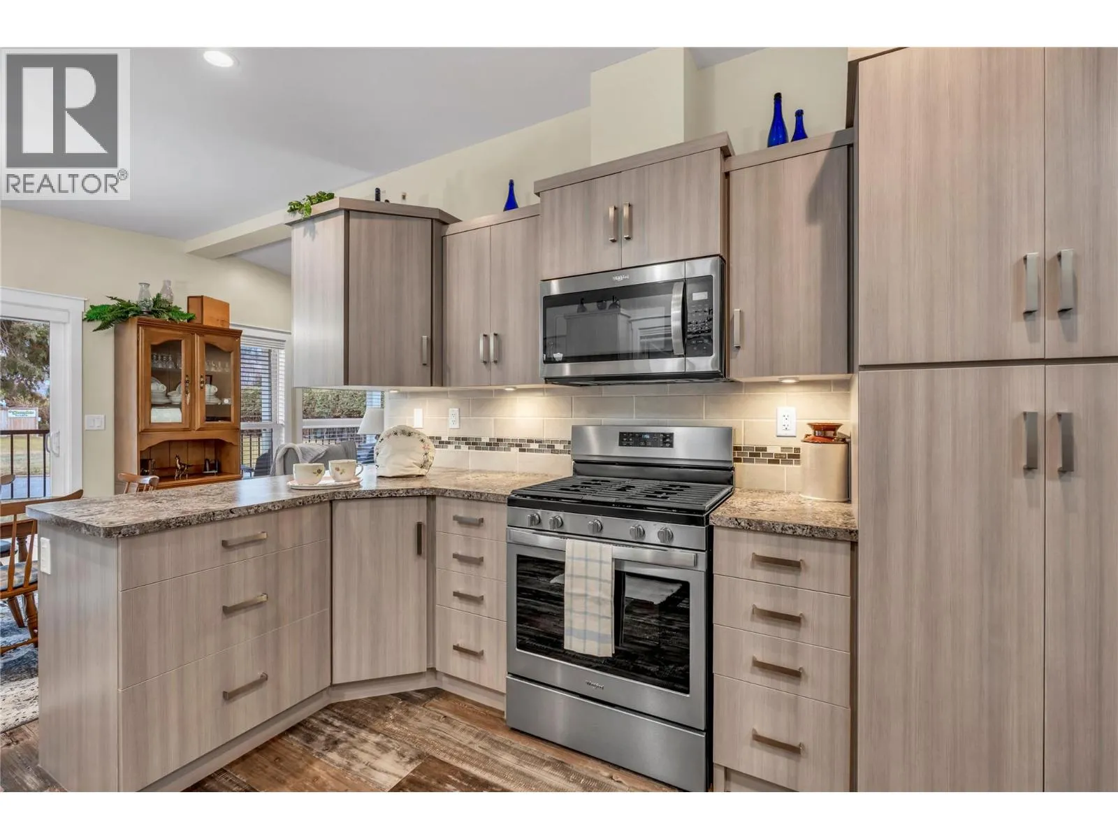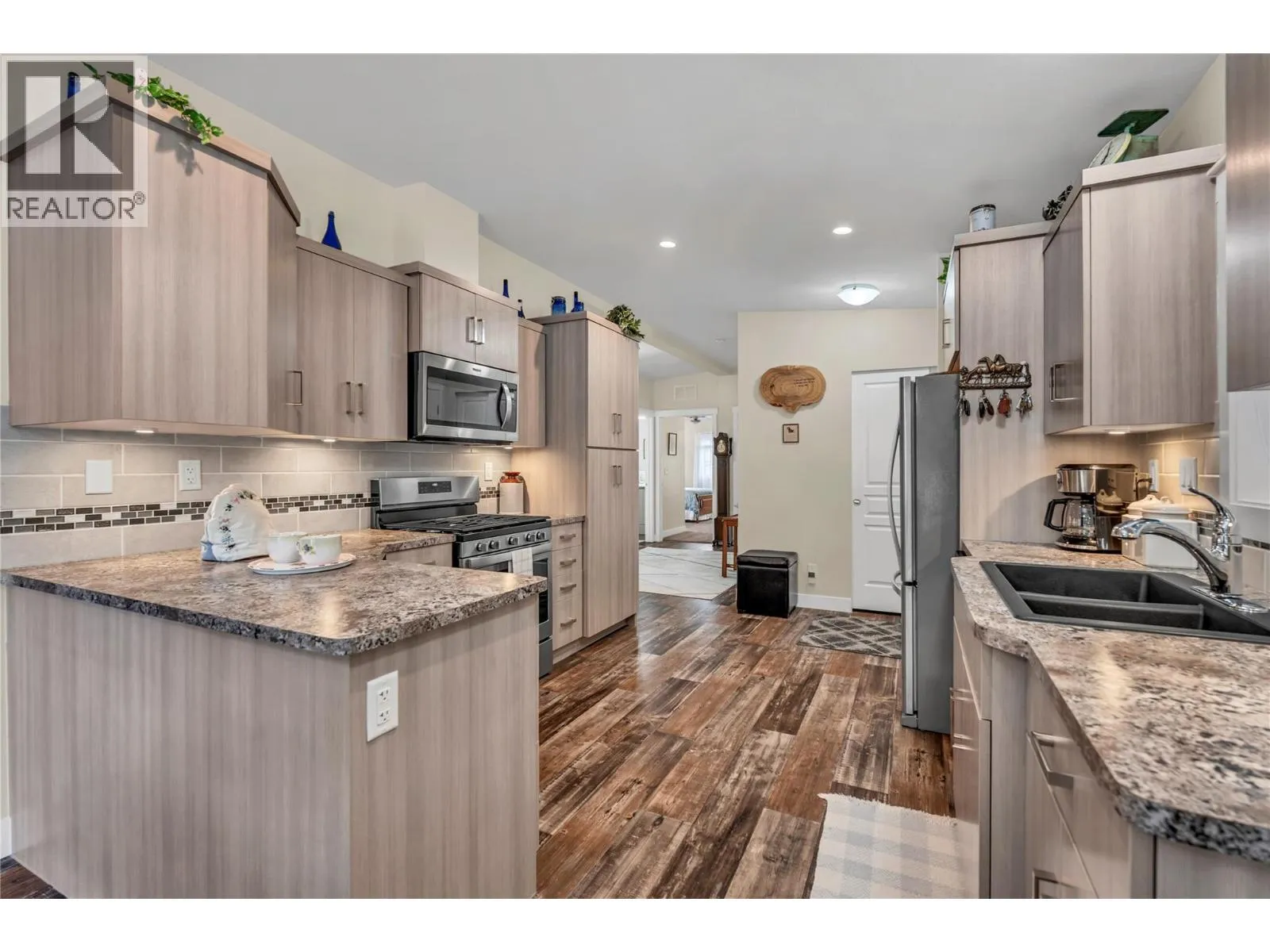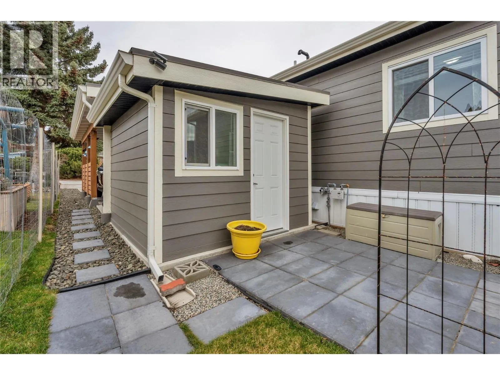 Immaculate, modern Moduline double-wide in quiet Dauphin Park, Built in 2020 offering 2 bedrooms, PLUS den, 2 bathroom with open spacious floorplan. Bright kitchen/dining room has plenty of cabinets and counter space with patio door access to large deck for easy outdoor living across from green space. Other features include stainless steel appliances, gas stove with convection oven, central air, workshop, 200 amp power and covered carport. Living room is large with a beautiful gas fireplace for cozy evenings. Wide hallway leads to spacious master bedroom with 3 piece ensuite, 2nd bedroom, 4 piece bath, den and laundry room with upper and side storage units. Dauphin park is a gated community, 55 plus and now allows 1 cat or 1 dog with park approval. No rentals. A wonderful retirement option and walking distance to Skaha Beach to enjoy boating, walking paths, pickleball courts and more. (id:27476)