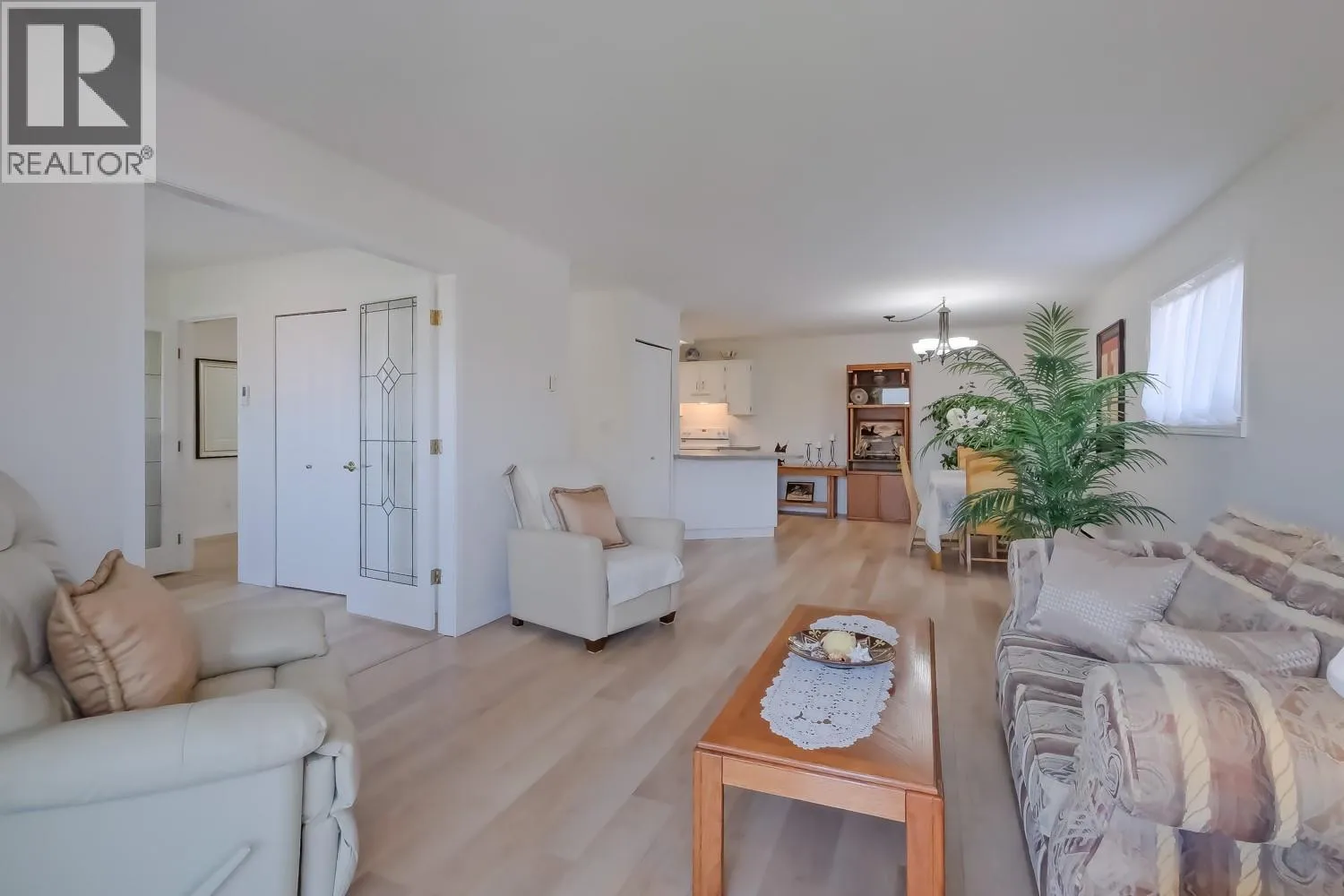 Top-Floor Corner Condo by Okanagan Lake! Welcome to this bright and spacious northwest corner unit, perfectly positioned just steps from the sandy shores of Okanagan Lake. Offering 1,112 sq. ft. of comfortable living, this suite features 2 bedrooms, 2 full bathrooms, and the convenience of in-suite laundry. Recent updates include stylish flooring, fresh paint, a newer washer & dryer, plus a new hot water tank (late 2023). Natural light fills the open layout, creating a warm and inviting atmosphere. Step outside your door and enjoy everything Pentictonâs Lakeshore Drive has to offerâscenic boulevard walkways, award-winning restaurants, local breweries, and of course, the beach! This well-maintained building is age-restricted to 55+ and offers a quiet, relaxed lifestyle with quick possession. Sorry, no pets. (id:27476)