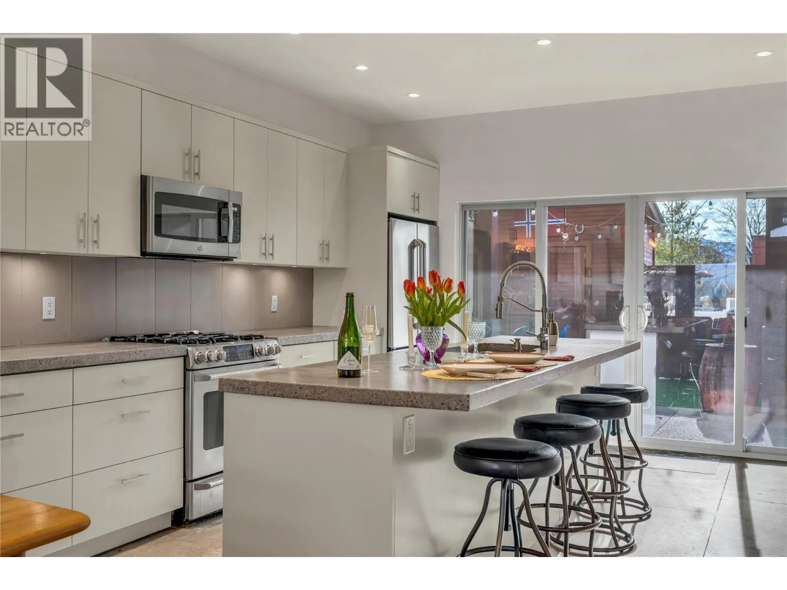Discover modern beach-side living on one of Pentictonâs most coveted streets, Alexander Avenue. With a beach access walkway directly across the street, this contemporary half-duplex offers the perfect blend of style, comfort, and location. Built with quality at its core, the home features an ICF concrete separation wall, radiant-heated concrete floors, and a bright open layout that feels both warm and sophisticated. The kitchen is equipped with GE Bistro stainless steel appliances, flat-panel cherry wood cabinetry, and sleek concrete countertopsâan ideal space for cooking and entertaining. Offering 2 bedrooms plus a versatile loft, the home provides flexible space for an office, studio, or guest overflow. The private covered patio includes a natural gas hookup for year-round barbecuing, and the south-facing backyard is fenced and low-maintenance with SYNLawn, plus a custom-built wired shed ideal for storage, hobbies, or a small workshop. This modern-day beach house is perfect for empty nesters, a vacation retreat, or anyone looking to live steps from the beach, restaurants, the farmers market, and downtown. With its modern design, thoughtful finishings, and unbeatable proximity to Pentictonâs best amenities, opportunities like this rarely come available. All measurements are approximate and based on IGuide and/or BC Assessment (id:27476)