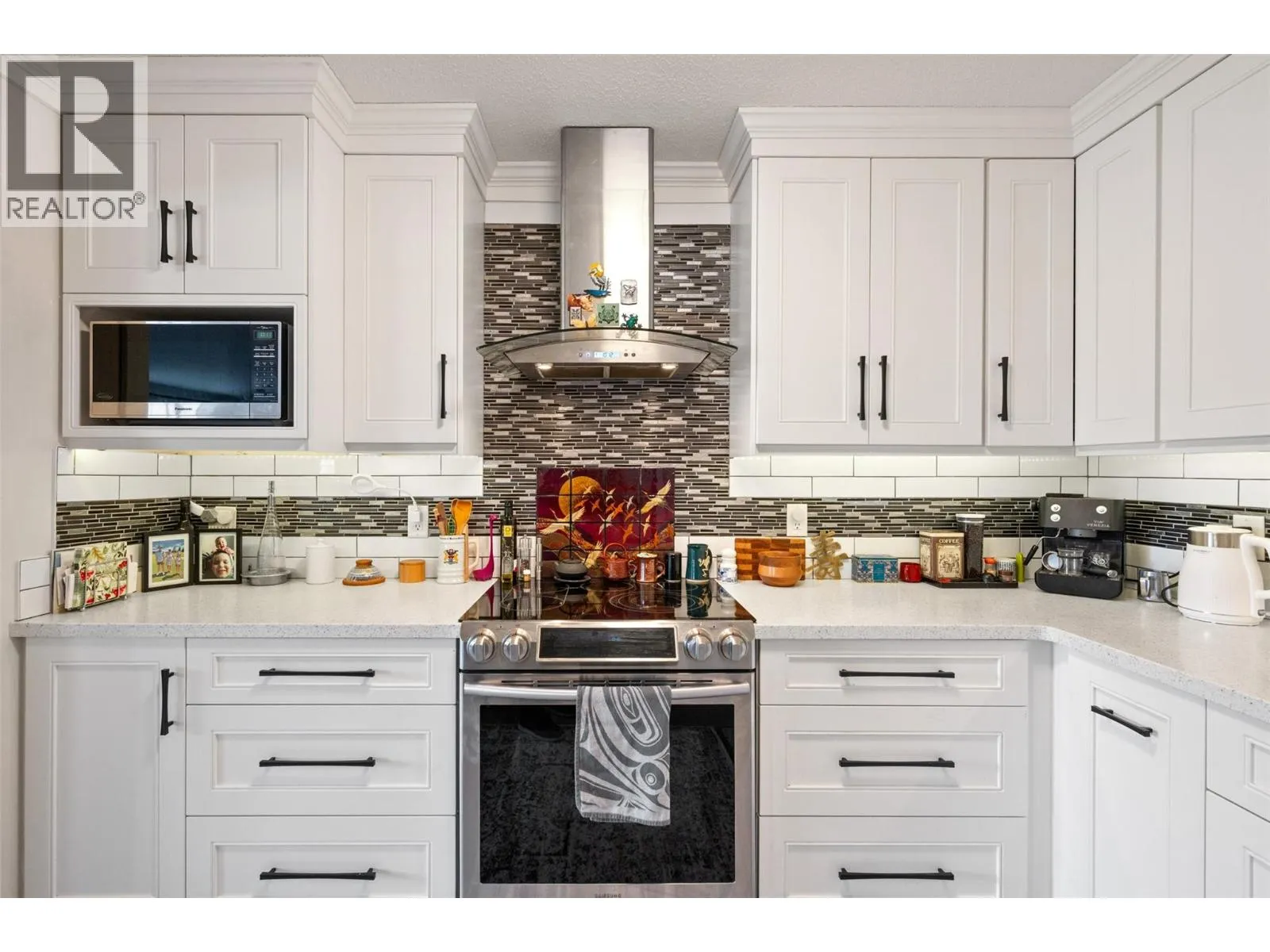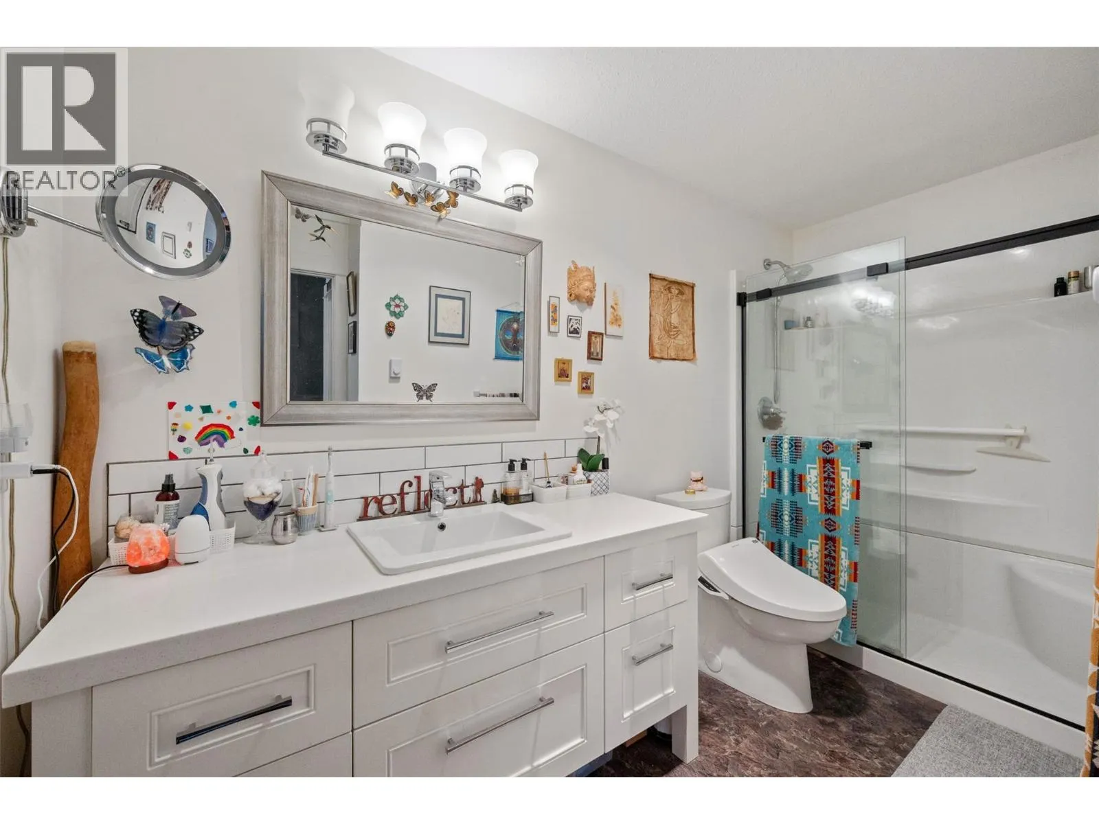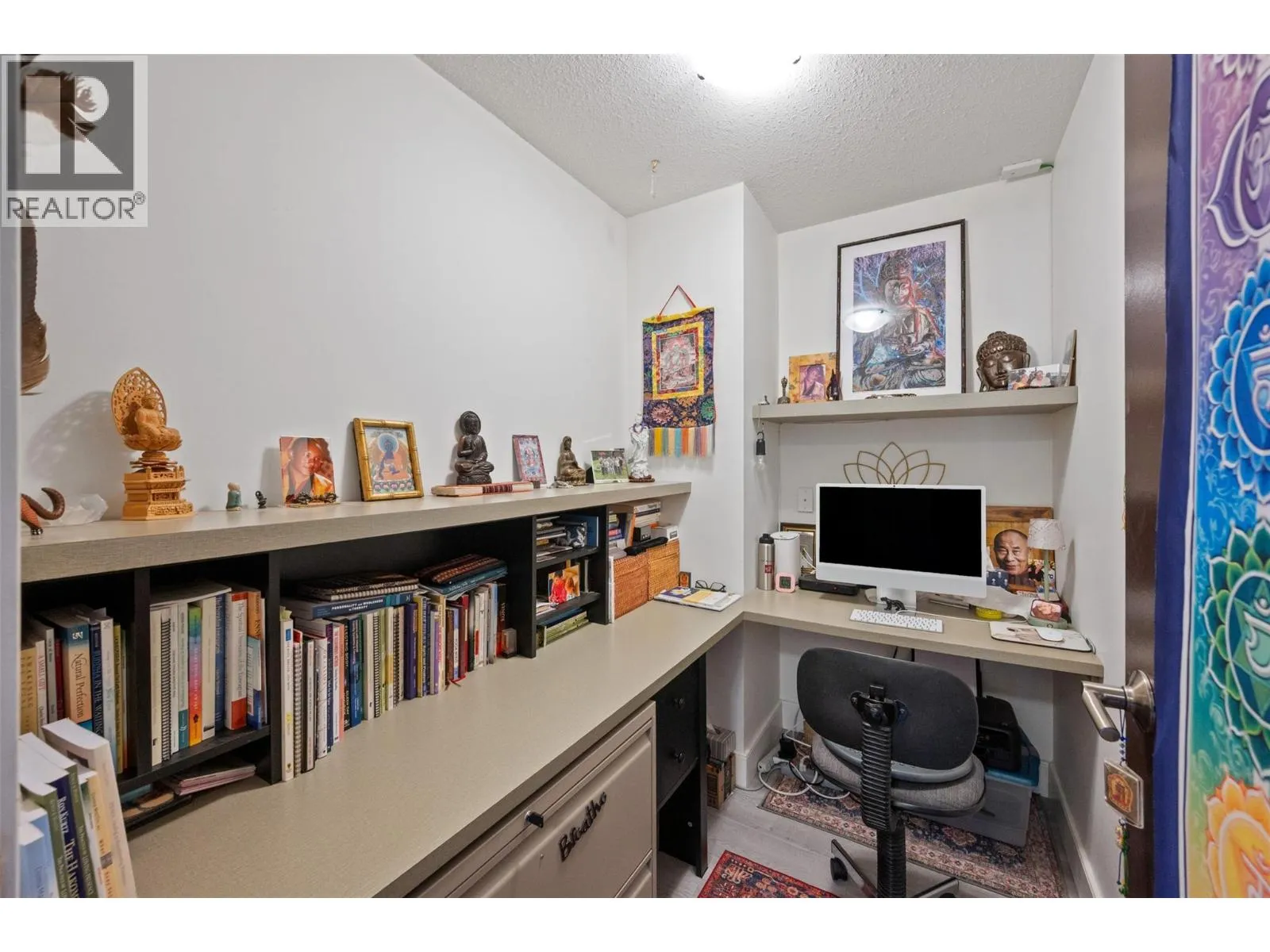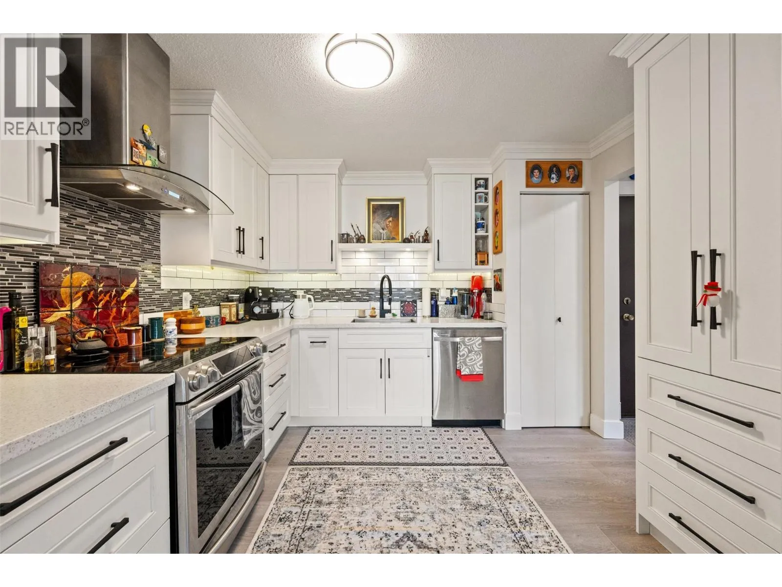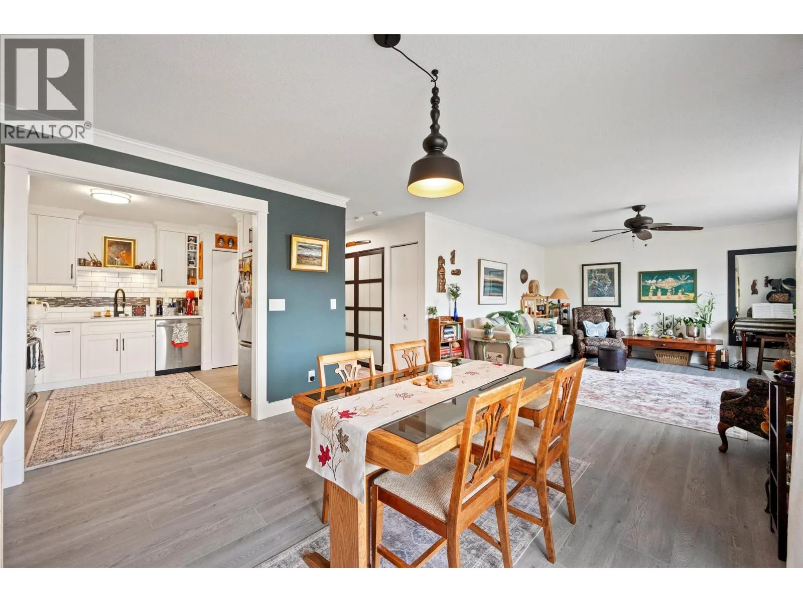 This 985 sq. ft. top-floor condo offers a spacious and functional layout in a central Penticton location. The bright, open-concept living and dining areas are complemented by a modernized kitchen featuring stainless steel appliances. In addition to the large primary bedroom, the floor plan includes a dedicated small officeâperfect for a hobby room or workspaceâalong with the convenience of private in-suite laundry. Outdoor living is a highlight with a good-sized, north-facing covered deck that provides a comfortable retreat while avoiding the intense heat of the midday sun. This 55+ building is a pet-free environment that has been well-maintained, including the recent installation of a new elevator in 2025. One dedicated covered parking spot is included. Perfectly situated for an active lifestyle, the home is just a short walk from local shopping and restaurants, with both Okanagan Lake and Skaha Lake only a quick drive away. (id:27476)