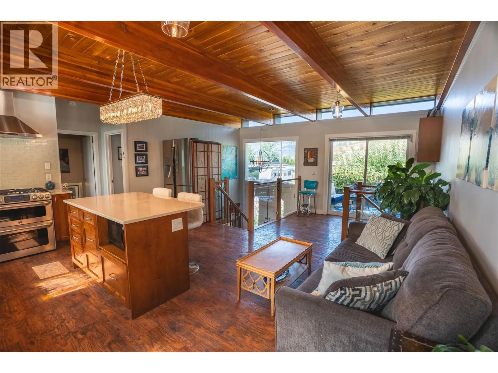 OPEN HOUSE Sat Feb 21 10 am to 11 am. Discover this charming and beautifully renovated single-family home nestled in the heart of Penticton. Boasting timeless mid-century architecture, this inviting residence features warm, exposed beams, stunning clerestory windows that flood the space with natural light, and rich wood floors that create a cozy yet sophisticated ambiance. The spacious living and dining areas are perfect for gatherings and everyday comfort, complemented by a sleek, fully updated kitchen with modern appliances and stylish finishes. With four generous bedrooms and two rejuvenated bathrooms, there's plenty of space for family and guests.Step outside to enjoy the idyllic outdoor living areas: a charming front balcony ideal for morning coffee, covered decks and sun decks perfect for entertaining or relaxing, and multiple patios surrounded by lush gardens, vibrant fruit trees, and a delightful chicken coop. Unwind in the private hot tub or just enjoy your serene, sprawling backyard oasisâan ideal setting for outdoor hobbies, family fun, or quiet reflection.This spacious property offers ample parking, including plenty of room for RVs and boats, lane access, and a large, lush lot that provides privacy and tranquility. Located in a friendly, close-knit neighbourhood just minutes from schools, shopping, parks, and nature this home is the perfect sanctuary for creating lifelong memories. Embrace the best of outdoor and indoor living in this warm, inviting retreatâyour dream home awaits. (id:27476)