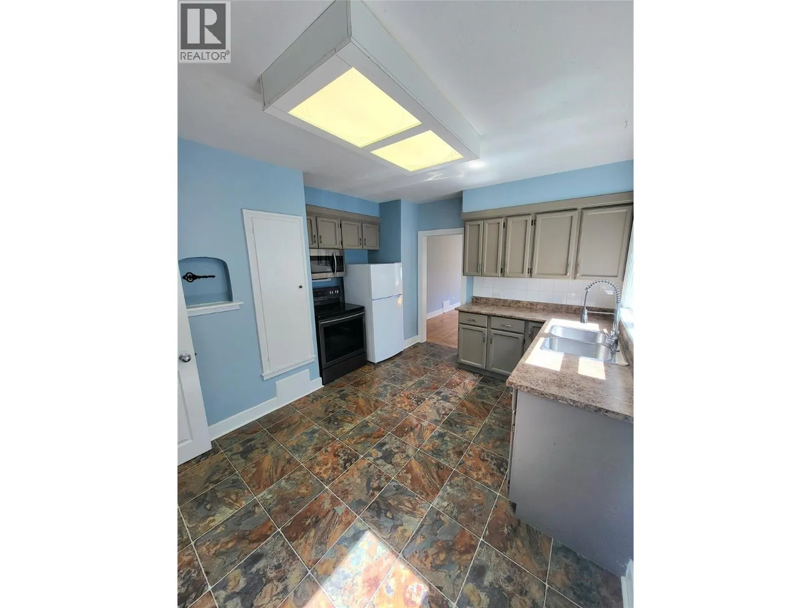 Close to the heart of downtown Penticton. Large 0.19-acre R4-L lot presents a fantastic opportunity, whether you're looking for a holding property with potential for multi-unit residential development or a charming starter home in Penticton's vibrant downtown core. The location offers unparalleled convenience, with schools, breweries, restaurants, shops, and numerous amenities just a short stroll away. The 2-bedroom home on the property is in excellent condition, brimming with character and boasting a host of recent upgrades, making it move-in ready. You'll appreciate the original hardwood flooring, the upgraded kitchen with newer appliances, and the updated 4-piece bathroom. The home also features newer vinyl windows and a poured stamped concrete pad in the backyard, perfect for barbecues and entertaining. The full basement is partially finished, offering ample space for future expansion. Detached single garage and or workshop at the rear of property, and extra parking included right outside your back door. Recent home inspection performed and brand-new hot water tank June 2025 on file. Call LS for a personal tour. All meas approx. Pictures were taken prior with vacant tenancy, and recent photos of family furnishings. (id:27476)
