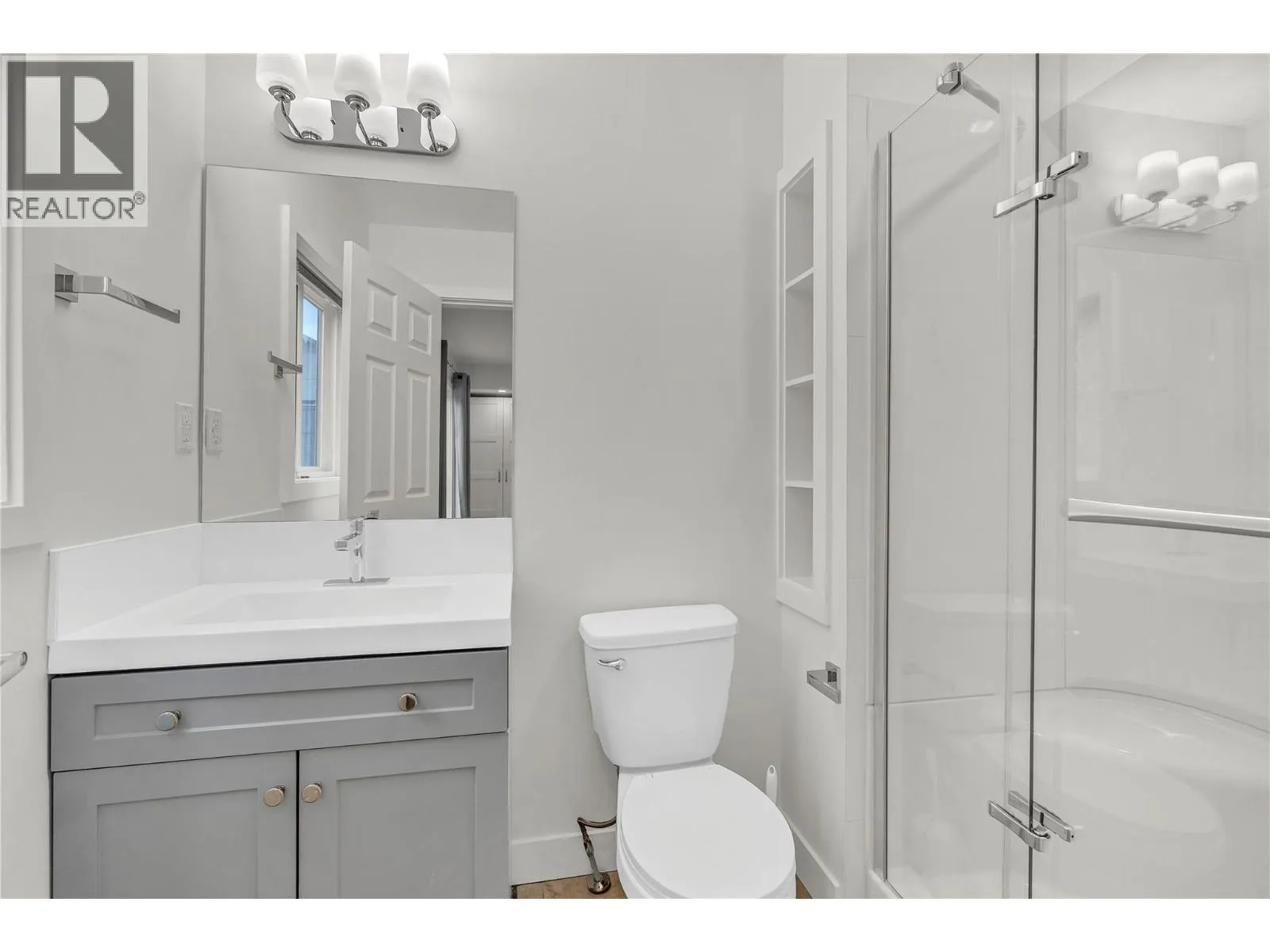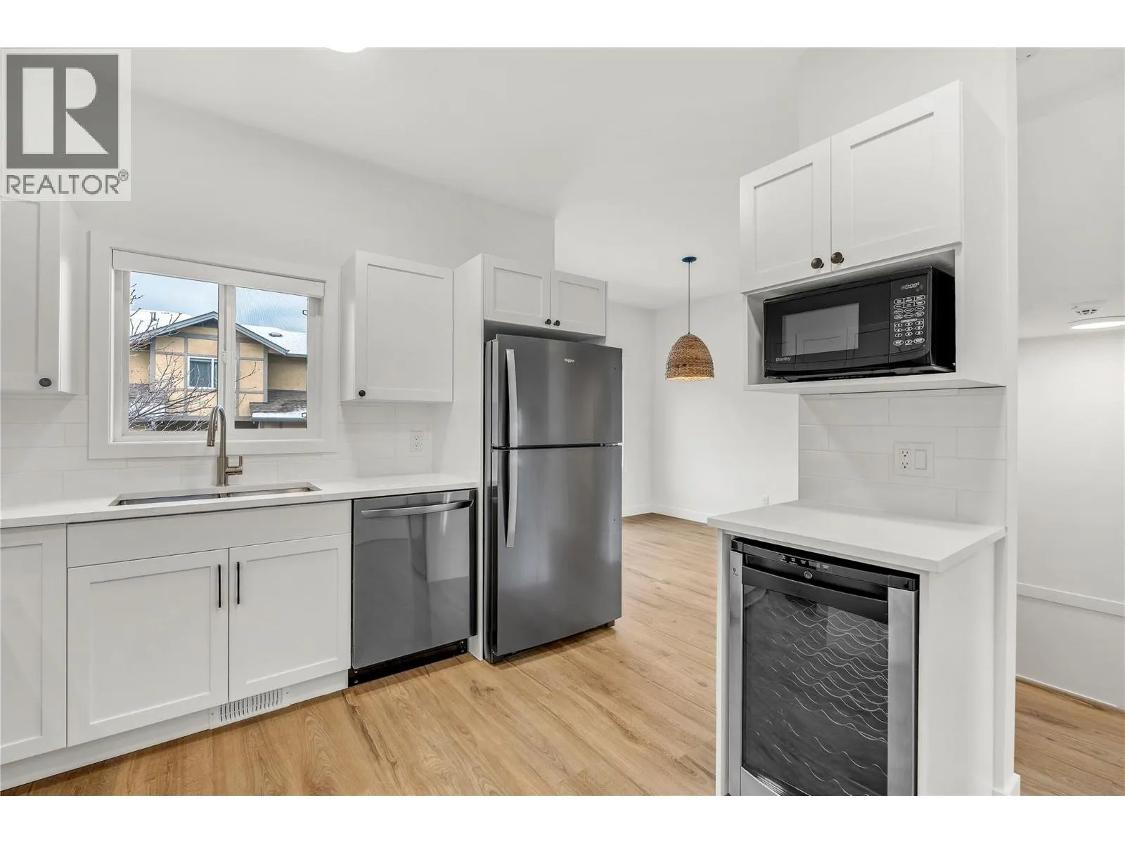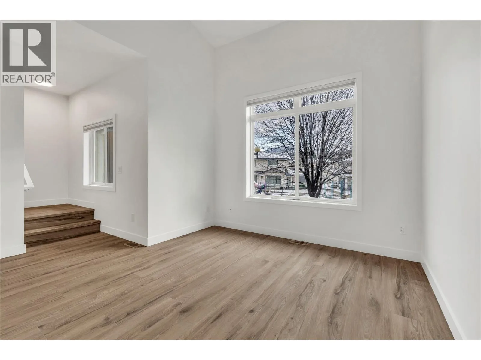 Bright and updated three level townhouse in a central Penticton location. The entry level offers a single car garage with driveway parking, a versatile third bedroom or rec room, a three piece bathroom, and access to a peaceful ground floor patio and landscaped sitting area, perfect for enjoying the morning sun. The main level features high ceilings and large windows that create an airy, light filled atmosphere rarely found in a townhouse. Newer vinyl plank flooring, quartz countertops, renovated bathrooms, and a functional kitchen layout complement the spacious dining area, which opens to a private deck ideal for BBQs and entertaining. In suite laundry, extra storage, and a convenient two piece bath complete this level. Upstairs includes a generous primary bedroom with walk in closet and ensuite access to a four piece Jack and Jill bathroom, plus a second well sized bedroom providing flexibility for children, guests, or a home office. All ages welcome, with one dog and one cat permitted. Conveniently located near shopping, schools, and Skaha Lake, this well maintained home is perfect for first time buyers, growing families, or anyone seeking a comfortable, manageable, and modern living space. Enjoy the combination of privacy, updates, and everyday convenience in a friendly, sought after community. Upgrades list available upon request. (id:27476)