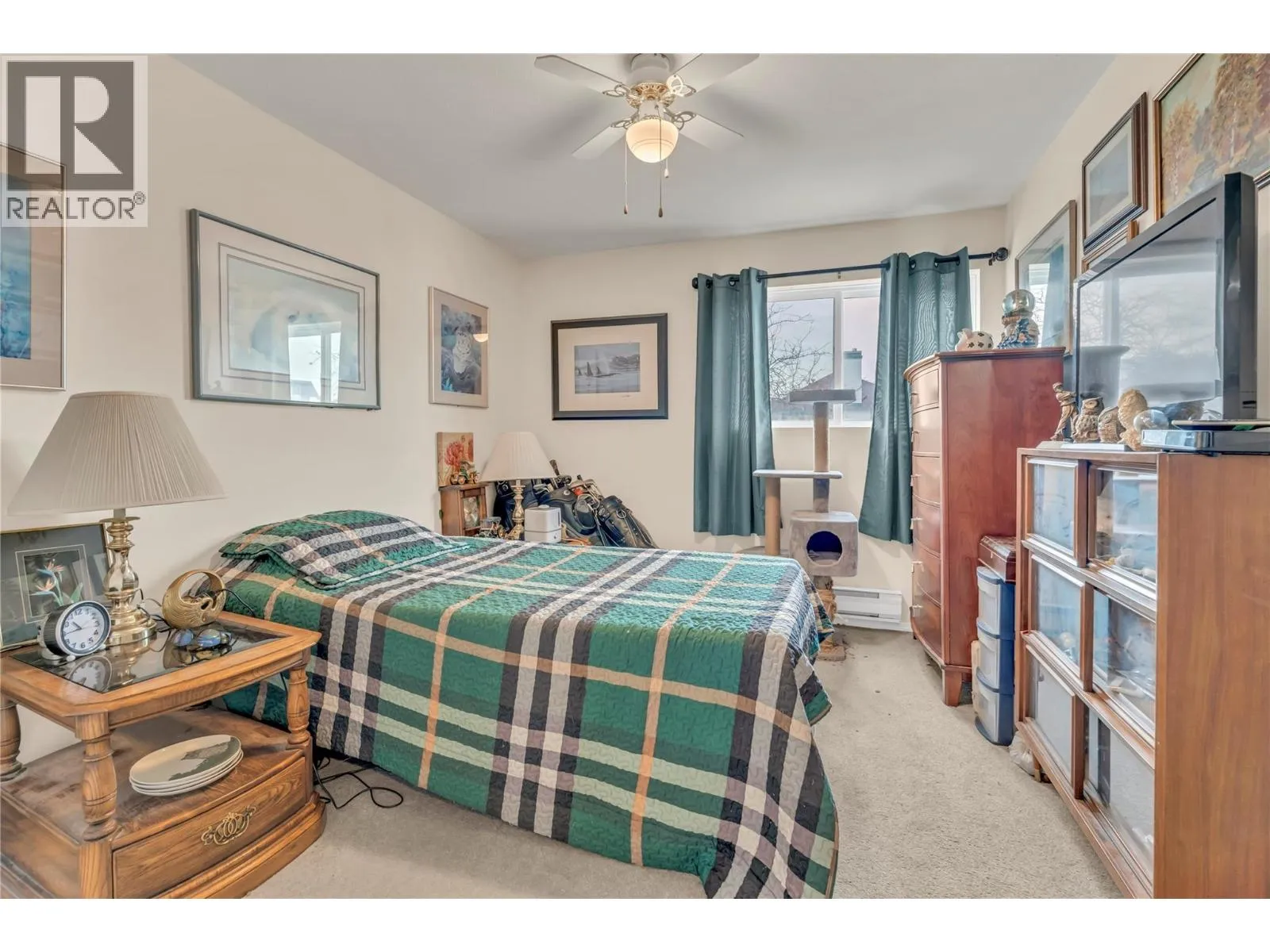 Discover this updated 2 bedroom, 1.5 bathroom condo located in a desirable 55+ community. Offering 1,046 sq ft of functional living space, this Penticton condo features quartz kitchen countertops, new kitchen and dining flooring, new living room and hallway carpets, in-suite laundry, and a covered balcony. Recent building improvements include new windows and a new roof. The unit includes one secured parking stall, a decent size storage locker, and the strata allows 2 cats. Located within walking distance to groceries, pharmacy, school, and church, this home is ideal for downsizers seeking a low-maintenance lifestyle in a quiet, established community. (id:27476)
