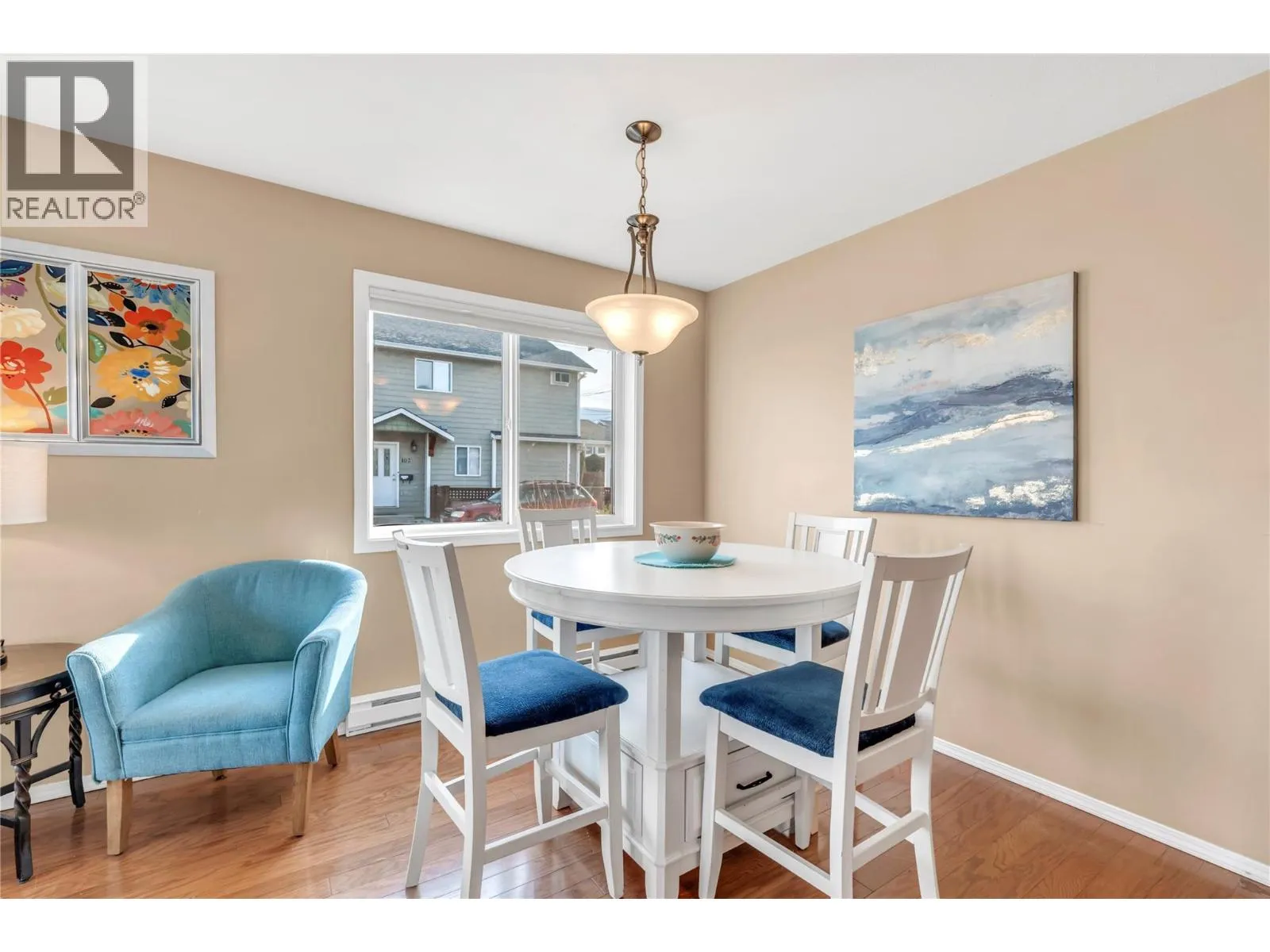 Located in the heart of downtown Penticton, this move-in ready corner half duplex offers the ultimate Okanagan lifestyle. Just minutes to Okanagan Beach, the South Okanagan Events Centre, restaurants, entertainment, the Farmersâ Market and endless biking paths â leave the car at home and enjoy it all on foot. This bright 2 bedroom, 2 bathroom home welcomes you with an open main floor featuring a spacious living room, dining area and kitchen, plus a convenient powder room. Large windows fill the space with natural light and comfortable in all seasons with the ductless heat pump. Upstairs youâll find the primary bedroom, second bedroom, full bathroom and laundry for practical everyday living. Outside, enjoy your private fenced and landscaped yard with low-maintenance turf. One designated parking space is located at the rear, with additional parking available at the side and front. Ideal central location, whether you're starting out, downsizing or investing. Book your showing today! (id:27476)