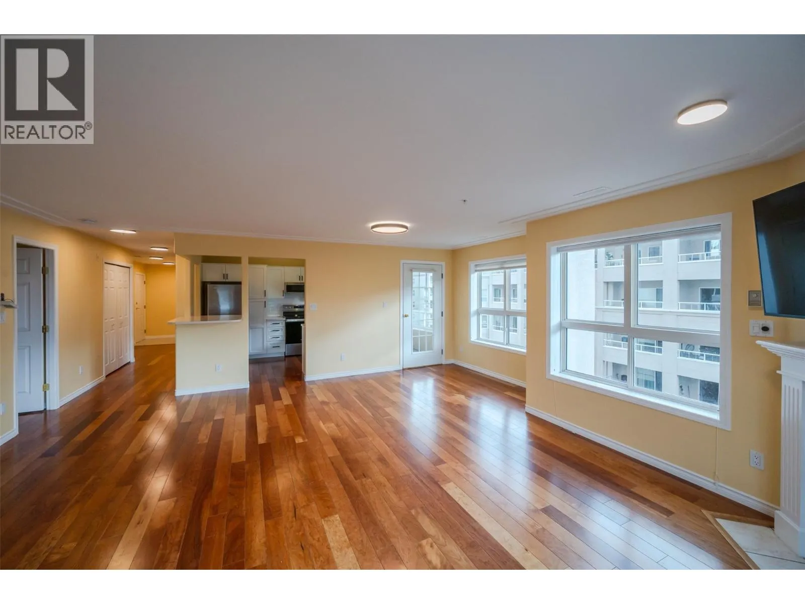 Bright and Spacious Southeast-Facing Corner Unit in Cherry Lane Towers! Welcome to the Hyde building, part of the highly sought-after Cherry Lane Towers. This beautifully maintained 2-bedroom, 2-bathroom home offers 1,200 sq ft of open-concept living, with an ideal layout that connects the open kitchen, dining, and living areas. There's ample space for a full dining set and a cozy living room arrangement. The bright and generous primary bedroom features a large walk-in closet, a 4-piece ensuite, and direct access to a peaceful, private balcony. The updated kitchen includes all newer(2023) appliances, countertops, and plenty of cabinetry for all your storage needs. Enjoy stunning southwest-facing views of Penticton, Skaha Lake, and the surrounding valley mountains from your spacious covered balcony. This well-constructed concrete and steel building offers unmatched peace of mind and lifestyle perksâjust steps from Cherry Lane Mall and transit. Residents also enjoy a 4,000 sq ft recreation area complete with a kitchen, exercise room, pool table, and more. The strata is exceptionally well-run, and the unit is move-in ready and exceptionally clean. (id:27476)