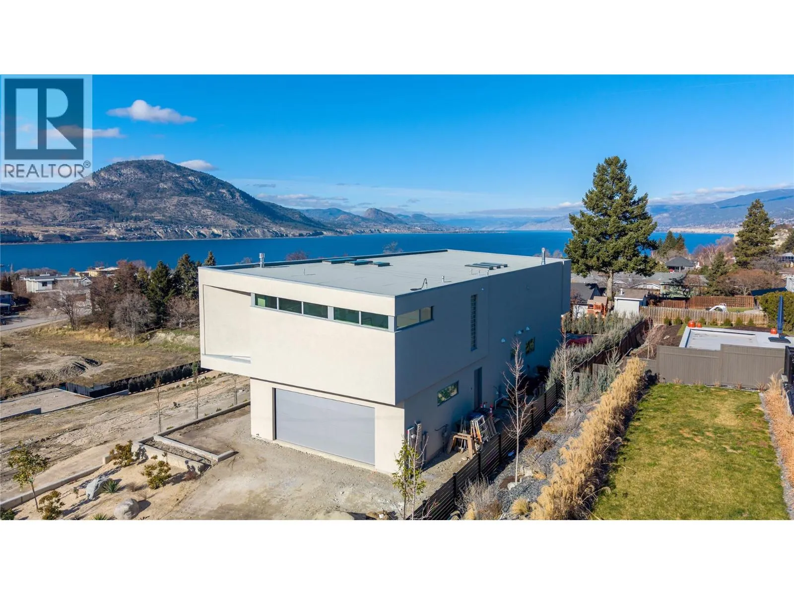 Welcome to Grandview Terraces, a premier luxury development by Agave Homes where luxury meets location. This near-to-complete California Modern residence is ideally situated in a serene, elevated setting, steps away from the scenic KVR trail and within walking distance of downtown Pentictonâs vibrant restaurants, craft breweries, Okanagan Lake, the marina, and the popular weekly Farmerâs Market. Beautiful low-maintenance landscaping and a gated, intimate side courtyard entry welcome you into the home. The innovative reverse floor plan maximizes spectacular lake and mountain views from the expansive terrace, main living area, and kitchen - all conveniently accessible by elevator. The private patio off the primary suite features a hot tub, offering a perfect retreat for quiet evenings. Designed for effortless entertaining, the bright, open-concept kitchen features custom cabinetry, a Taj Mahal quartzite waterfall island and backsplash, high-end Miele and Wolf appliances, and a concealed walk-in pantry with second fridge. A temperature-controlled wine cellar keeps your collection at its best, while the outdoor kitchen and saltwater fiberglass pool extend the living space, embodying the best of Okanagan indoor-outdoor living. Purchase price exclusive of GST. Measurements approx - based on architect's renderings. Call your Realtor® or the listing agent today for more information about this beautiful build from Agave Homes! (id:27476)