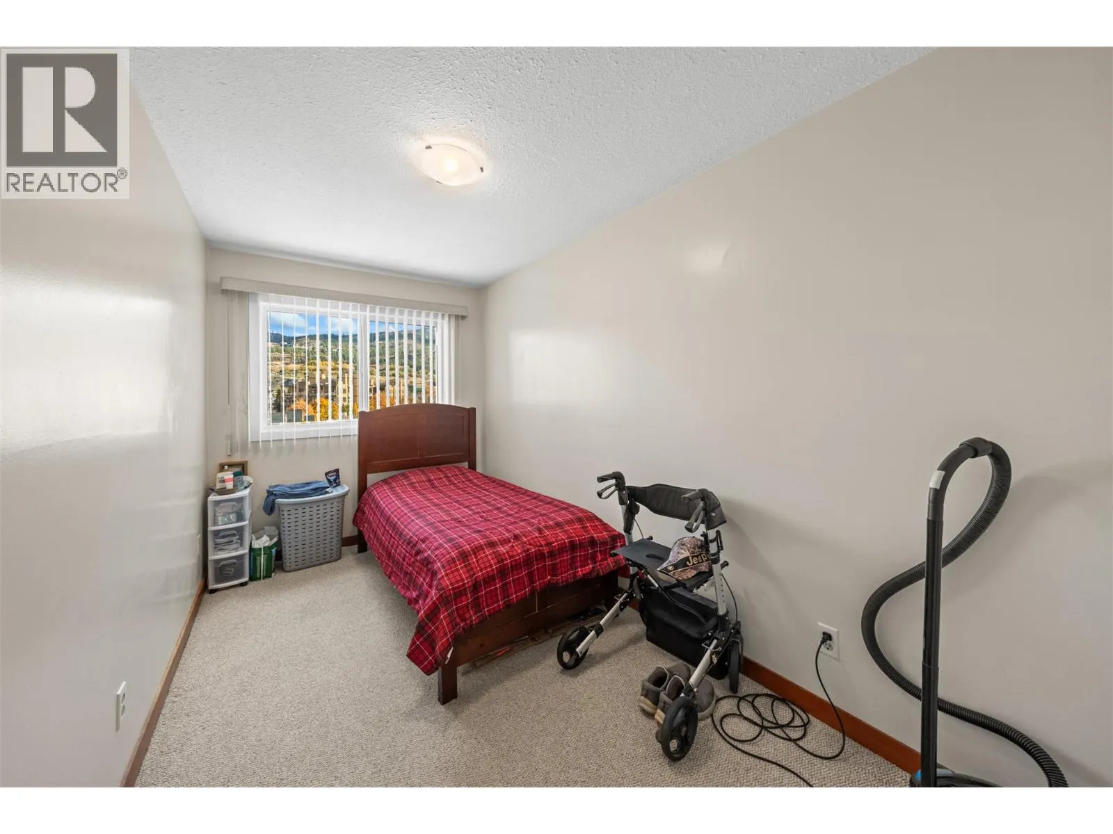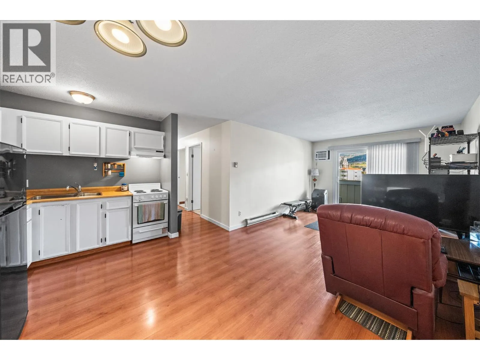 Top floor, 2 bedroom 1 bathroom apartment with a panoramic view, 4 min walk to Skaha beach/lake. Phenomenal location and perfect for those who like an active outdoor lifestyle, central to all Penticton offers. The home is perfectly configured with a storage room at the entry, large open concept living space and kitchen with large pantry and sliding glass door to the deck. At the other end of the unit there are 2 large bedrooms and a spacious full bathroom. The home has panoramic mountain as well as park views from the balcony and both bedrooms. The building is well maintained, has low strata fees $424.70, and offers secure entry, spacious parking lot, and convenient onsite laundry. Lots to do without the need for a car being located adjacent to Pentictonâs best outdoor amenities. Soft sand beaches, mature trees, volleyball & tennis courts, intertwined with paved lakefront walking paths all set the stage for your next chapter. New windows slated for the spring, no age restriction. Perfect for anyone in the market for a well priced, premium located, top floor, turn key apartment. (id:27476)