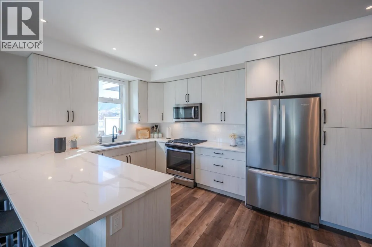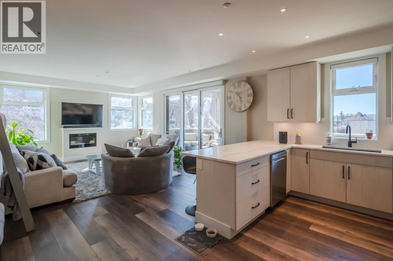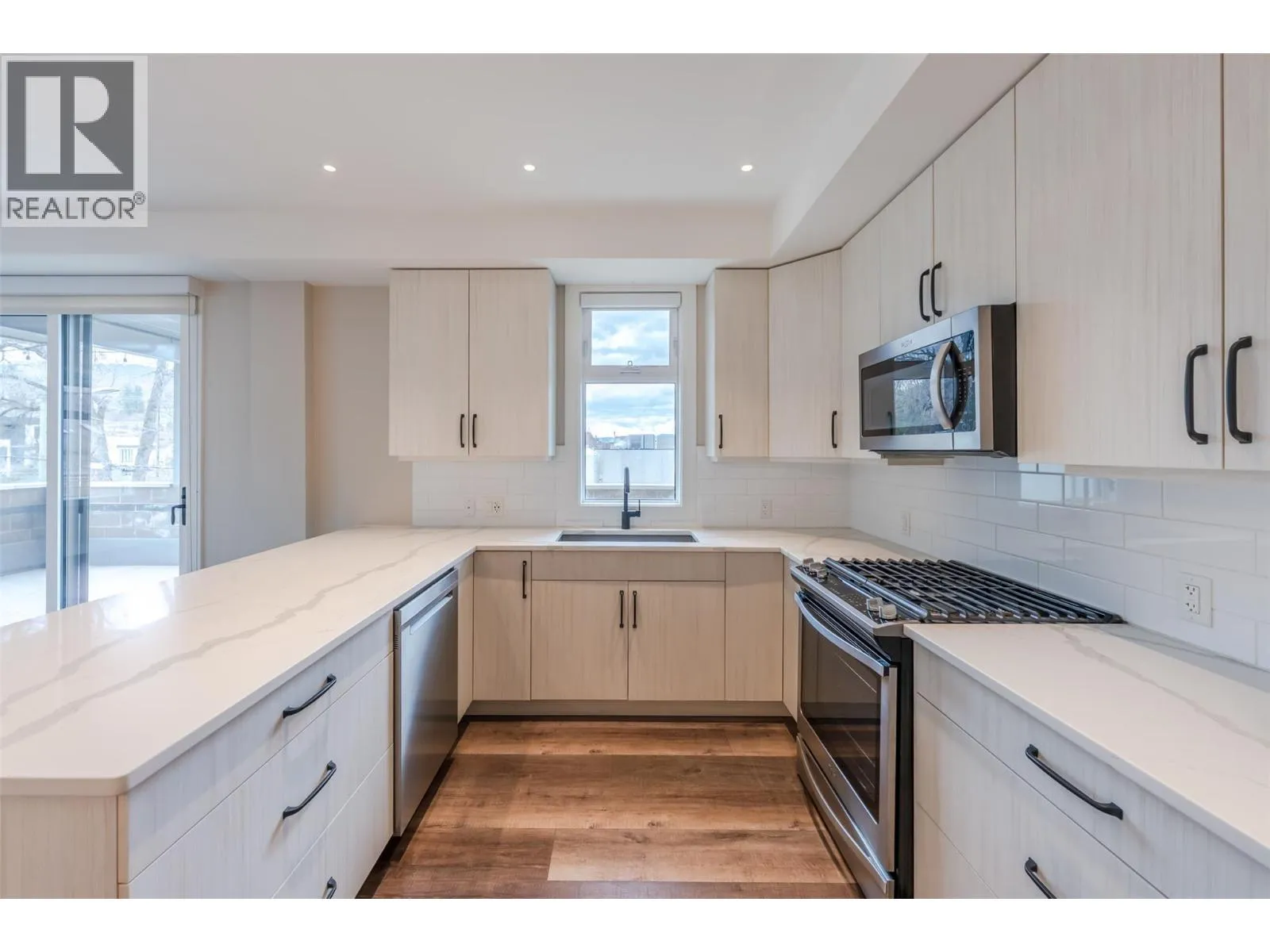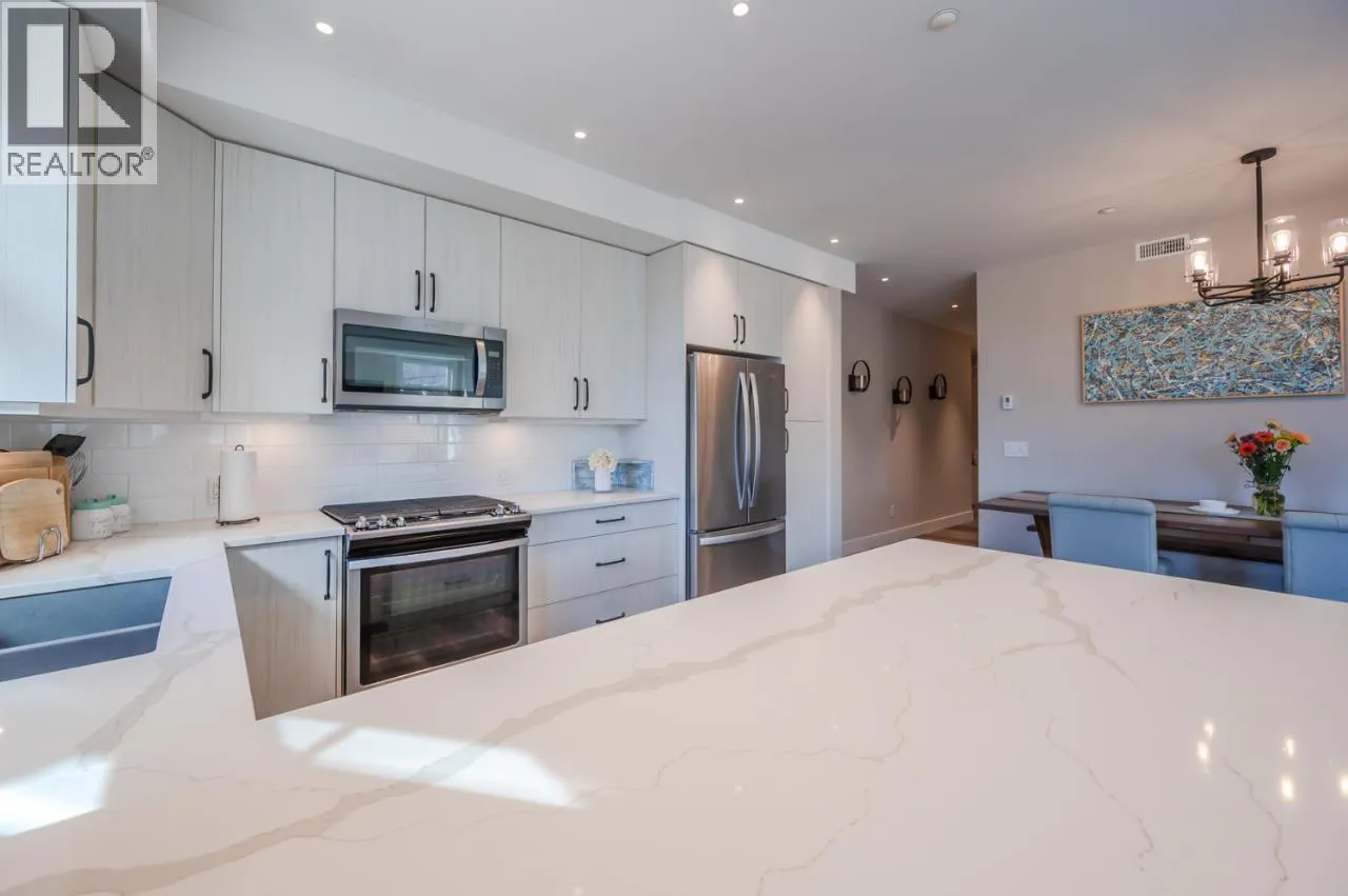 QUICK POSSESSION AVAILABLE!! Welcome to elevated downtown living!! The bright and beautifully positioned corner two-bedroom, two-bathroom home in one of Pentictonâs most desirable modern residences. Bathed in natural light from its south-east exposure, this thoughtfully designed suite offers a warm, inviting atmosphere from the moment you step inside. Perfectly located in the heart of the city, youâre just steps from Okanagan Lake, sandy beaches, the farmers market, and an incredible selection of local cafes and restaurants. The open-concept layout is ideal for both everyday living and entertaining, featuring a stylish kitchen with quartz countertops, stainless steel appliances, and a gas range that anchors the space. Enjoy your morning coffee or evening unwind on the private balcony complete with a natural gas BBQ hookup. With secure entry, low-maintenance living, and pet and rental flexibility (with restrictions), this home is perfectly suited for full-time living, a lock-and-leave lifestyle, or investment. Opportunities like this corner unit donât come up often, experience the best of Penticton living today. (id:27476)
