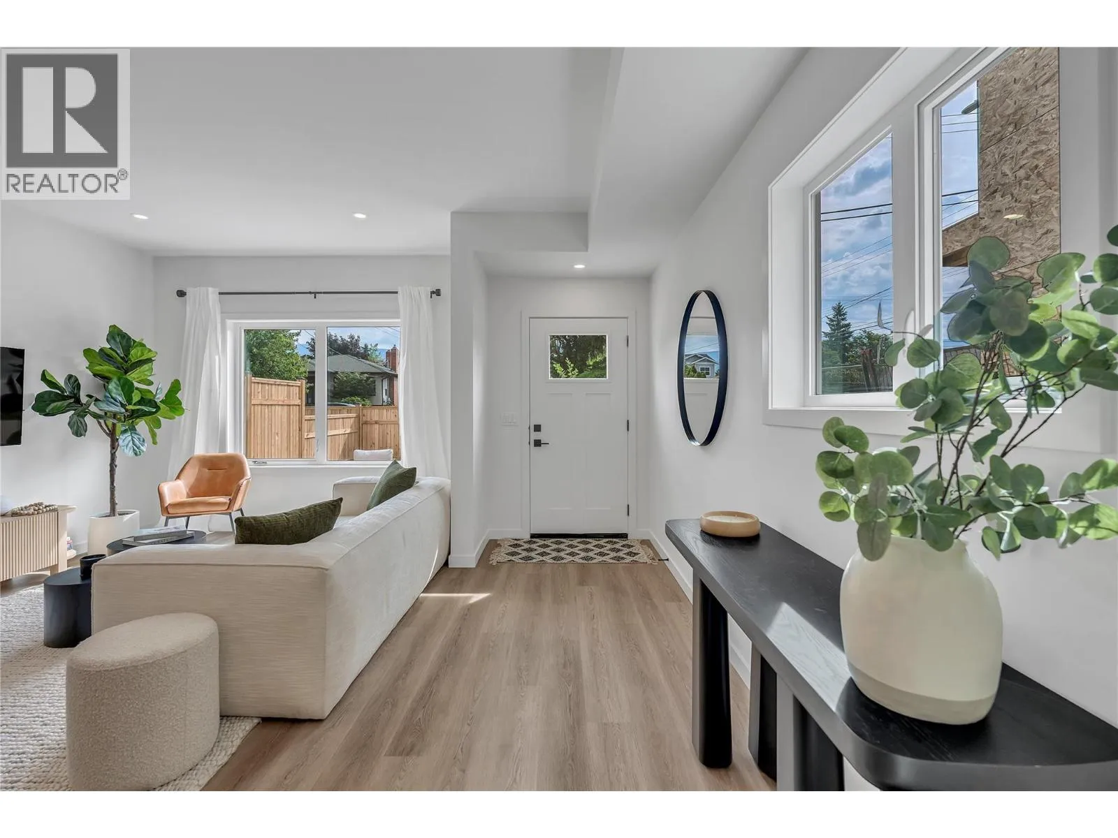 Only 1 Unit Remaining â Qualified First-Time Homebuyers Pay No GST! Thoughtfully developed by Parallel 50âone of the South Okanaganâs most trusted design-build firmsâthis project reflects a proven track record of craftsmanship and attention to detail. Each 1,439 sq. ft. home in the fourplex features a smart, functional layout with three bedrooms, two and a half bathrooms, and yard and patio space. Located in a walkable, bike-friendly neighborhood, you're just minutes from downtown Penticton and Okanagan Lake. Interior highlights include durable, stylish luxury vinyl plank flooring, quartz countertops, a full-height quartz backsplash, and a designer kitchen that rivals those found in single-family homes. Notable features at this price point include a walk-in closet and ensuite in the primary bedroom, as well as a unique, dedicated area with its own separate entranceâcomplete with laundry, storage, and a third bathroom. Built to Zero Carbon Code standards, these homes are solar- and EV-ready and meet BC Step Code 4, exceeding current energy-efficiency requirements. With affordable strata fees and a low-maintenance exterior, this is a rare opportunity to own a modern, efficient home in a prime location. Donât miss the opportunity to be part of this successful, well-established projectâbacked by a community of happy and satisfied homeowners. (id:27476)