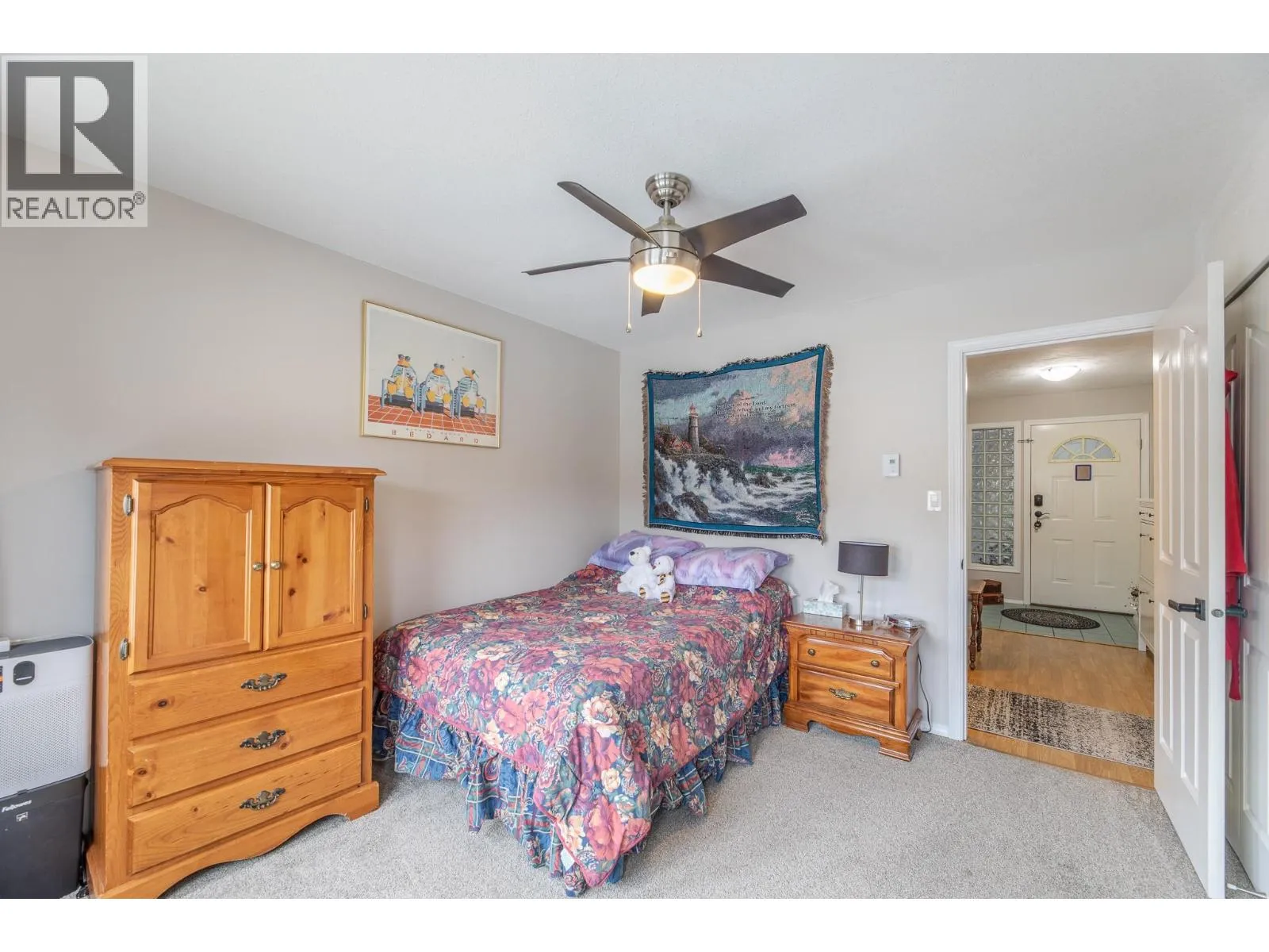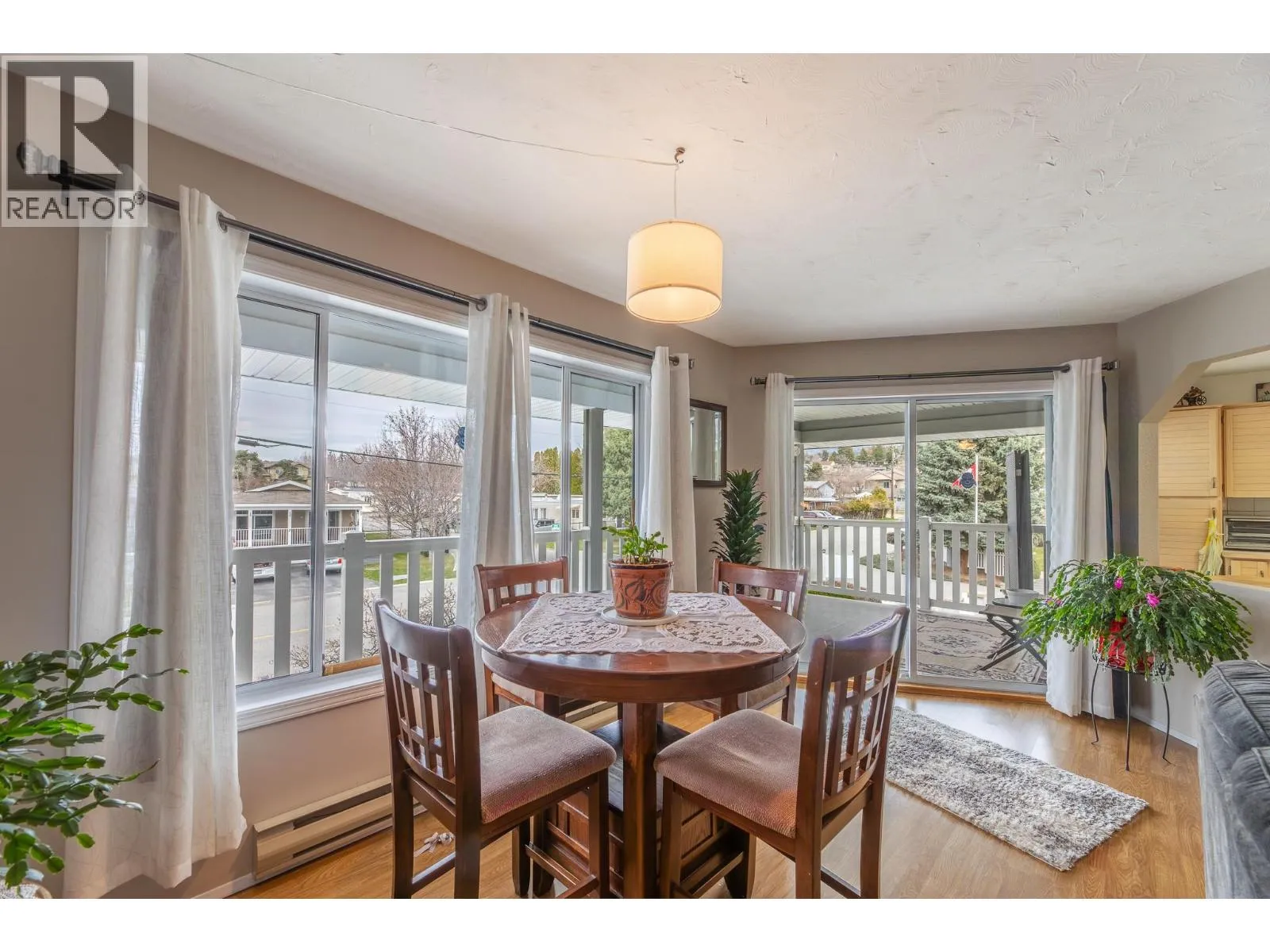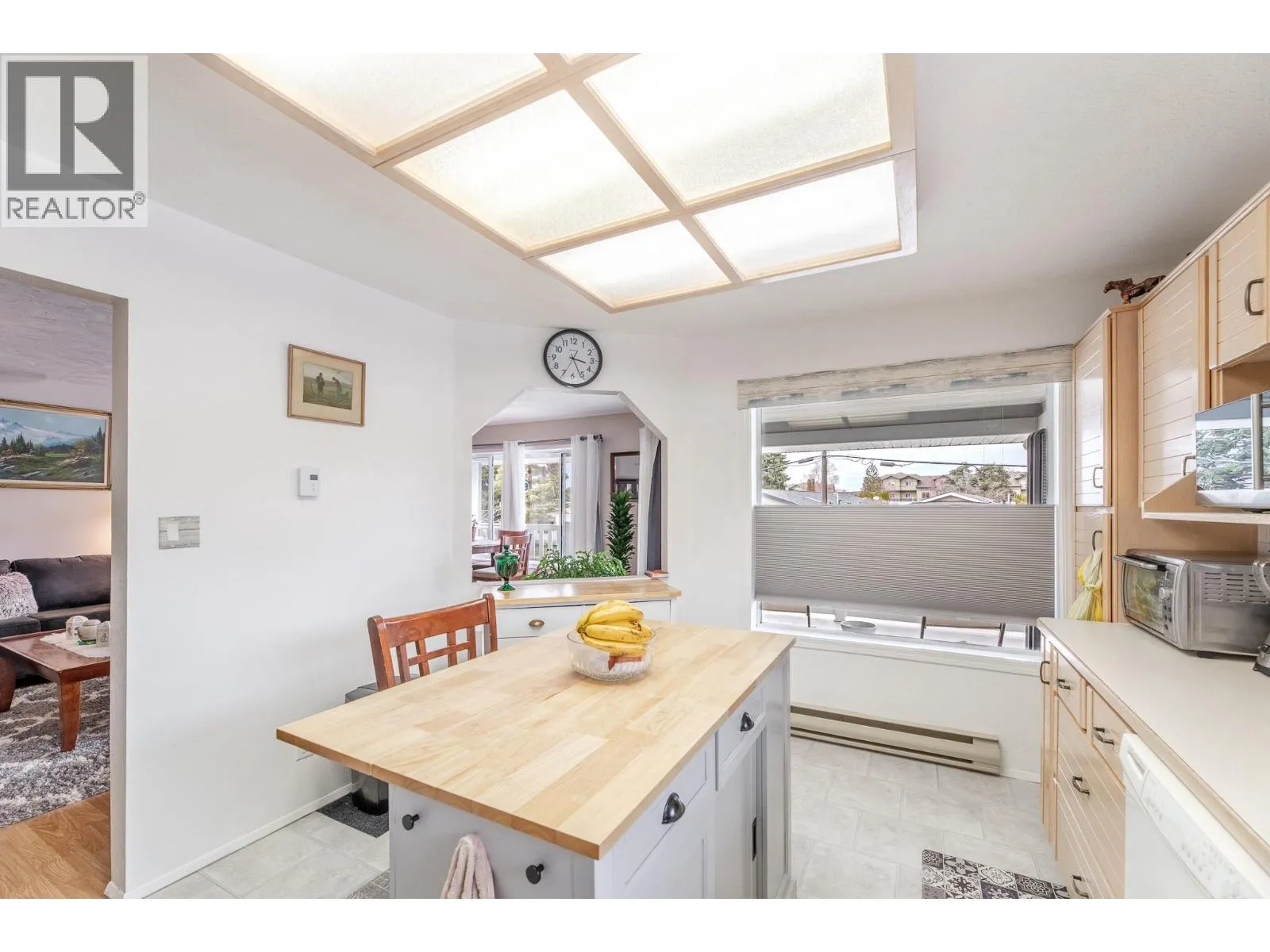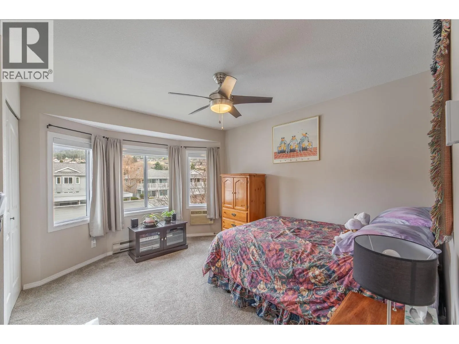 Spacious second-storey unit offering 2 bedrooms and 2 bathrooms, featuring an open and inviting living space. The kitchen is filled with natural light and features a convenient island, along with a charming bay window over the sink that frames beautiful mountain views. Step outside to a covered deck, ideal for relaxing or entertaining. This well-positioned home offers the rare benefit of no shared walls, providing added privacy. Blossom Court is well-maintained strata complex that boasts beautifully manicured grounds, all set on a peaceful, low-traffic street. Conveniently located just minutes from Skaha Lake Park and with easy access to nearby shopping and amenities. Additional features include a covered parking space with a storage unit near by. This is a 55+ community, pet-free, offering a quiet and peaceful lifestyle! (id:27476)