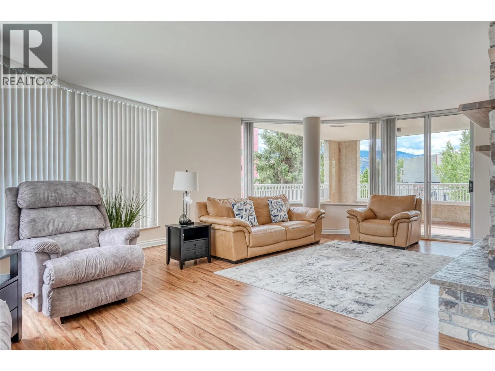 This extensively renovated 1,744-square-foot condominium offers an exceptional opportunity to enjoy luxury living in one of Pentictonâs most sought-after buildings. The spacious interior is complemented by a beautifully updated kitchen, featuring high-end Miele appliances, including a gas range, beverage fridge, and quartz countertops. Renovations extend to the bathrooms, and the family room showcases built-in millwork along with two fireplaces, providing both comfort and style. The residence offers three decks, allowing for views of Okanagan Lake and the surrounding mountains. The generously proportioned primary bedroom is connected to two of these decks, providing ideal spaces for enjoying both sunrise and sunset. The ensuite bathroom has been upgraded with a glass and tile walk-in shower, while the second bedroom offers versatility as either a guest room or an office. In addition to the elegant living spaces, this property includes two secure parking spots and a storage locker. Its prime location at 86 Lakeshore Drive, Unit 304, places it in close proximity to Okanagan Lake, Gyro Park, and the vibrant downtown area, which offers a range of shops, restaurants, and the local farmers' market. The building, reserved for residents aged 55 and over, maintains a pet-free and rental-free environment, contributing to its peaceful and well-established social atmosphere. (id:27476)