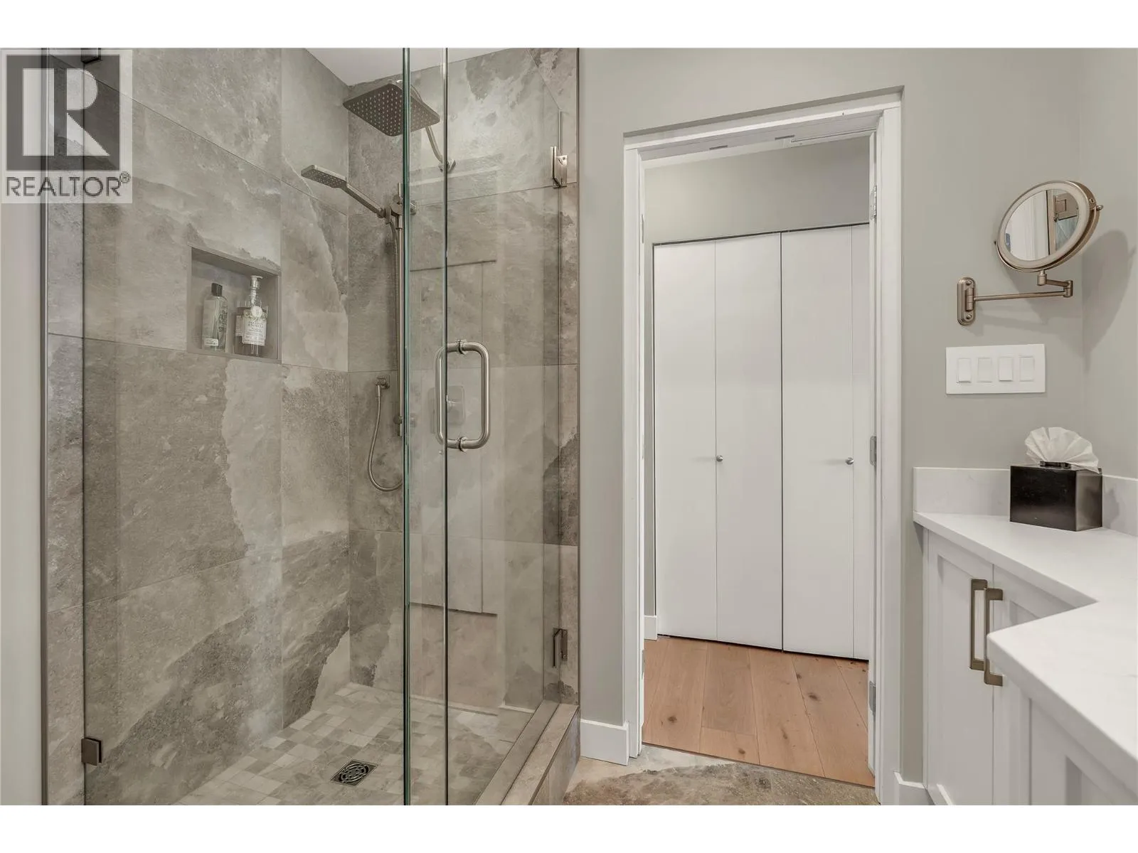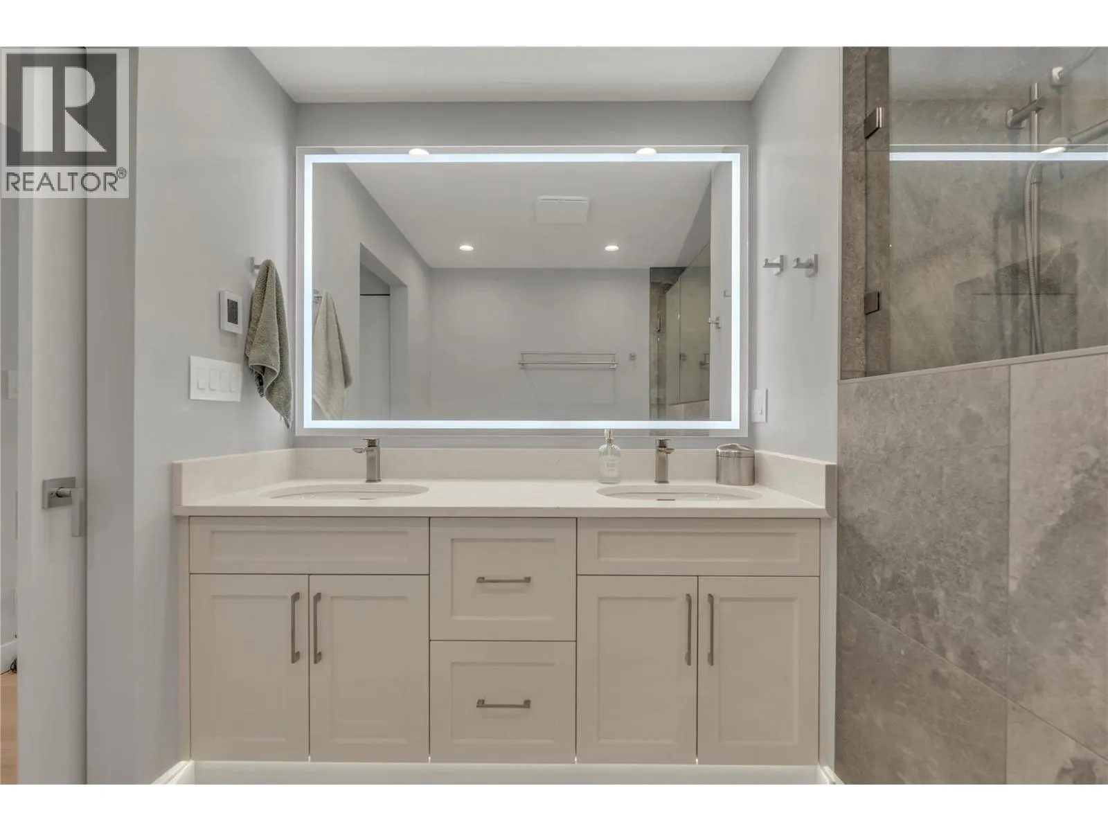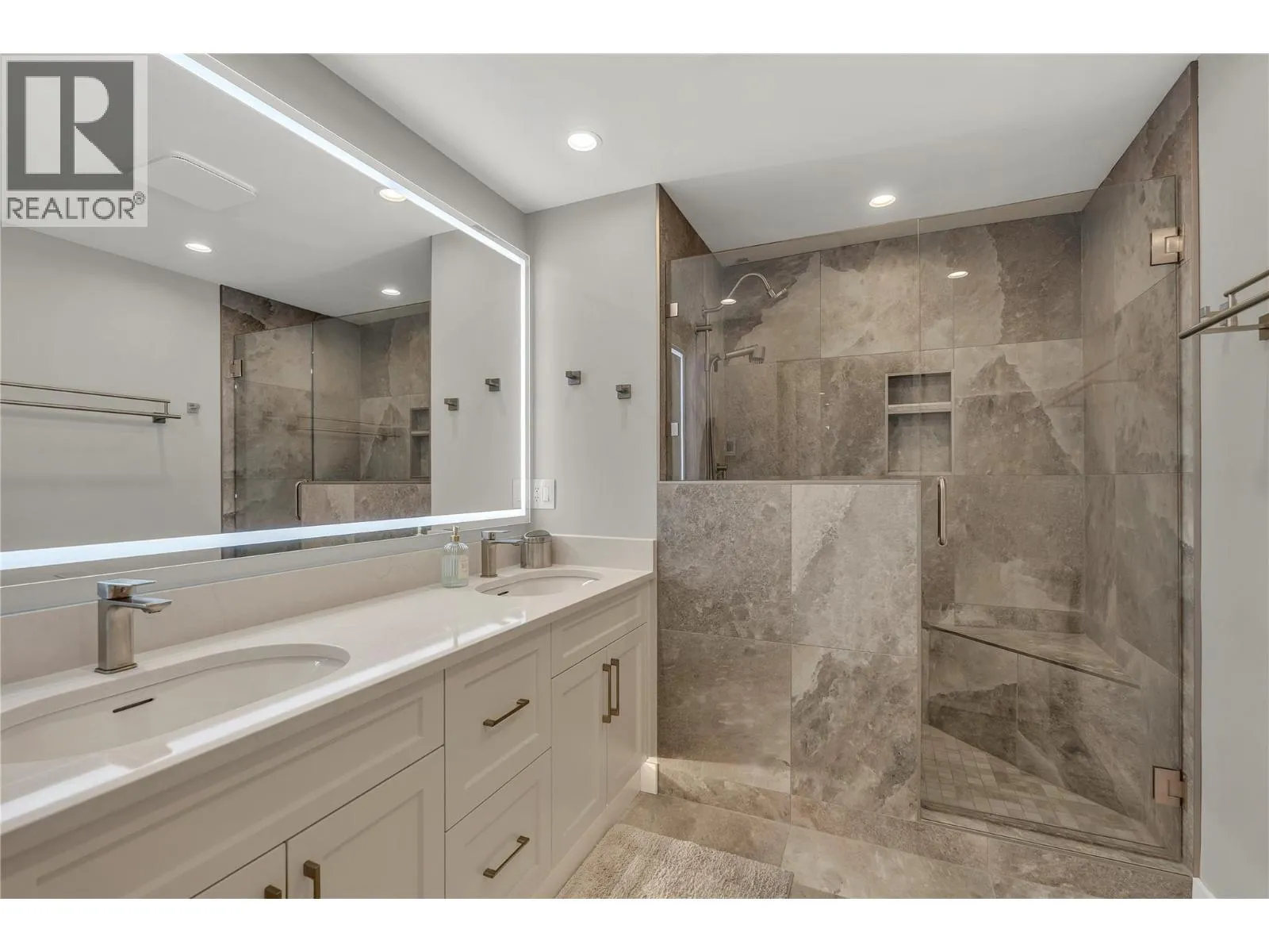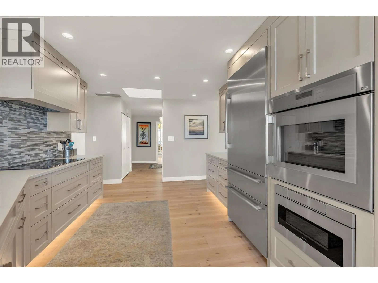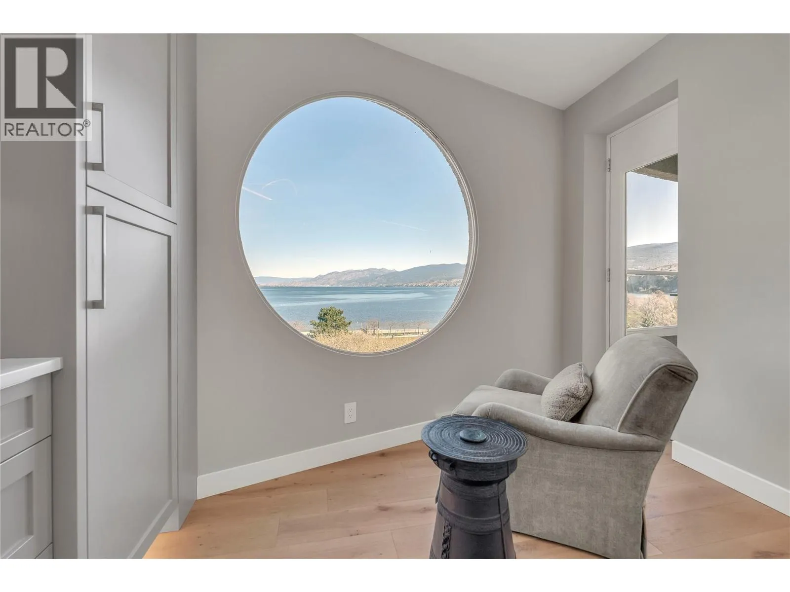 Perfectly positioned in one of Pentictonâs most sought after addresses, this gorgeous penthouse at 86 Lakeshore Drive delivers a truly rare offering, unobstructed, panoramic views spanning Okanagan Lake, the City of Penticton, and the surrounding mountains from every window. With over 1,200 sq.ft. of wraparound deck, this is a front row seat to the Okanagan lifestyle. Beautifully updated throughout, this home showcases a stunning custom kitchen with quartz countertops, premium stainless appliances, and seamless flow to a sunlit nook with direct access to the lakeview deck. New flooring carries throughout into an expansive living space anchored by a gas fireplace, bar with wine and beverage fridges, and walls of glass framing breathtaking views in every direction. The layout is both functional and refined, offering a den/office, sunroom, an impressive primary retreat with walk-in closet, full ensuite, and direct deck access, plus a spacious second bedroom with its own ensuite and equally stunning views. Set directly across from the beach, park, and Okanagan lake, this exclusive 55+ residence includes two secure underground parking stalls and storage. This is more than a home, itâs penthouse living at its finest. (id:27476)