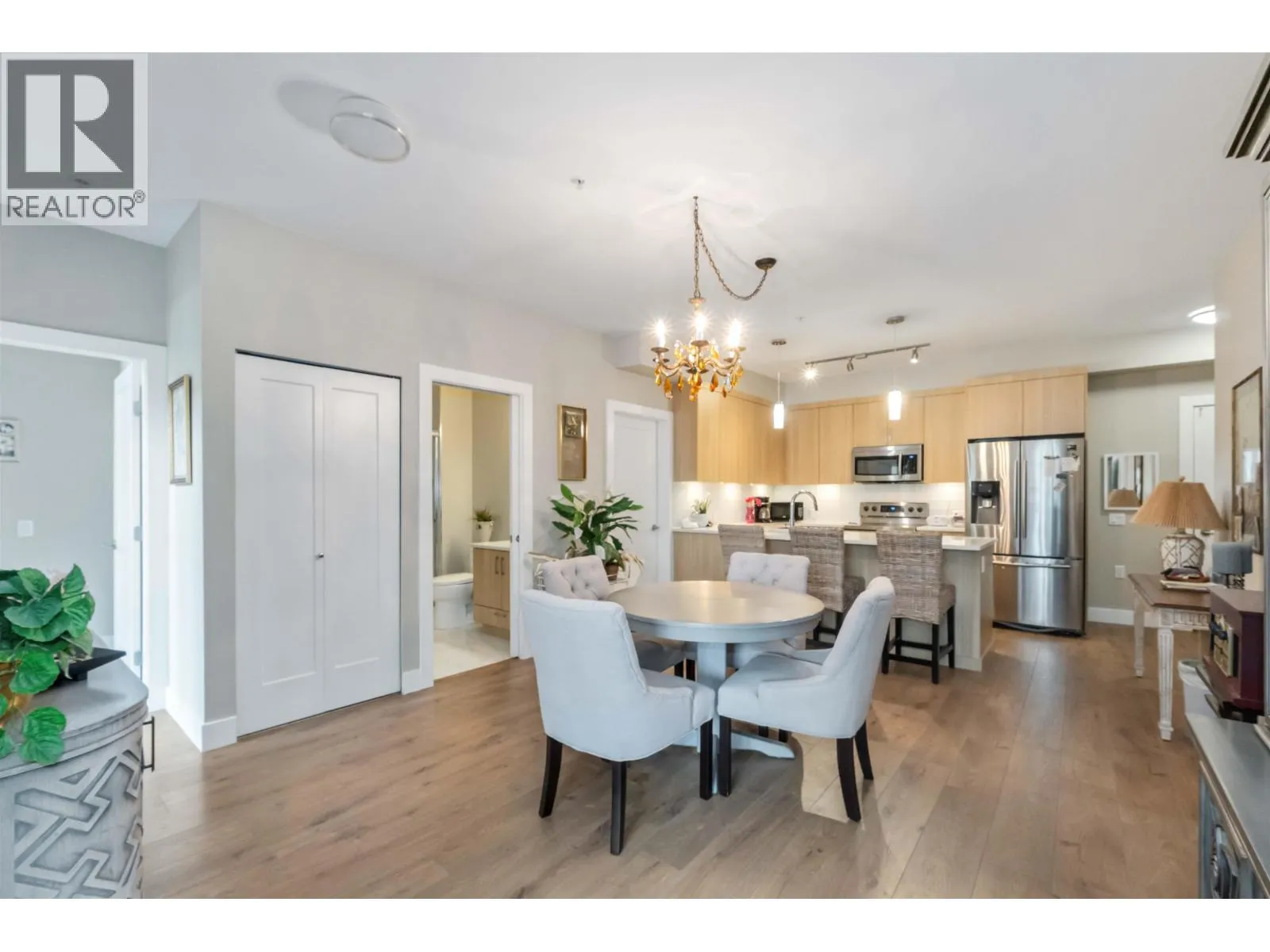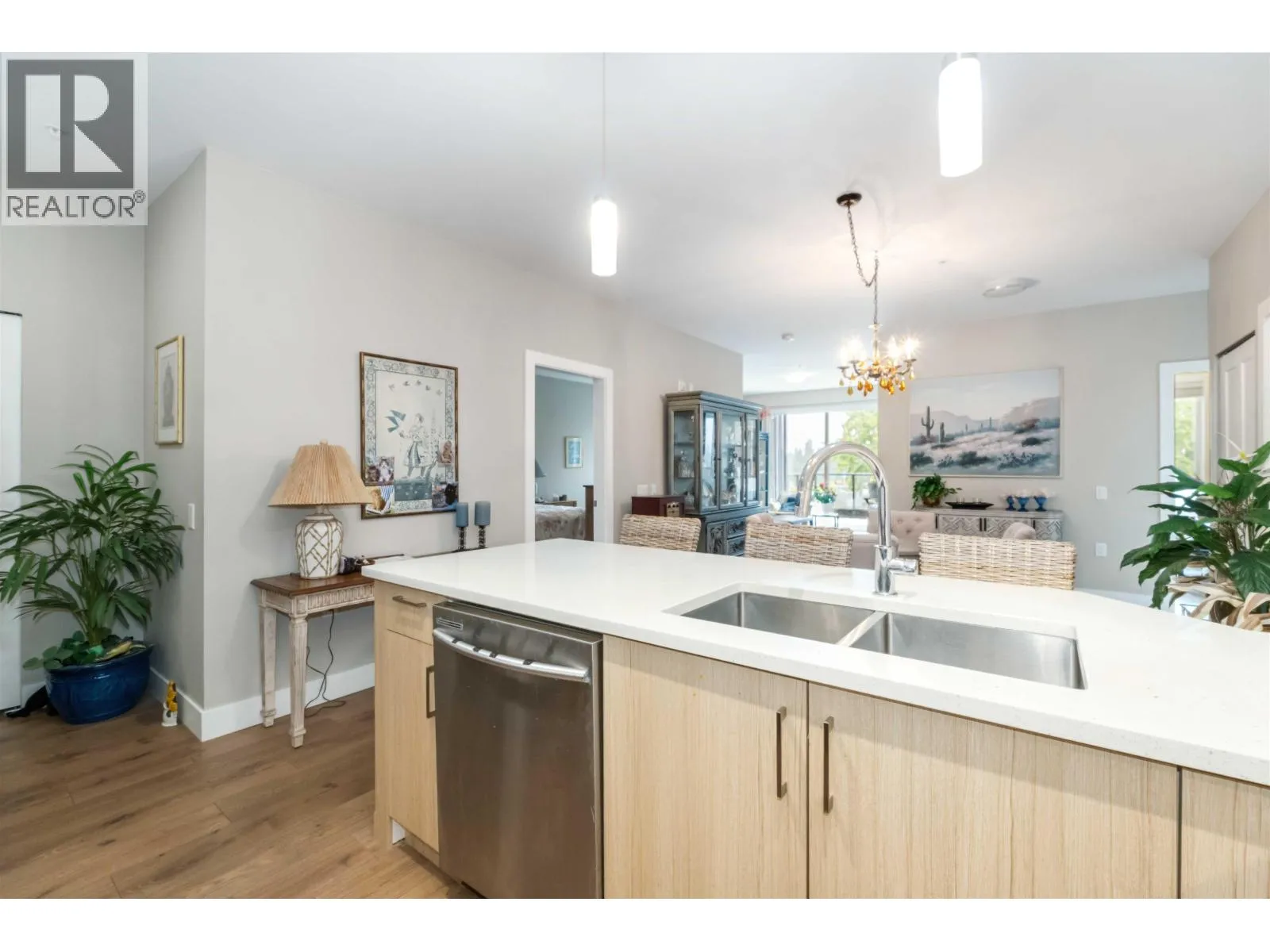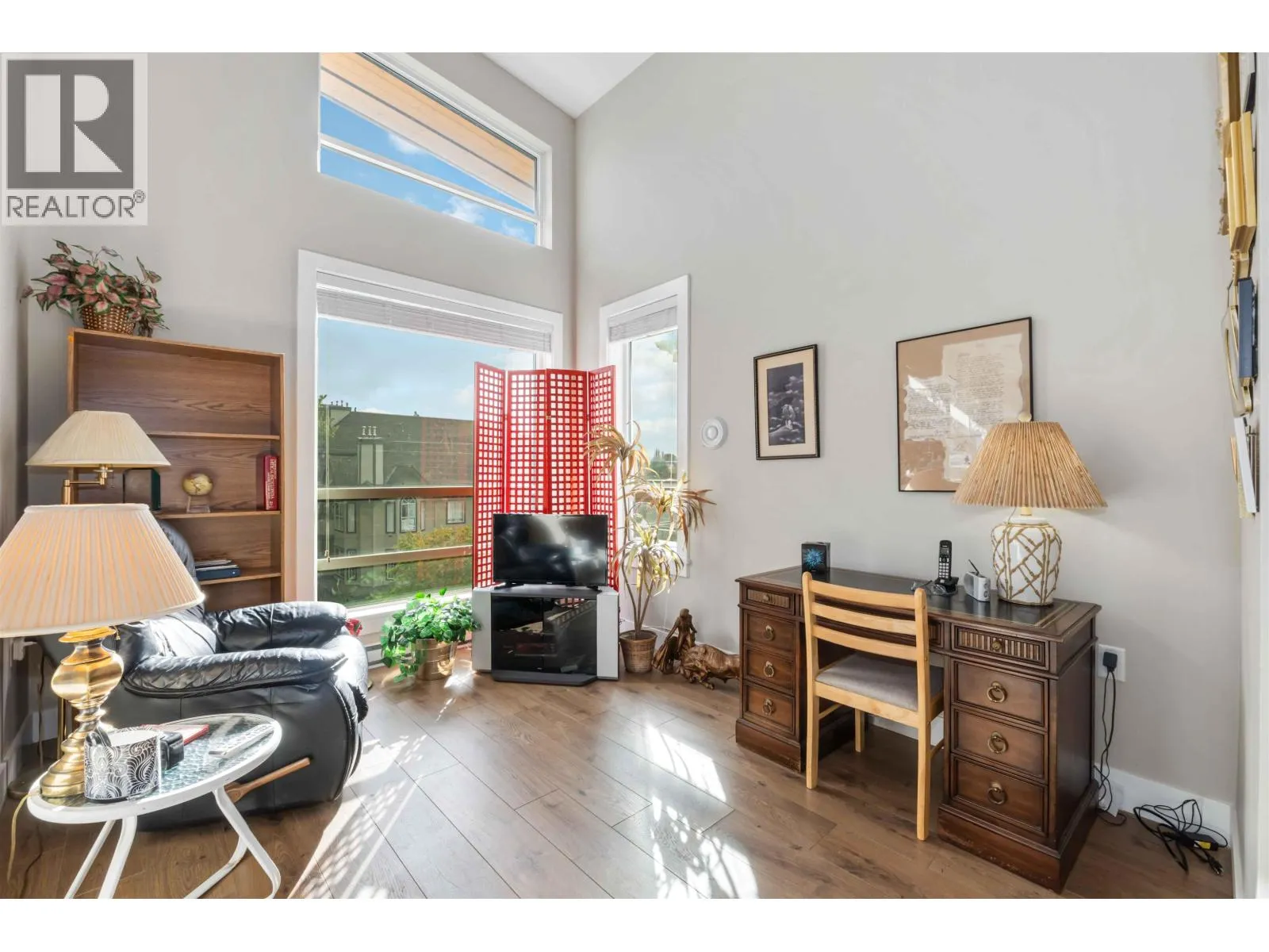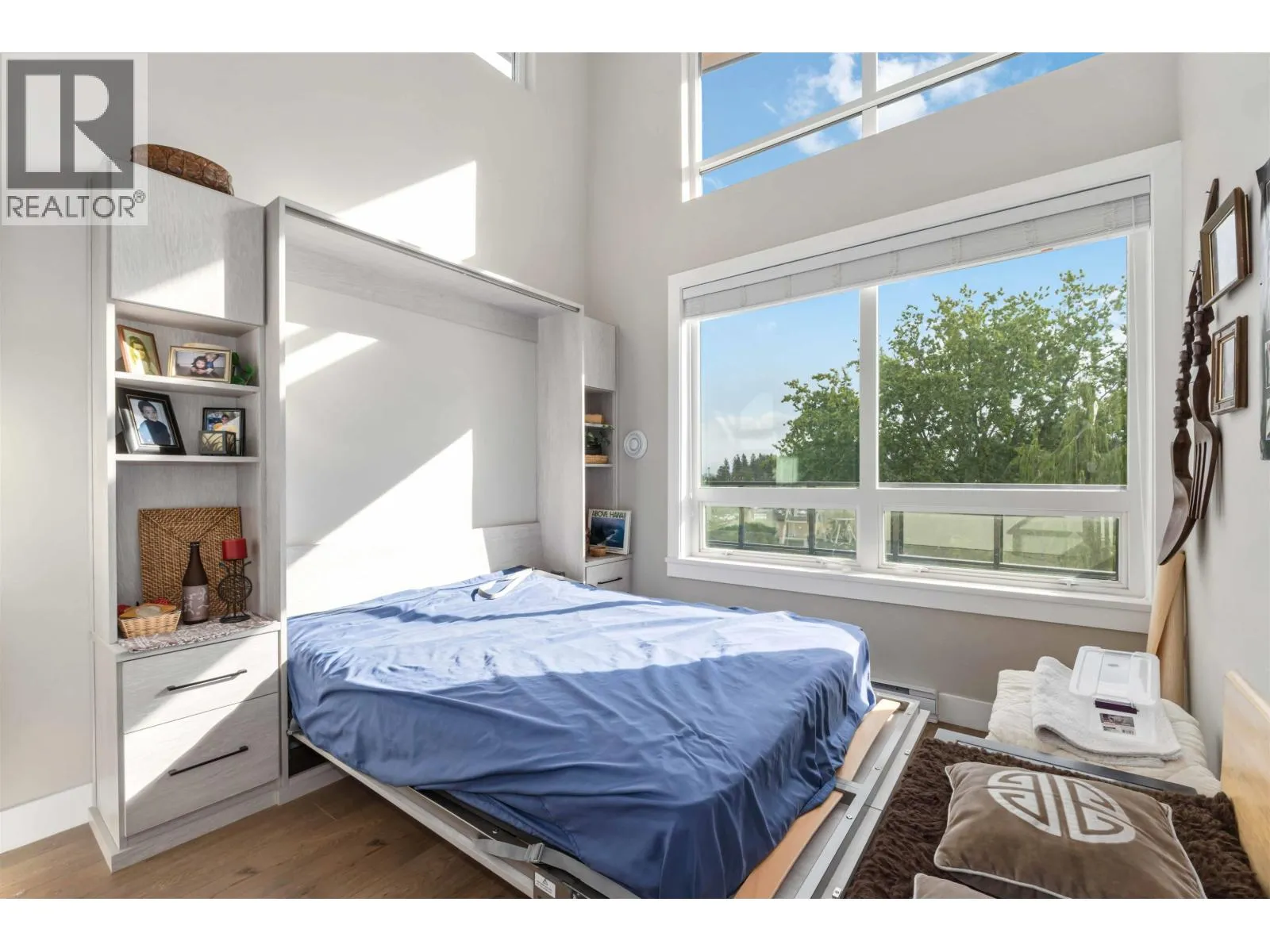 FANTASTIC PENTHOUSE WITH RARE 3 BEDROOMS PLUS FULL-SIZED DEN, approximately 1300 sqft, in Orion, a centrally located community steps to shops, dining, recreation, and the W/C Xpress! Beautifully laid-out unit offers living room with electric fireplace, formal dining area, and spacious kitchen with breakfast bar, ample counters + storage. Generous primary suite boasting full ensuite, walk-in closet, and cozy reading nook. Two bright spare bedrooms feature soaring ceilings, incl one with a murphy bed. Versatile den works as home office or loads of storage. Contemporary finishings include laminate floors, quartz counters, and stainless appliances. Huge deck with courtyard + rooftop views. 2 underground parking stalls. Penthouse living with all the must-haves in one place! (id:27476)