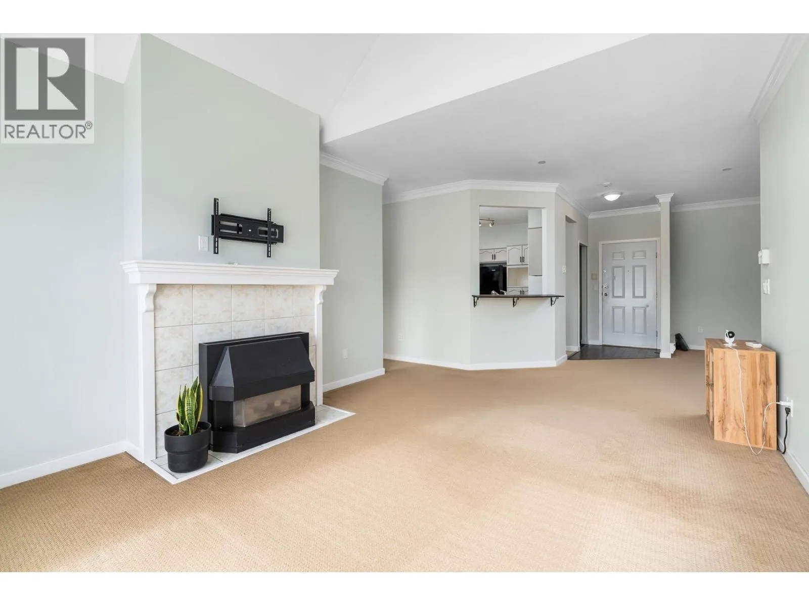Spacious,TOP FLOOR with 12FT Vaulted Ceilings condo unit with large windows facing South. Excellent floor plan with 2BR & 2 full Baths w/separate kitchen area and walk-in laundry room.It equipped w/built-in vacuum.Gas fire place is included in maintenance fee.Freshly painted, upgraded Brand new Hot Water Tank, Washer/Dryer/Dishwasher/Fridge.New sliding doors on both bathrooms tub. Locker is on the same level w/unit.1 Parking is included.Extra parking possible at $15/a month.Carwash station.Pets allowed:1 large Breed DOG,Or 2 CATS, or one of each.Well maintained building with exercise room, library, banquet room w/kitchen, bike room;car-wash station.Walk distance to schools, West Coast Express, amenities, groceries, shopping.5 minutes to the Pitt River & Golden Ears Bridges. (id:27476)
