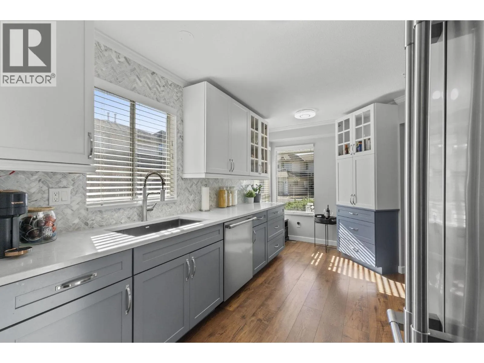 This beautifully updated end unit feels like a detached home! Featuring a spacious two-level floor plan with large rooms, 3 bdrms & 2.5 stylishly updated bathrooms. Enjoy an abundance of natural light from extra windows, a cozy gas fireplace & the comfort of forced air heating. The renovated kitchen shines with new cabinets, countertops, backsplash & appliances. Additional upgrades include fresh paint, vinyl plank flooring, heated bathroom floors, organized closets, new blinds, an updated laundry set with sink & more. Step through french doors to your extended patio-perfect for entertaining. Complete with a large 2 car garage & ideally located in central Pitt Meadows, just a short walk to the West Coast Express, schools & parks. A rare opportunity in a highly sought-after community! (id:27476)