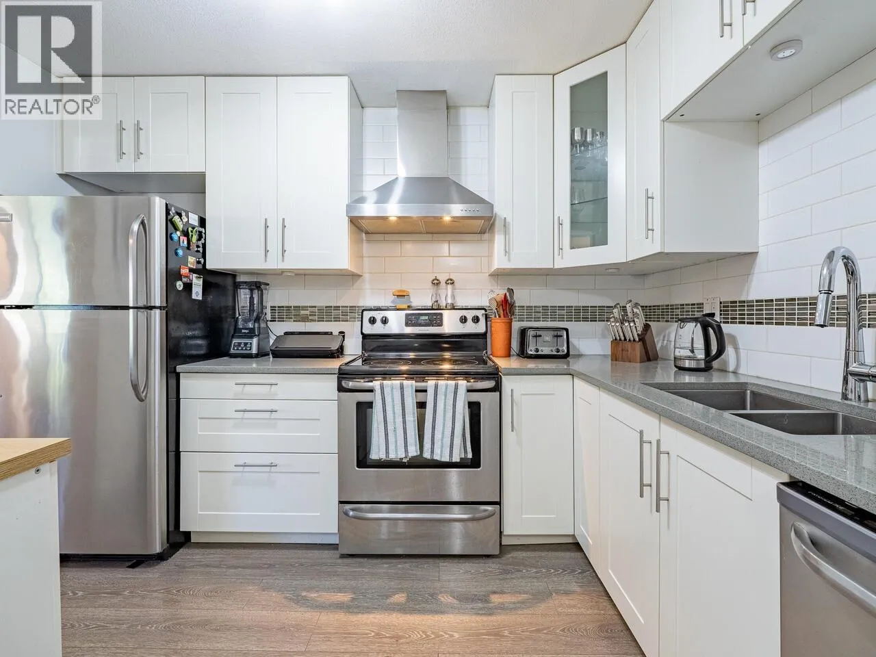 UNBELIEVABLE value! BEST priced two bedroom, two full bathroom HOME that anyone can live at in all of Pitt Meadows and has one of the RAREST perks one never sees in that it is a true corner unit with NO NEIGHBOUR adjoining walls and is one not to be MISSED! Two exterior and two exit halls for neighbours! GORGEOUS renovations throughout including all cabinets, stone kitchen counters, S/S appliances, STUNNING flooring, AWESOME blinds and a list that goes on and on! Some other AMAZING features like TONS of windows for light, a REAL laundry room and TWO parking stalls are just a few more GOLDEN extra's! This BOUTIQUE complex on a good sized amount of land for future value is central and close to everything! Two pets allowed with no dog size restrictions! Easy to show! (id:27476)