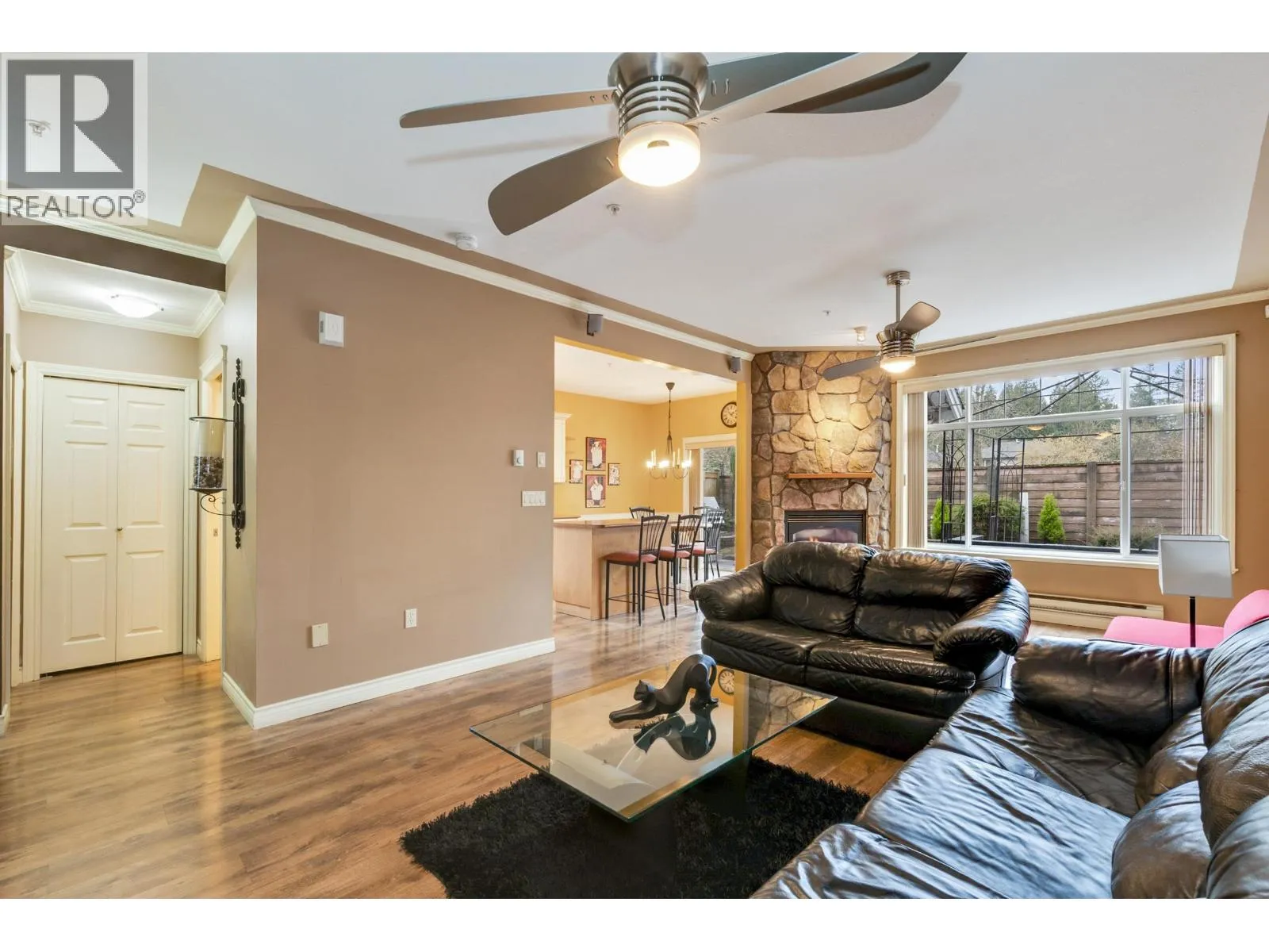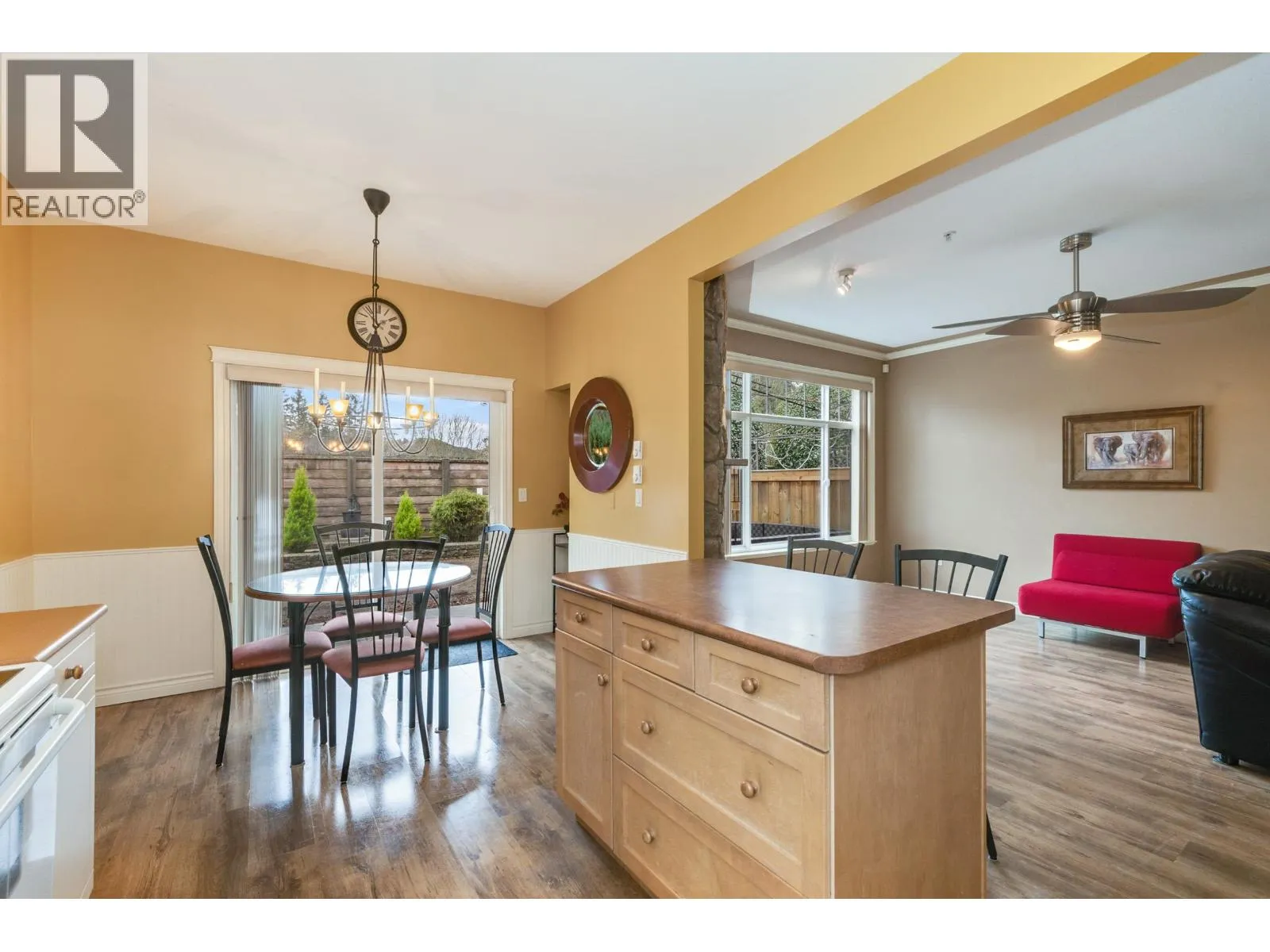 Level entry 3 BEDROOMS 3 BATHROOMS duplex-style townhouse in sought after Country Crossing! Family and pet friendly complex located on the North side of the train tracks. Large main floor with 9' CEILINGS, half BATHROOM, OPEN CONCEPT living and dining room, cozy GAS FIREPLACE, kitchen with ISLAND & EAT-IN DINING area. Upper floor has 3 GENEROUS SIZED bedrooms, 2 FULL BATHROOMS and LAUNDRY ROOM. Large primary bedroom with WALK-IN CLOSET and ENSUITE bath. Fully fenced SW facing YARD with PATIO. Single car GARAGE. Additional parking stall available. PRIME WALKABLE LOCATION to shopping, restaurants, Highland Park Elementary and Rec centre. Easy access to Lougheed Hwy & Westcoast Express for commuters. 2 PETS. (id:27476)
