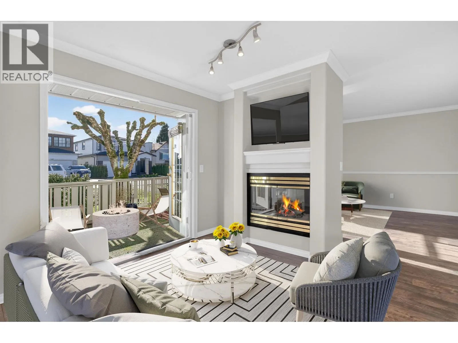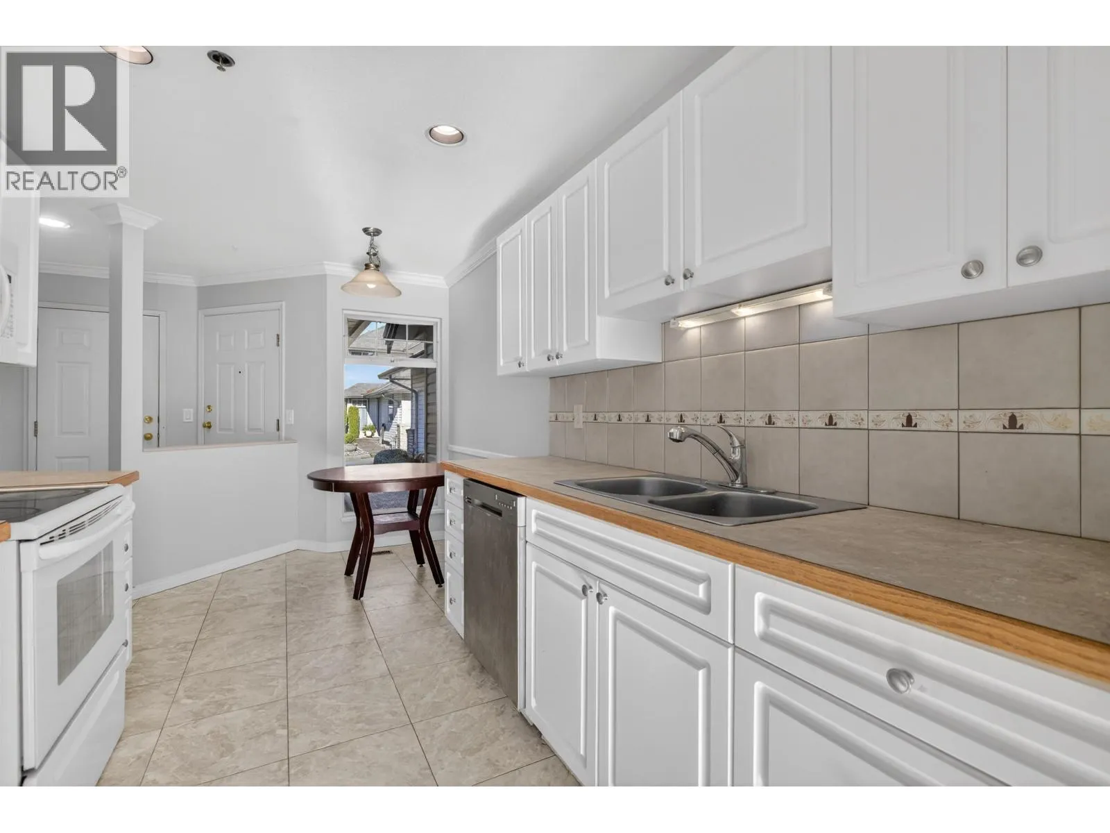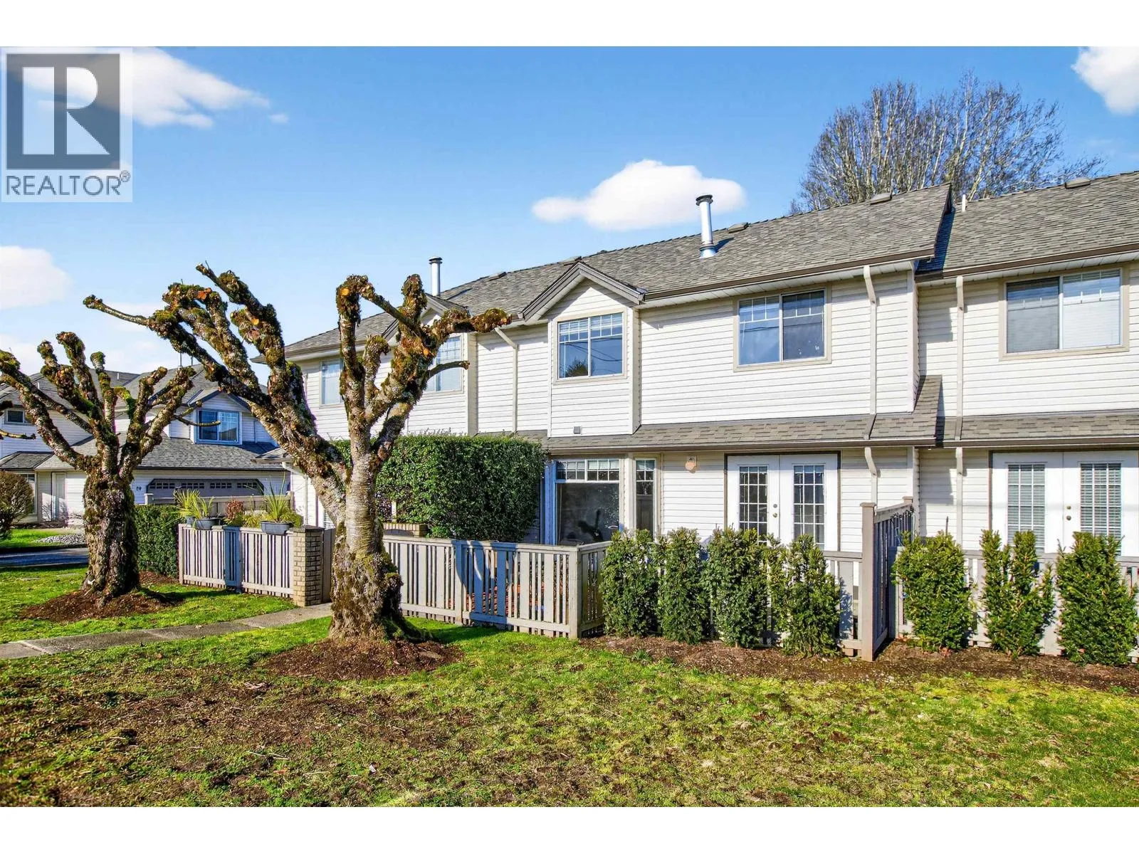 Deluxe 3 bedroom 3 bathroom townhouse located at the popular Park Meadows Estates, waking distance to K-12 schools, recreation center, parks, restaurants and West Coast Express. Well designed floor plan featuring a large kitchen with eating area, laminate counters, tiled backsplash and ample cabinet space. Adjacent living/dining area with double sided fireplace and family room with French doors leading to a massive south facing backyard/concrete patio ideal for entertaining with access to street parking. Upstairs you´ll find a convenient laundry room, spacious bedrooms including large primary bedroom with walk in closet and 4 piece ensuite. Freshly painted throughout with updated light fixtures, laminate and tile flooring on the main level, large windows, baseboards, crown mouldings and double car garage. Pet friendly complex with kids playground and recent updates that include roof, gutters, fencing and fascia/trim painting. (id:27476)