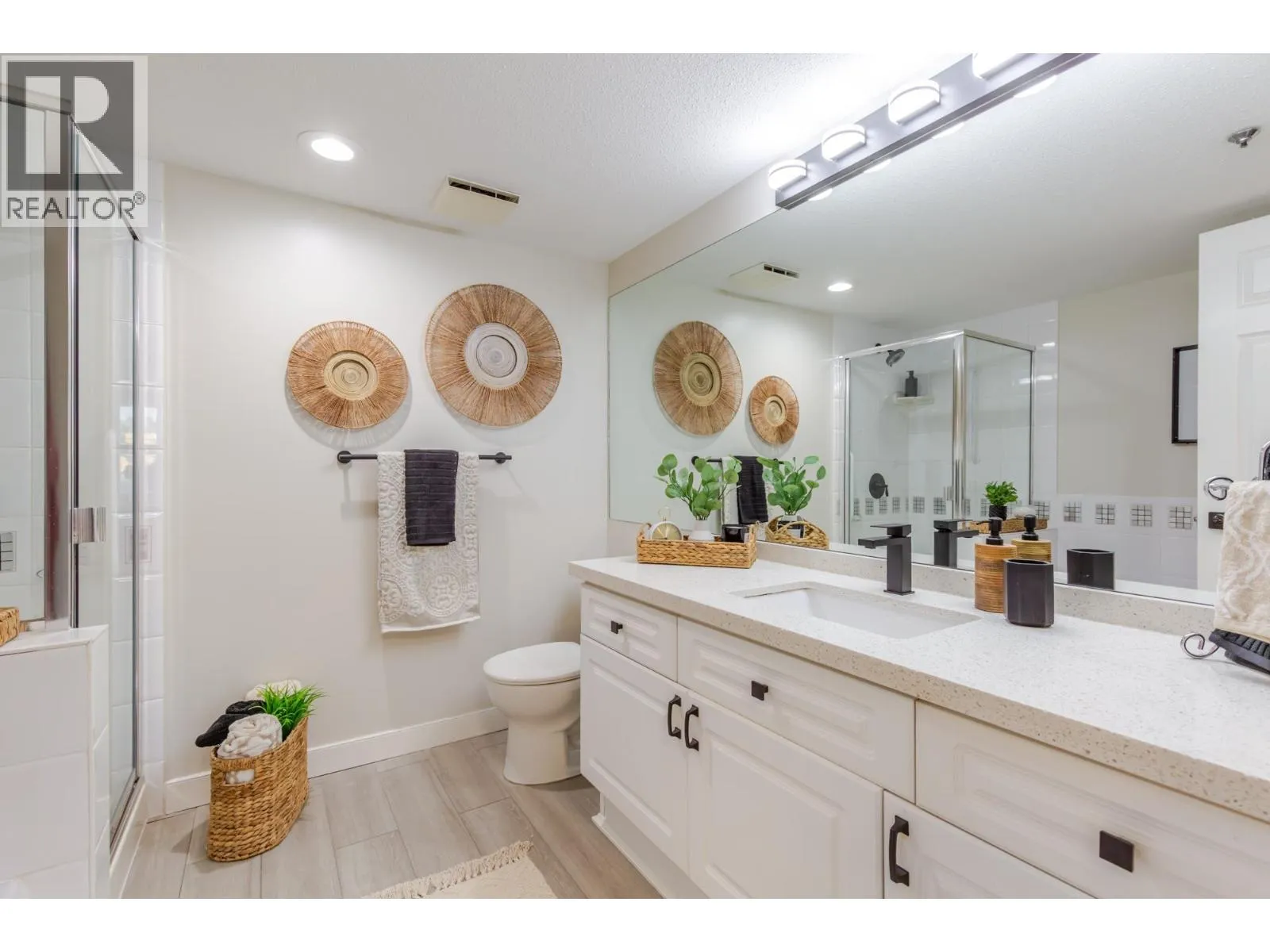 Welcome home to this STUNNING 2-bedroom, 2-bath home offering nearly 1,200 sq. ft. of bright, open living space overlooking a tranquil, park-like setting. Large windows offer tons of NATURAL LIGHT creating an airy, inviting feeling throughout. This move-in-ready unit features updated flooring, modern lighting, and fresh designer paint. The spacious kitchen boasts white shaker cabinets with sheet black hardware, quartz countertops, SS appliances and a chef´s prep sink. The living room offers a cozy gas fireplace, custom blinds, and access to a large covered east-facing patio, perfect for morning coffee. The generous primary bedroom includes a walk-through closet and a fresh 4-piece ensuite. Additional highlights include ample in-suite storage, a storage locker, and two side-by-side parking. (id:27476)