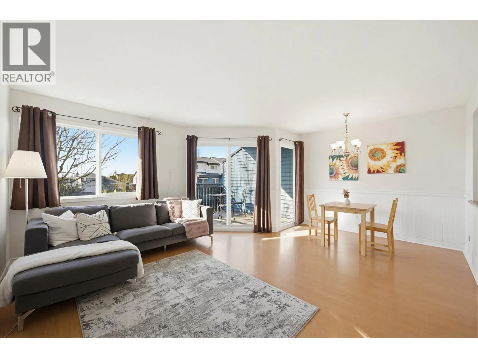 Meadow Estates~ move in confidently! Roof, windows, pex, siding, balconies & fencing are done in this great complex. This spacious 1568 square ft home is freshly painted, has a new H/W/T & is move in ready! Main flr offers a spacious primary suite with 2 pc ensuite, walk in closet & balcony with peek a boo mountain view. Living rm/dining area is open, has lots of windows making it nice & bright! Step out to the sun drenched upper balcony for your morning coffee. Kitchen offers loads of cabinetry & a "pass through" to dining area. Up has 2 well sized bdrms, & 5 pc main bath. Huge rec rm down that could be 4th bdrm & leads to massive patio & private yard. A/C is great for the hot summers. Shopping, schools, all amenities right outside your door & the west coast express is perfect for commuters. (id:27476)