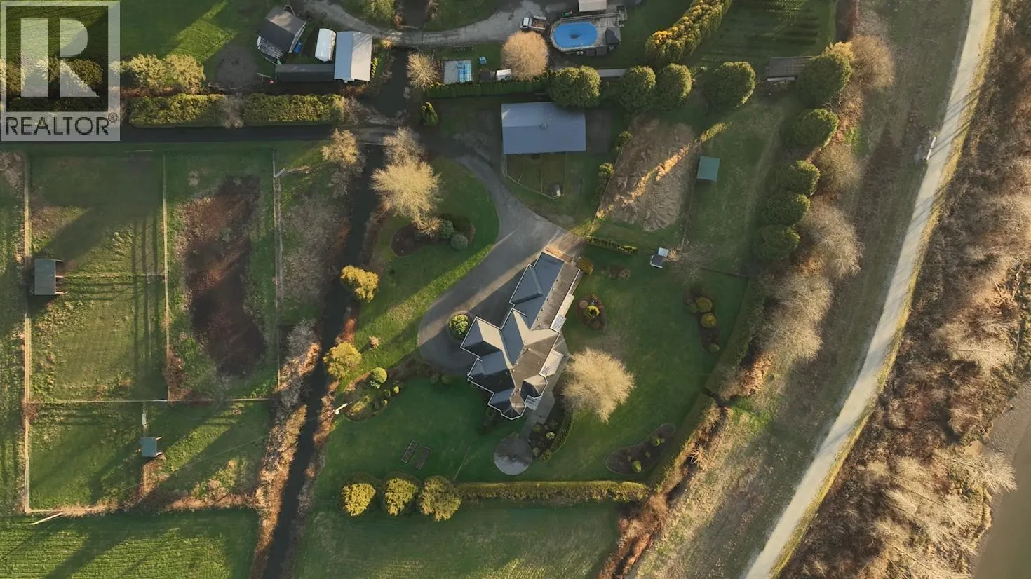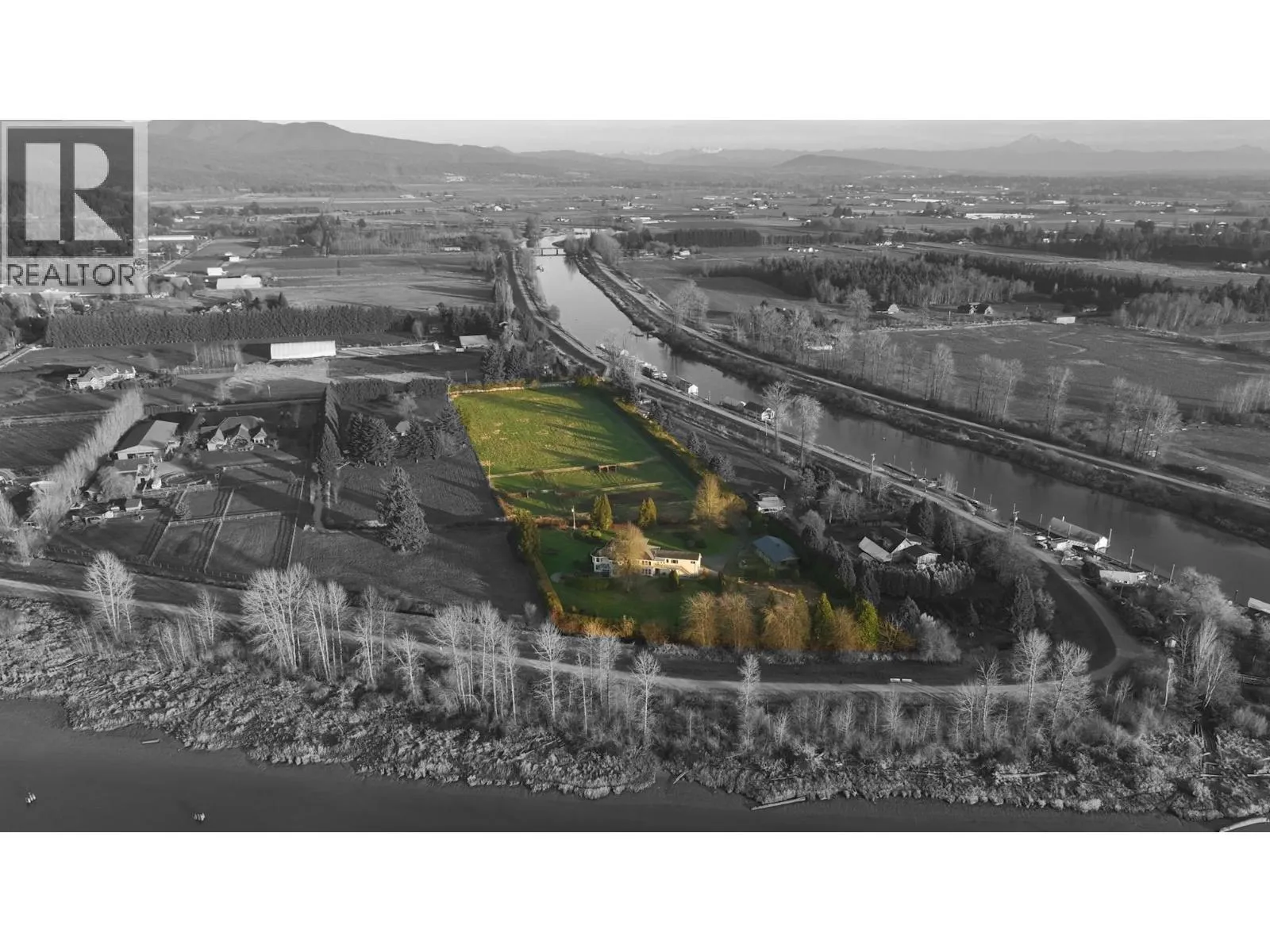 Trade hustle for harmony! Where else can you launch your boat, paddle the river, ride your horse, hike a trail & golf all in the same day? All of this is right outside your door with private access to the dyke as a bonus! Combine that with a stunning 5431 square ft home, 7.43 flat acres with majestic mountain & river views in the recently voted #3 most liveable city in Canada. Horse lovers will enjoy the 80 X 180 outdoor arena, 4 shelters, 6 grass paddocks & a barn which has a heated tack rm, & 3 stalls with turnouts. The primary bdrm is the perfect place to retreat with wrap around windows for the views & breathtaking sunsets. Includes 2 walk in closets, a fireplace & luxurious 5 pc ensuite. Separate 1 bdrm side suite above the garage with a patio. Amazing property with all amenities near! (id:27476)