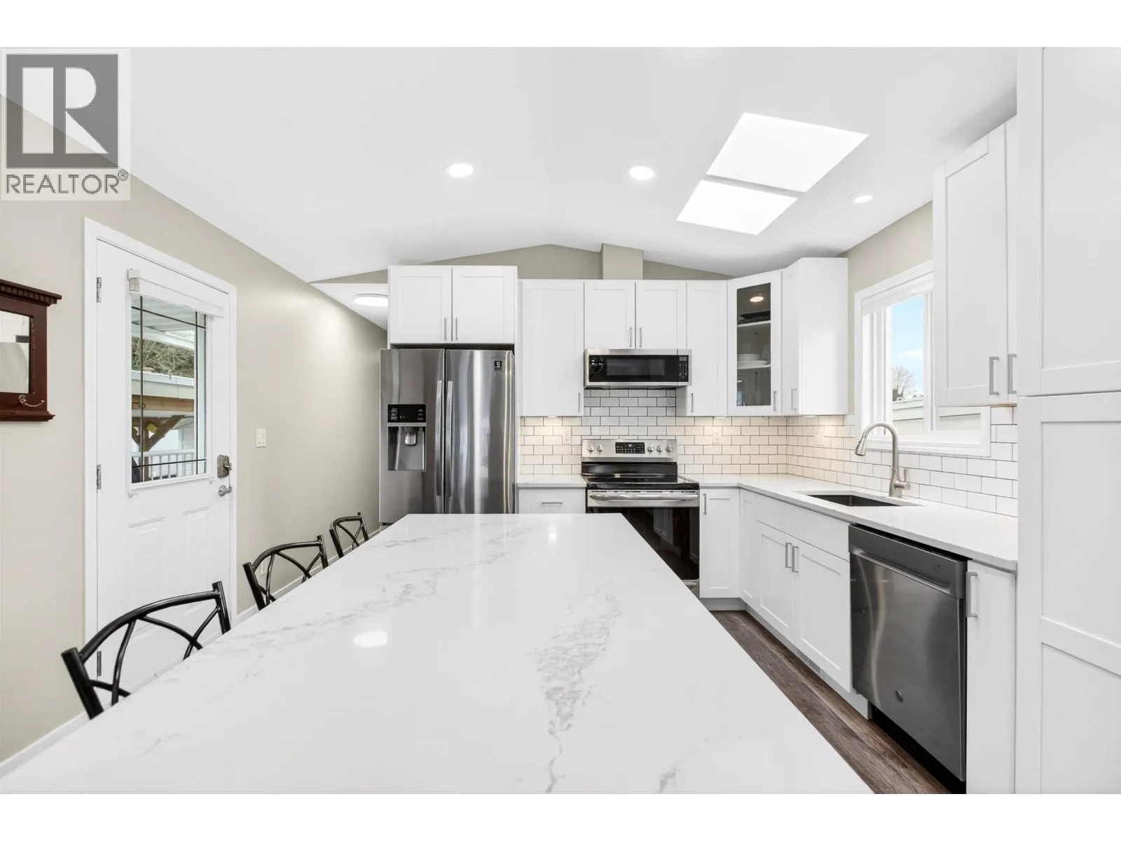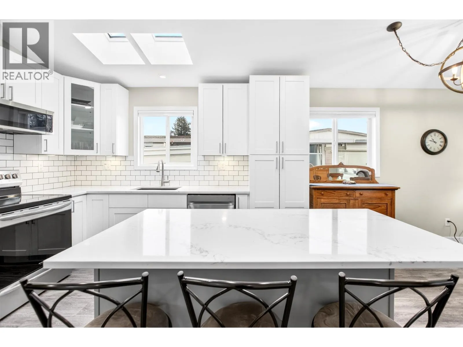 The CROWN JEWEL of MEADOW HIGHLANDS, one of the most sought-after mobile home communities in the Lower Mainland. Enjoy the security of co-op ownership w/reasonable monthly fees+equity in land! An incredibly RARE offering completely renovated inside/out over the past few years for total luxury so it lives brand new! Enjoy a dream kitchen w/modern cabinetry, stone counters & entertaining island, beautiful tile, premium apps + skylights. Vinyl planking throughout. SPA BATHS! Stunning soaker tub w/tile surround + seamless glass shower. Good bones- NEWER roof, gutter, privacy shades, furnace, A/C, tankless H/W - no expense spared. Huge covered patio w/2 gas lines, timber framed carport + large driveway, 2 storage sheds w/power & low maintenance turfed yard! A COMPLETE PACKAGE (id:27476)
