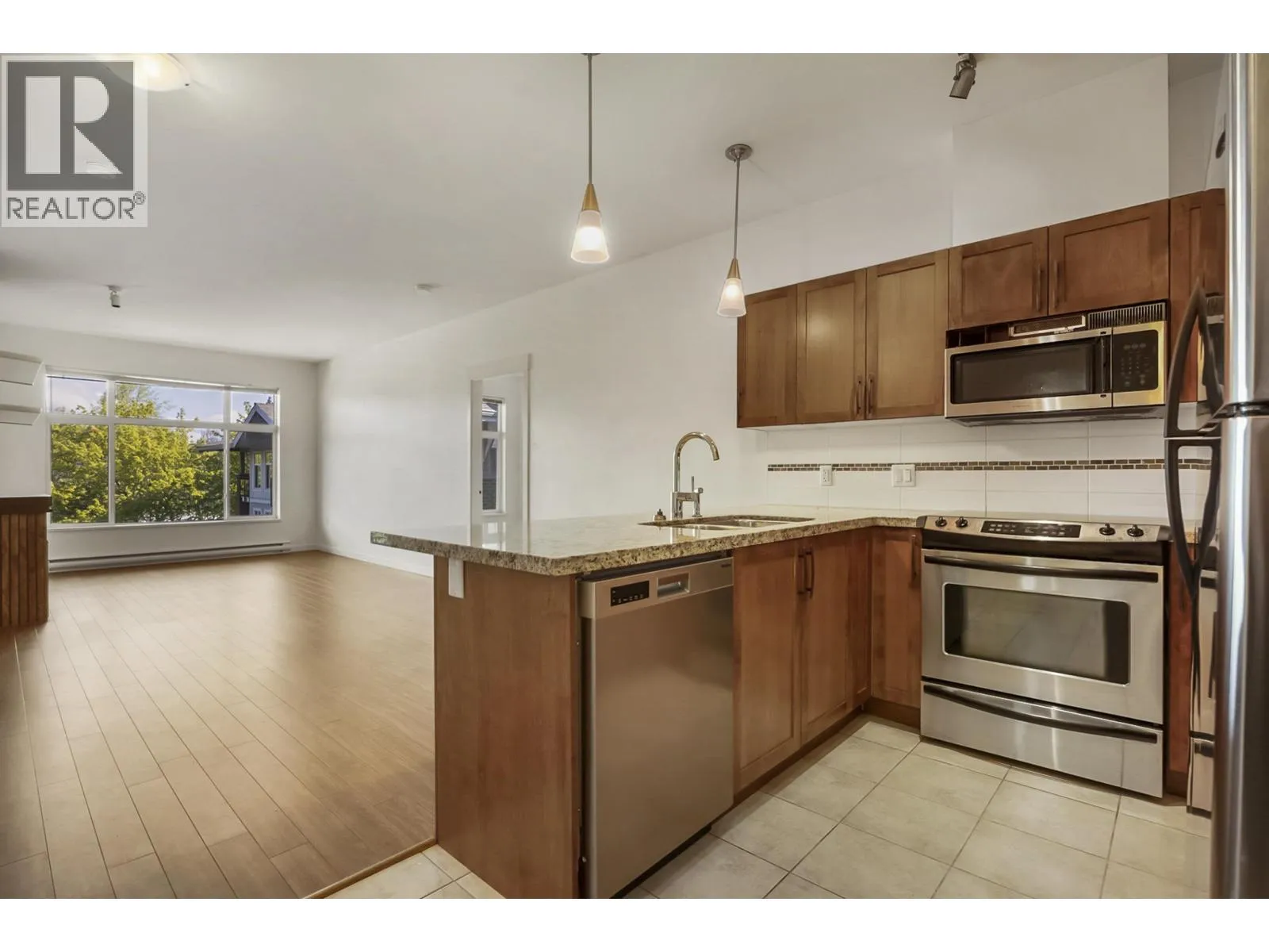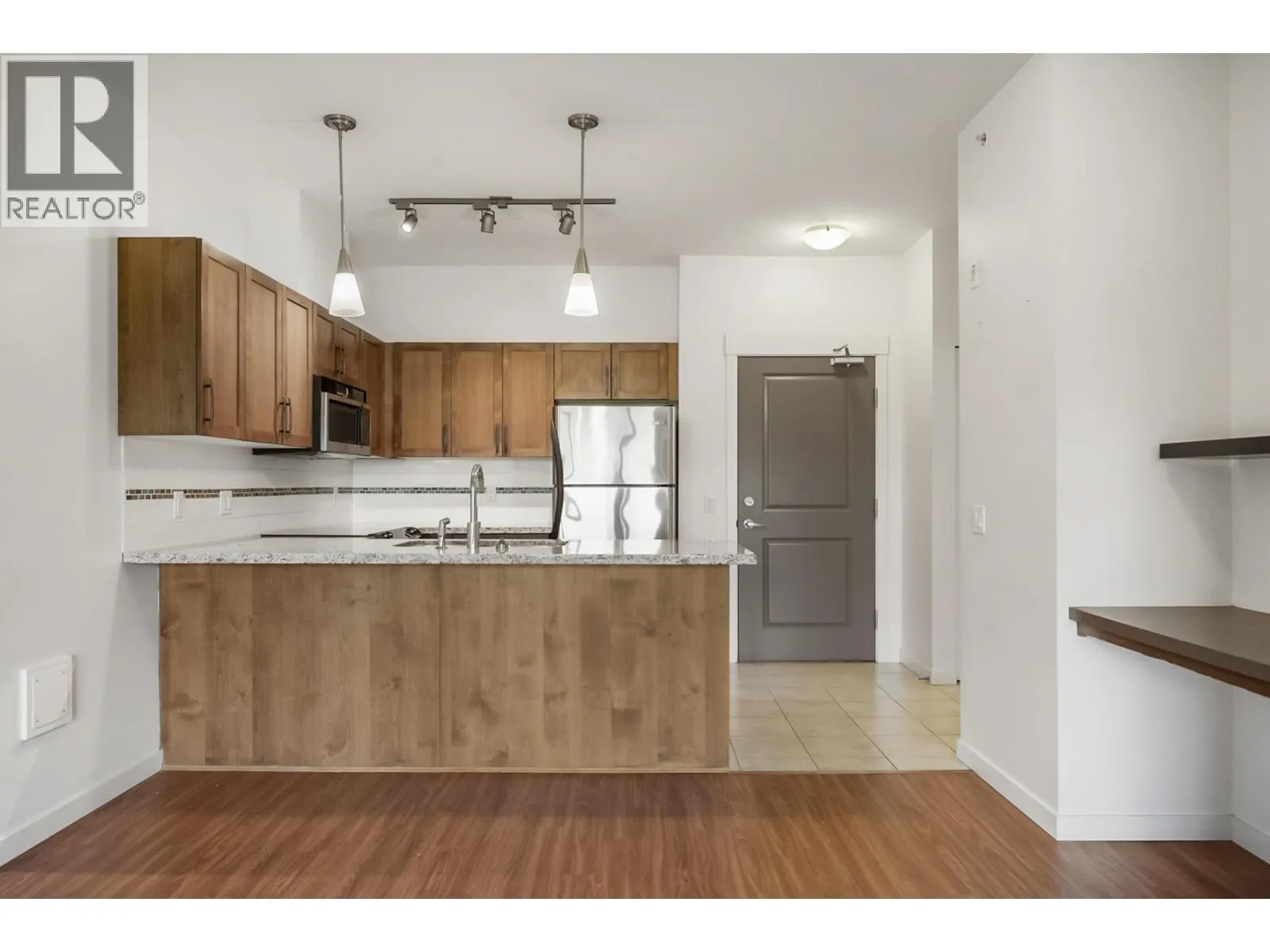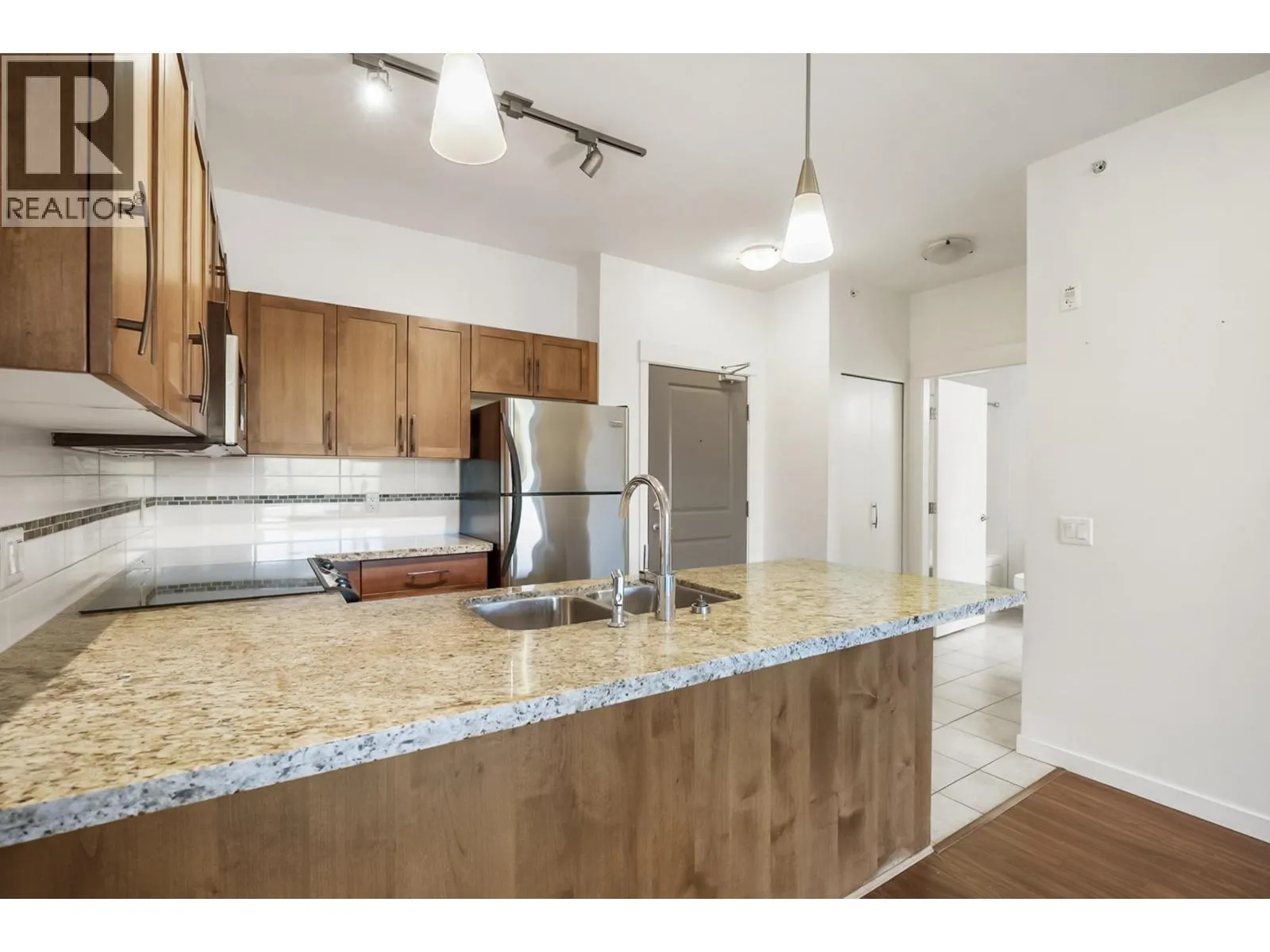 Welcome to the Origin. This spacious 961SF TOP floor conveniently located in the heart of Pitt Meadows. Close proximity to schools, shops library, Rec Center, transit, trails & park. This 2 bedroom 2 full bath home with a Mountain VIEW features and open floor plan which makes it great for entertaining. 2 side-by-side parking, bike room, and a CP storage locker. Open kitchen with stainless steal appliances, granite counters and large peninsula. Bedrooms on either side of the home are prefect for investors/renters. Bonus, the covered deck with access from the primary with a beautiful view of the mountains. Don't forget its a TOP FLOOR. Three pictures virtually staged (id:27476)