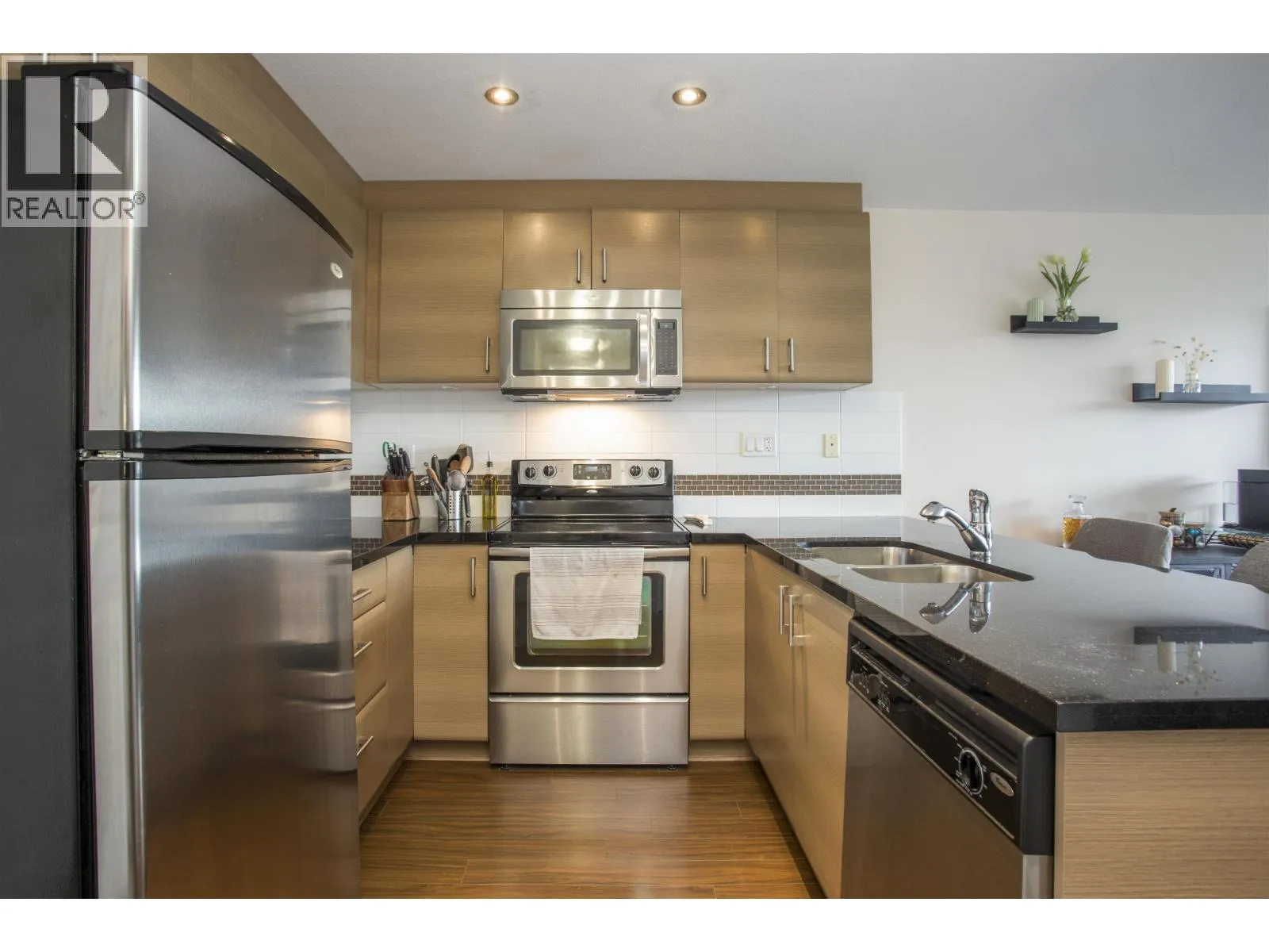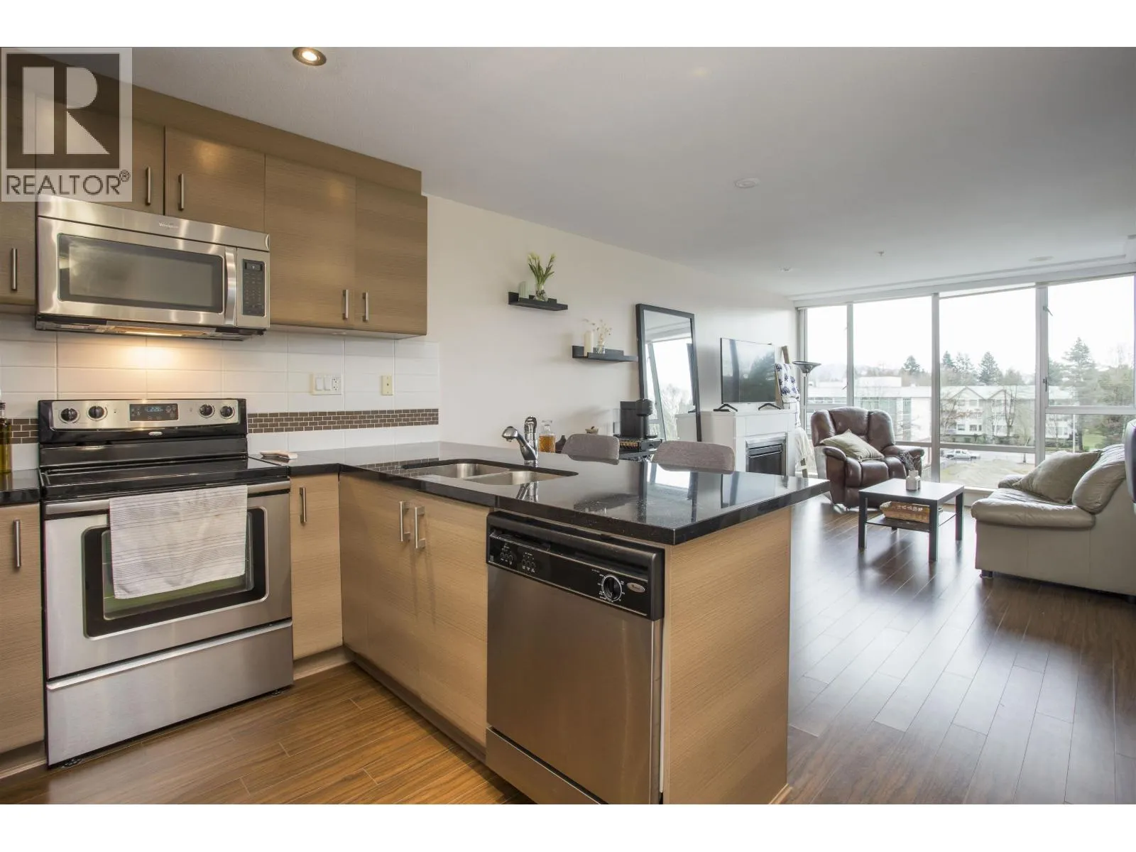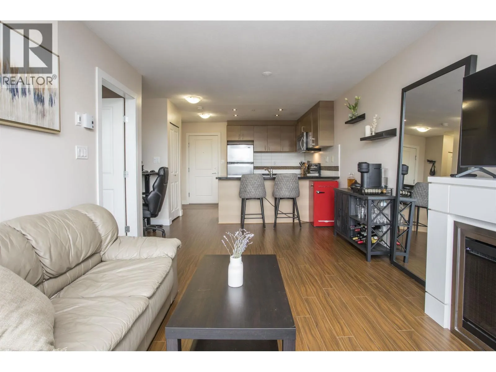 SOLARIS- Pitt Meadows only concrete and steel building! This bright East facing 1 bedroom 1 bathroom home boasts an open and bright floor plan with floor to ceiling windows for tons of natural light. Fresh paint throughout and updated carpets. The kitchen offers a light colour scheme, granite counters and stainless steel appliances. Dining room has an area for a small table and nook for a office or coffee bar. Cozy living room with an electric fireplace and access to your balcony. Steps to the recreation centre, transit stops including the West Coast Express, schools, shopping, library and coffee shops/eateries. Rentals allowed, no pets, 1 parking stall and a storage locker. Pitt Meadows best location for all required amenities! Call today! (id:27476)